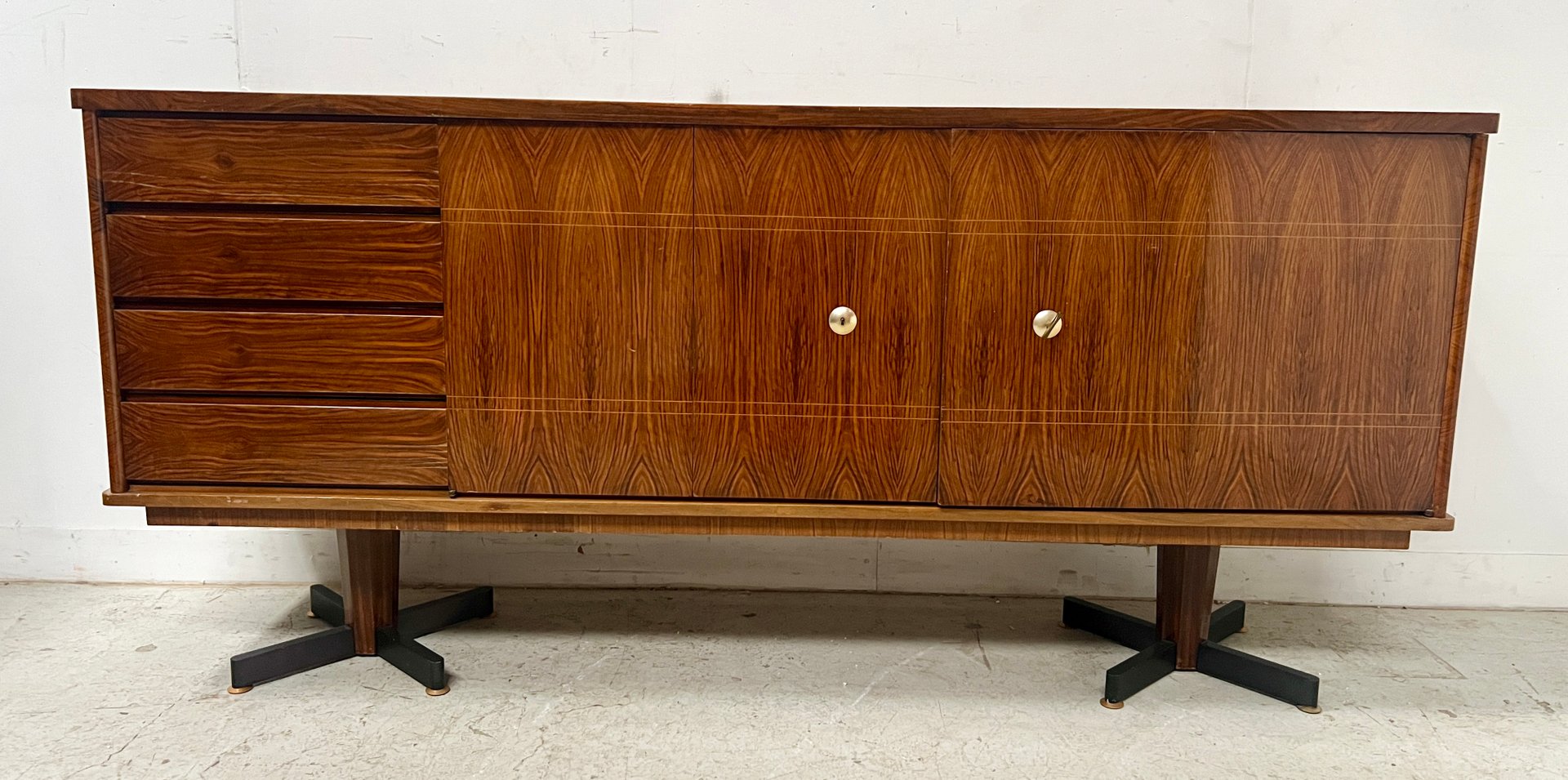 Scandinavian Sideboard in Veneered Wood with Iron Legs