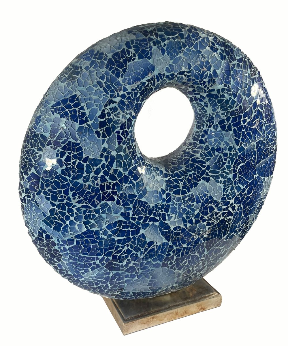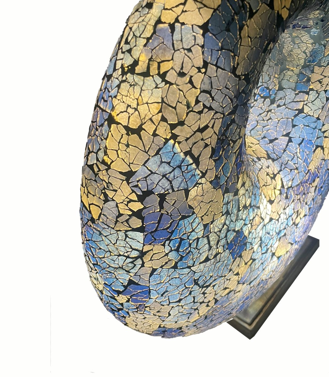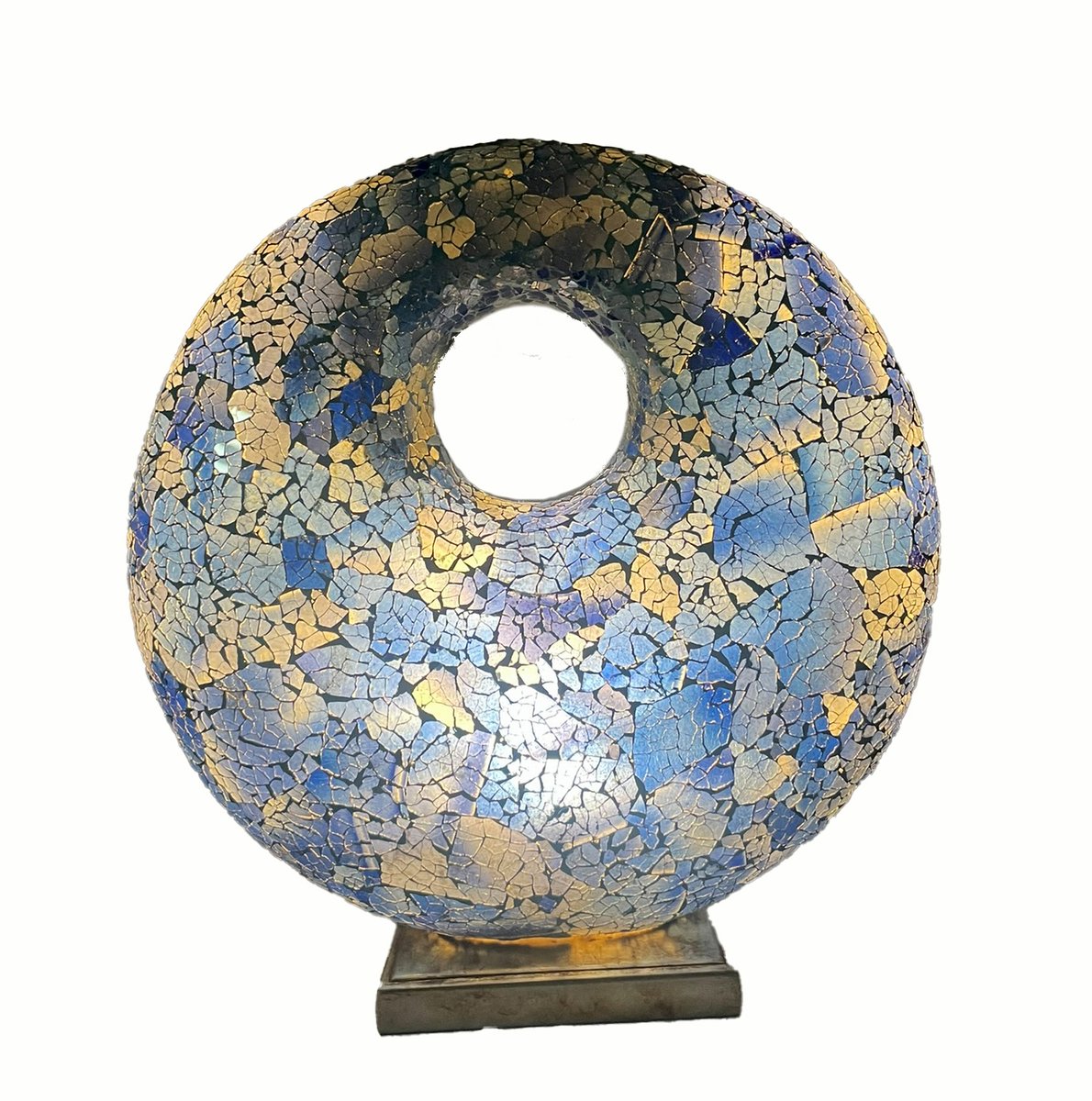 Sculptural Crackled Glass Mosaic Table Lamp with Wooden Base, Italy, 1990s