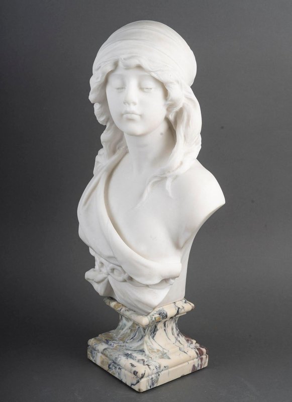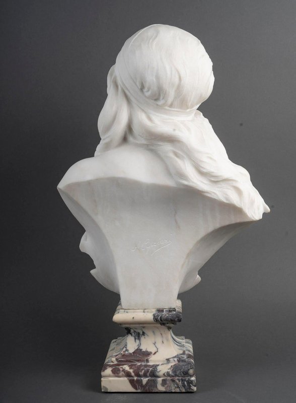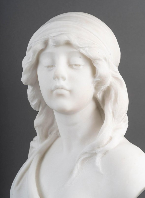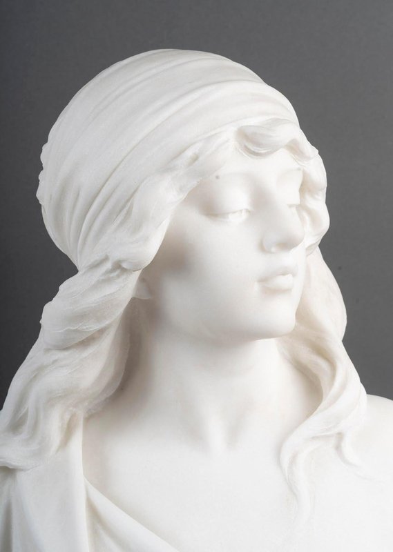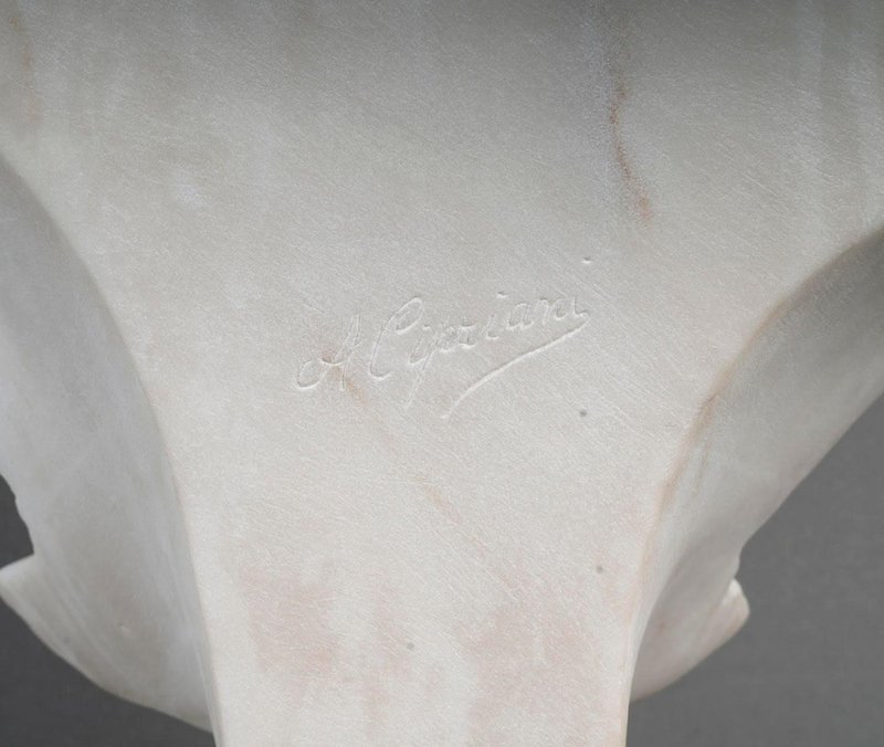 Sculpture Bust of a Woman in White Carrara Marble by Adolfo Cipriani, 1900s