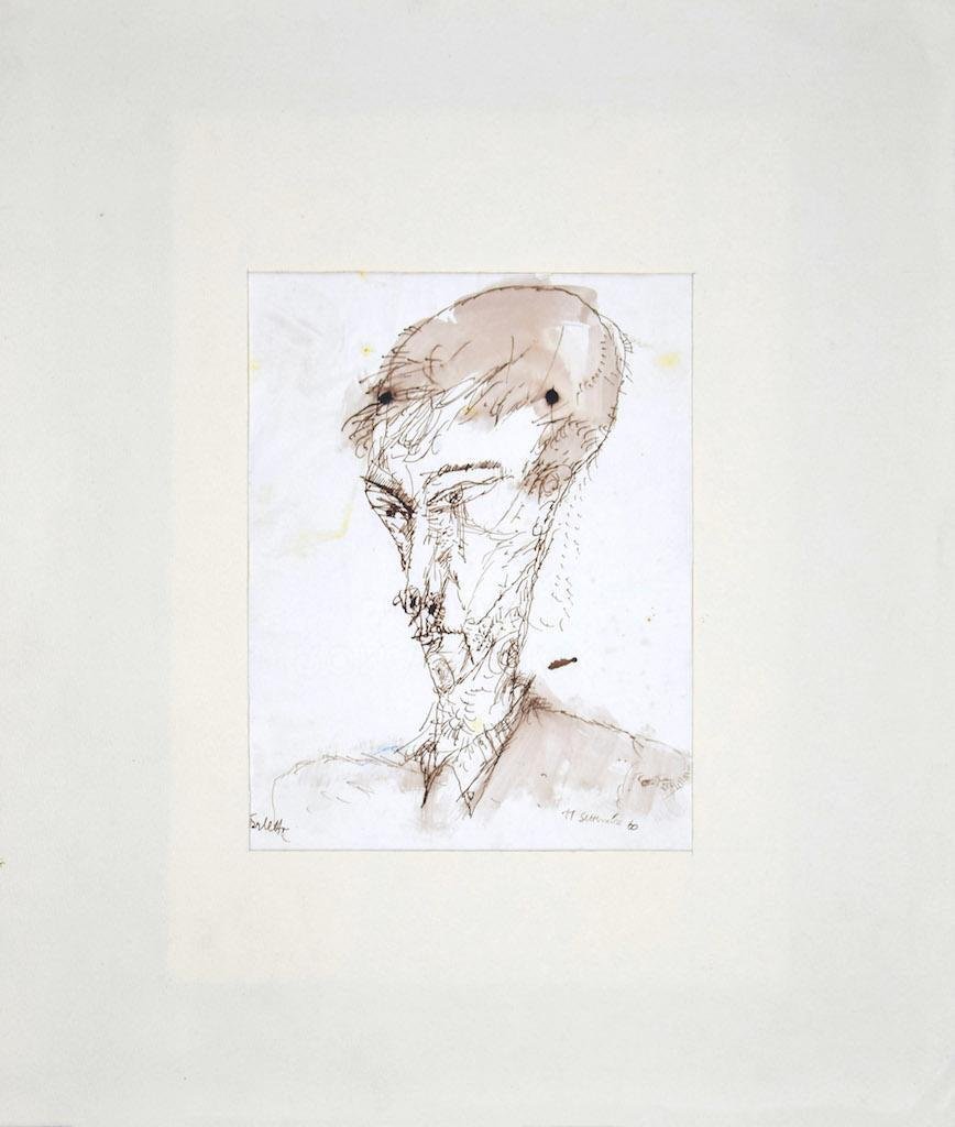 Portrait is and original drawing in watercolor and pen realized by Sergio Barletta in 1960. Hand-signed on the lower right and dated. Included a Passepartout:45 x 38.5 cm In very good conditions. The artwork represents a portrait of man, created through expressionistic style, by confident, short and quick brownish strokes, the face''s details have created a strong feeling of firmness and arrogance, A precise moment of aesthetic sympathy which masterly the artist has created. Sergio Barletta (1934) is and Italian cartoonist and illustrator, who has also published some humorous and political satire books. From the age of 22 is active in Rome, where he worked as and illustrator and art director in some monthly magazines like “Costume”, Diners Club house organ, BP Review, IBM, and others. In 1965 started the joint-working with Marino Gallery in Rome, and in 1966 in Milan with Humour Graphics group, at Levi Gallery and others in the following years. In these years graphic work and illustration are mixed with painting and photography, also with satirical drawings for Rinascita, weekly of the Italian communist party; Azione Sociale, weekly of ACLI Catholic Workers Association; movie posters, advertising for Gucci, some writings for Popular Photography Italiana, lay-outs, writings and illustrations for Avinews, bimonthly for tour operators and so on. During the eighties he starts a long co-operation with satirical weekly “Il Sale”, complemented by a book with Ottaviano edizioni in Milan and others publications in Turin and Rome, all of satirical drawings. In this period he collaborates with Linus, the most important Italian comics monthly, and Harakiri, a humour weekly published in France. Personal and group exhibitions of paintings, collages, drawings, photographs Galleria Marino – Roma, 1965 Galleria Levi – Milano, 1966 Galleria Petronio – Bologna, 1967 Galleria d''Arte moderna Villa Reale – Milano, 1967 Palazzo Costanzi – Trieste, 1967 Galleria del Naviglio – Milano, 1967 Galleria Marino – Roma, 1967 Galleria Libreria Renzo Cortina – Milano, 1968 Galleria Libreria Renzo Cortina – Milano, 1969 Society Art’s Club – Messina, 1970 Galleria Marino – Roma, 1970 Galleria Libreria Renzo Cortina – Milano, 1972 Galleria Marino – Roma, 1972 Galleria Il Diaframma – Milano, 1973 Galleria Libreria Renzo Cortina – Milano, 1974 Galleria Il Ventaglio – Firenze, 1975 Galleria Marino – Roma, 1975 Palazzo Gonfalonieri – Milano, 1976 Bedford House Gallery – London, 1977 Galleria Apicella – Bonn, 1979 Civico Museo Archeologico – Milano, 1980 Palazzo Barberini – Roma, 1981 Palazzo delle Stelline – Milano, 1981 Castello Sforzesco Biblioteca Trivulziana – Milano, 1982 Civico Museo Archeologico – Milano, 1983 Biblioteca Sormani – Milano, 1983 Club Migros – Milano, 1985 Centro Domus – Milano, 1985 Galleria Vittorio Emanuele – Milano, 1988 Galleria d''Arte ex libris – Roma, 1989 Civico Museo Archeologico – Milano, 1989 Palazzo delle Stelline – Milano, 1990 Palazzo d''Arte – triennale Milano, 1991 Galleria Monica Guidi’Arte – Roma, 1991 Monica Gallery, West Broadway – New York, 1991 Civico Museo Archeologico – Milano, 1992 Palazzo Mediceo – Serravezza, 1994 Lalit Kala Akademi – New Delhi, 2005 Birla Academy of Art and Culture – Calcutta, 2005 Galleria Marino – Roma, 2011