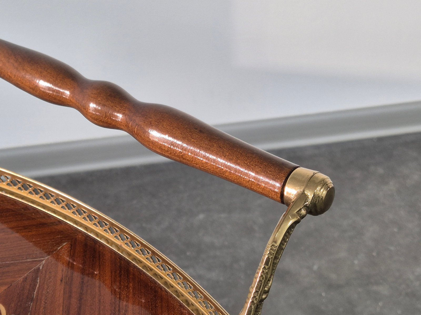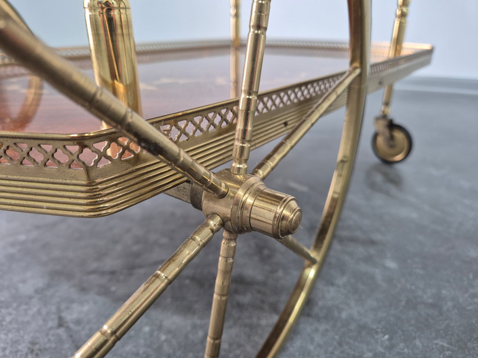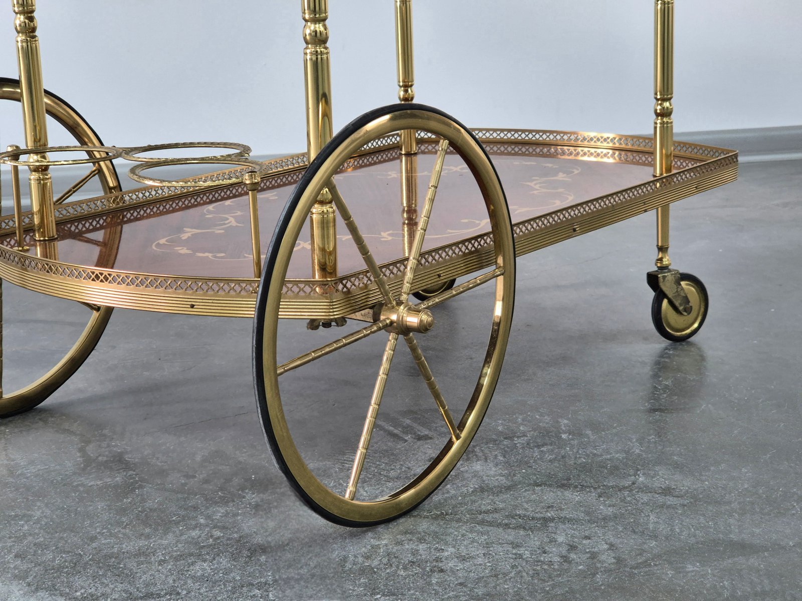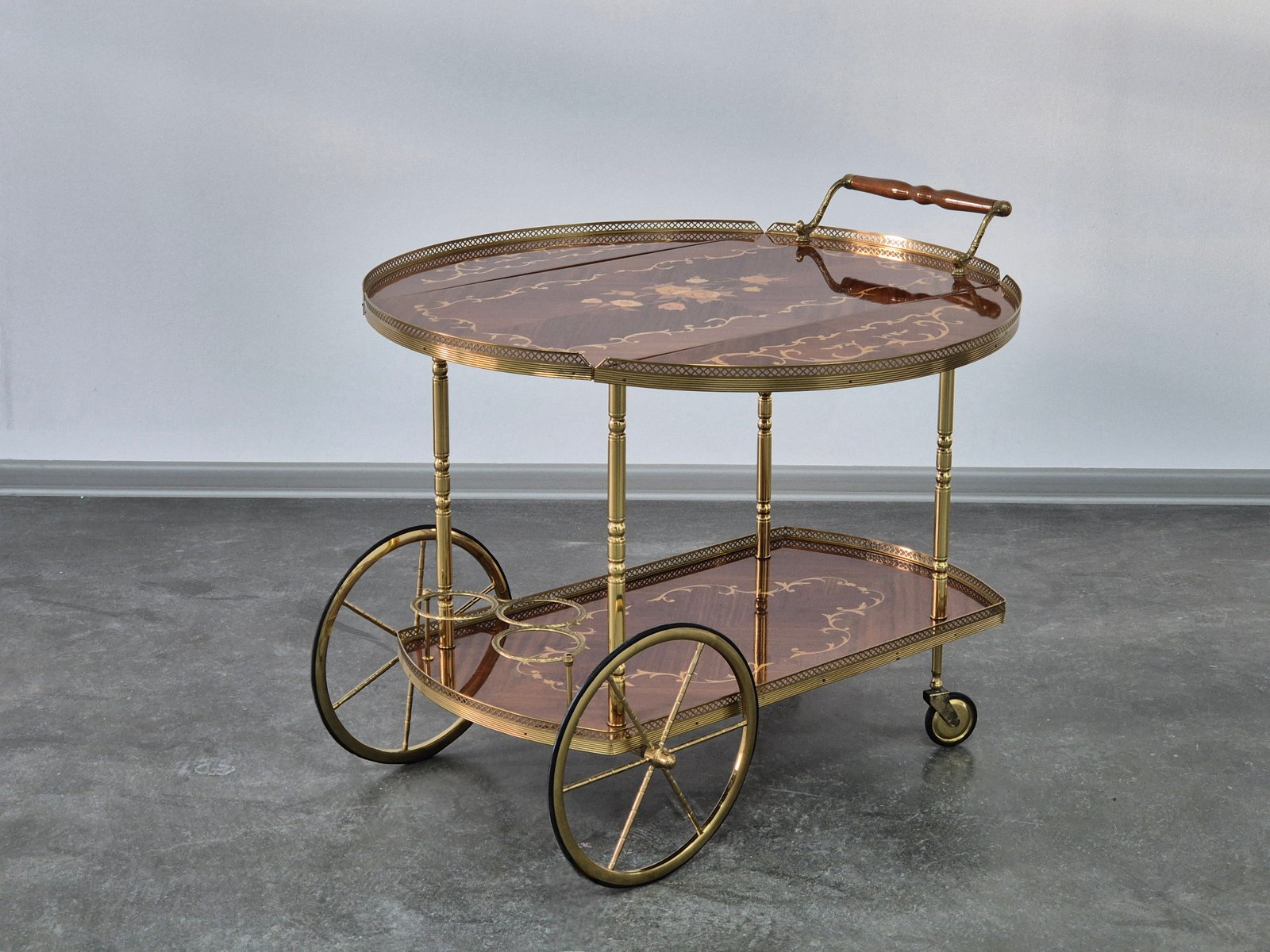 Serving Drink Bar Cart Trolley with Side Flaps in Marquetry Inlays, 1970s
