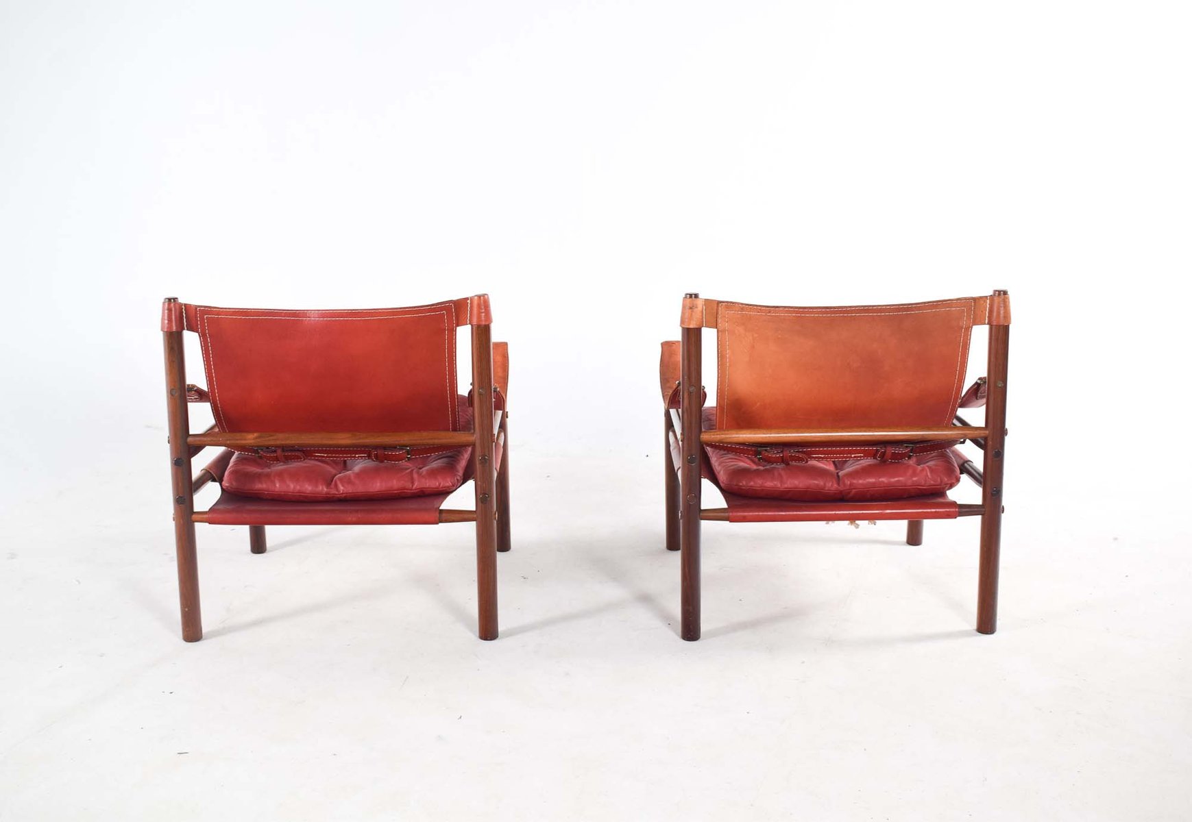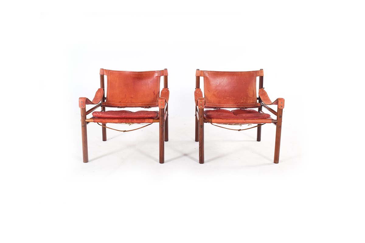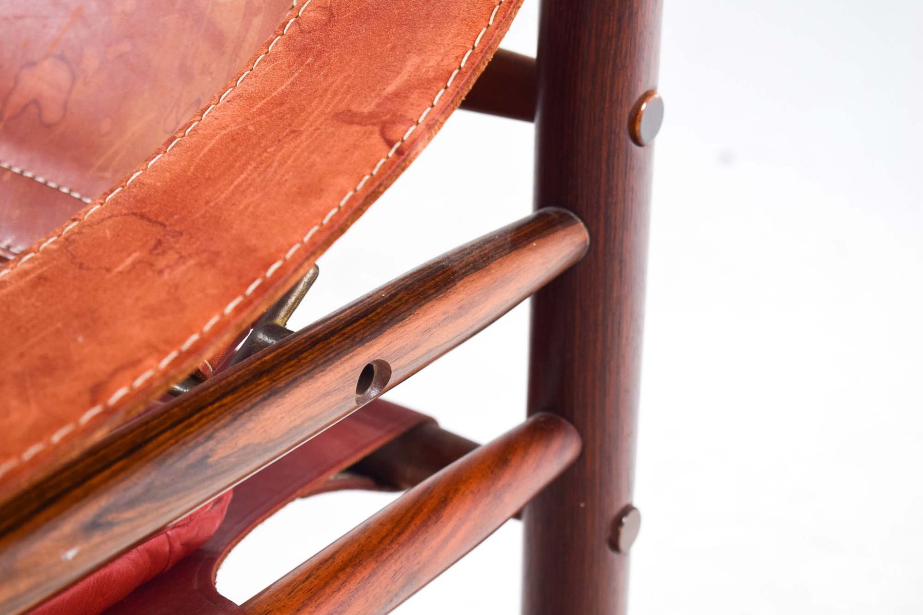 Norell is often praised for pioneering “conceptual” furniture, because he employed traditional materials—leather, turned wood, bentwood, and metal, for example—in unexpected forms, often with lyrical results. His designs have an affinity with those of Danish designer Kaare Klint (1888-1954), who, a generation before, brought time-honored, vernacular forms into modernist expression. In fact, Klint’s iconic Safari Chair (1933) inspired Norell to create the Sirocco Safari Chair (1964), which is lightweight, collapsible, and held together by leather support straps instead of glue or screws. Norell’s wood-framed Inka Armchair, Indra Sofa, and Ilona Sofa (design dates unverified) are likewise held together by leather.