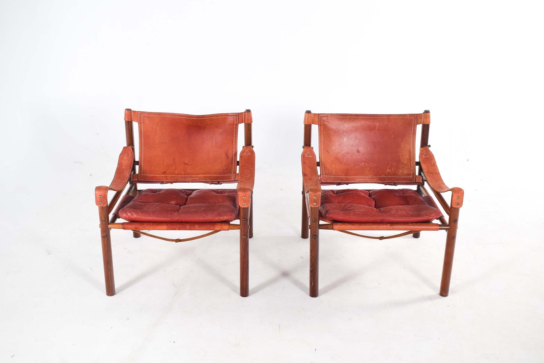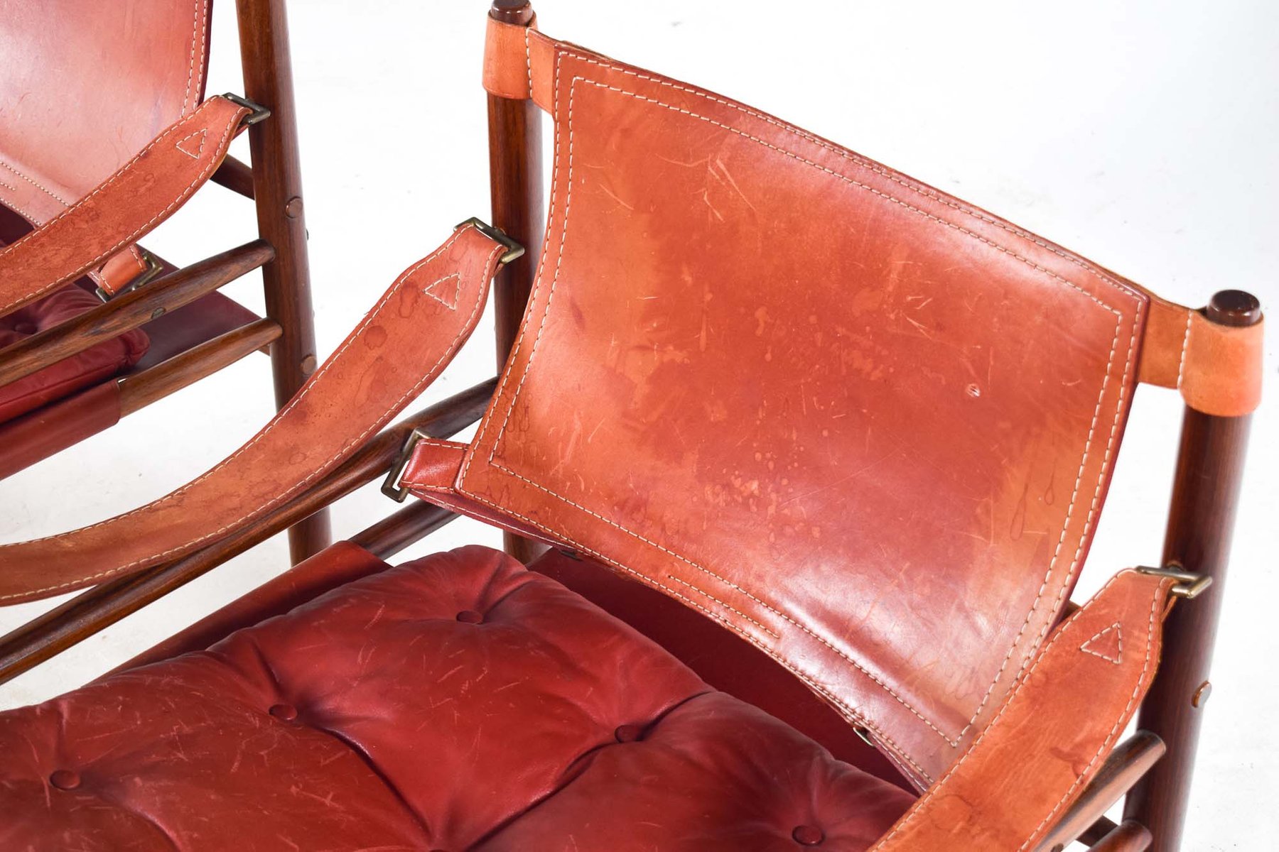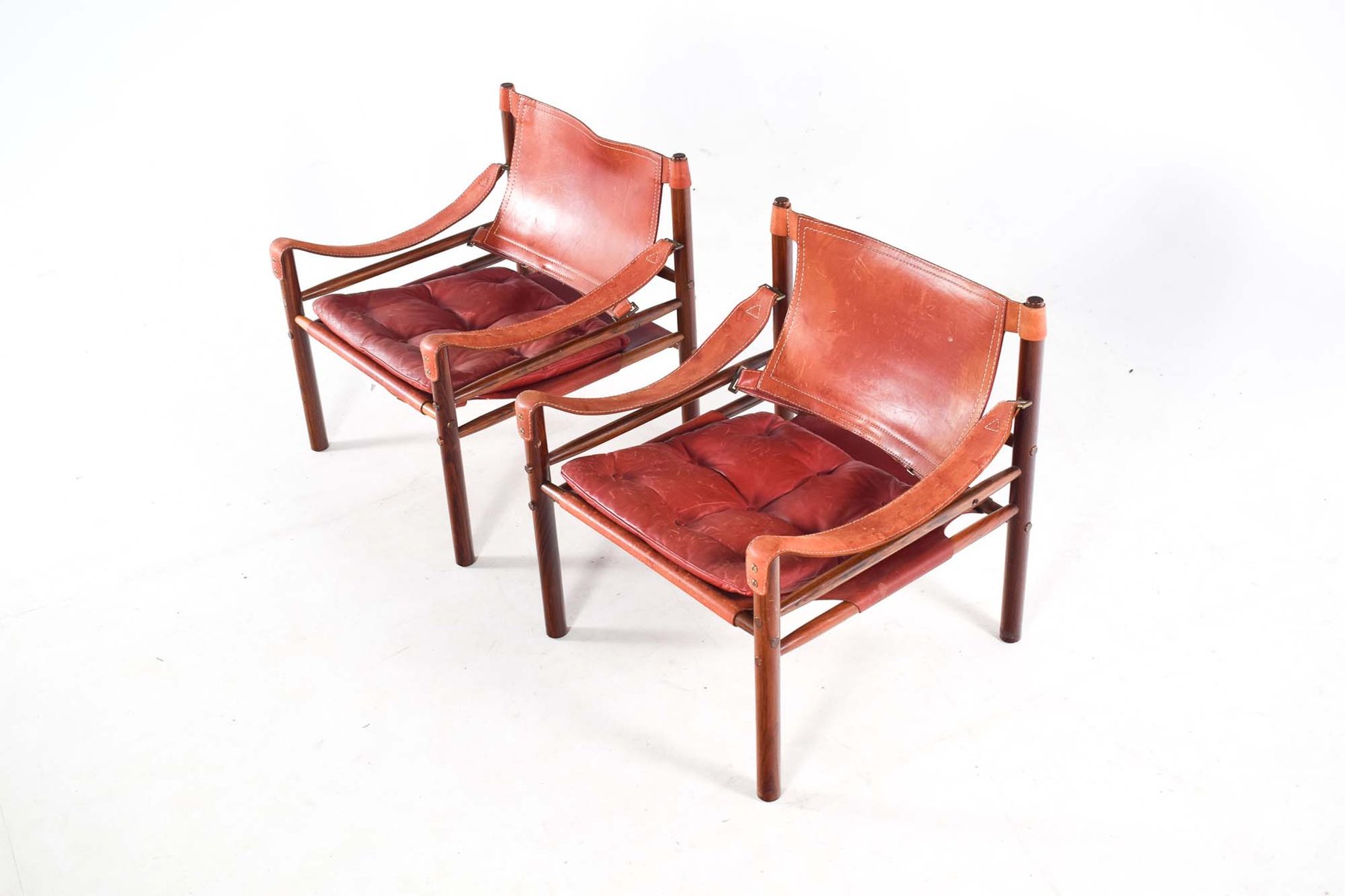 Norell is often praised for pioneering “conceptual” furniture, because he employed traditional materials—leather, turned wood, bentwood, and metal, for example—in unexpected forms, often with lyrical results. His designs have an affinity with those of Danish designer Kaare Klint (1888-1954), who, a generation before, brought time-honored, vernacular forms into modernist expression. In fact, Klint’s iconic Safari Chair (1933) inspired Norell to create the Sirocco Safari Chair (1964), which is lightweight, collapsible, and held together by leather support straps instead of glue or screws. Norell’s wood-framed Inka Armchair, Indra Sofa, and Ilona Sofa (design dates unverified) are likewise held together by leather.
