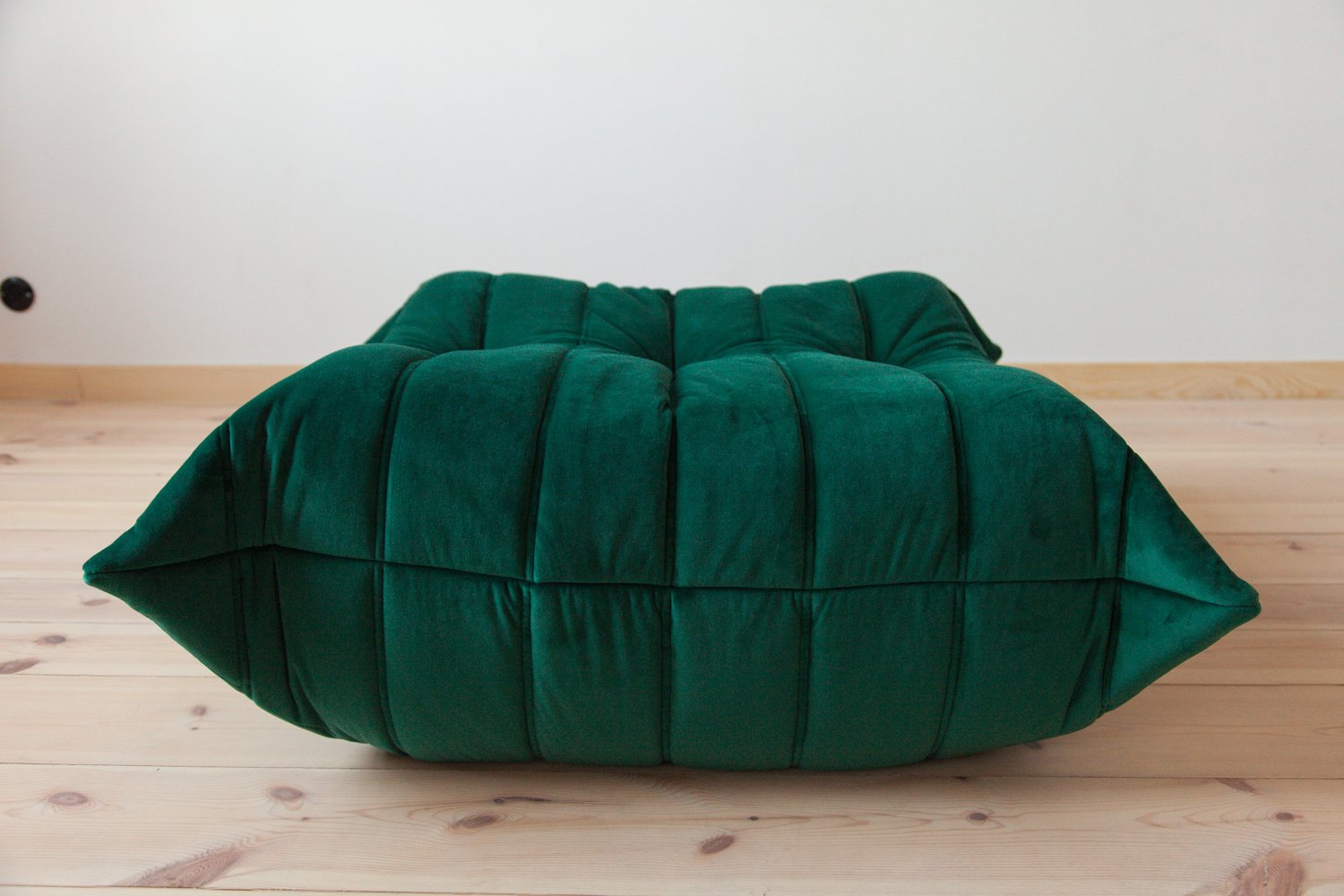 Set of Bottle Green Velvet Togo Pouf and 2-Seat Sofa by Michel Ducaroy for Ligne Roset
