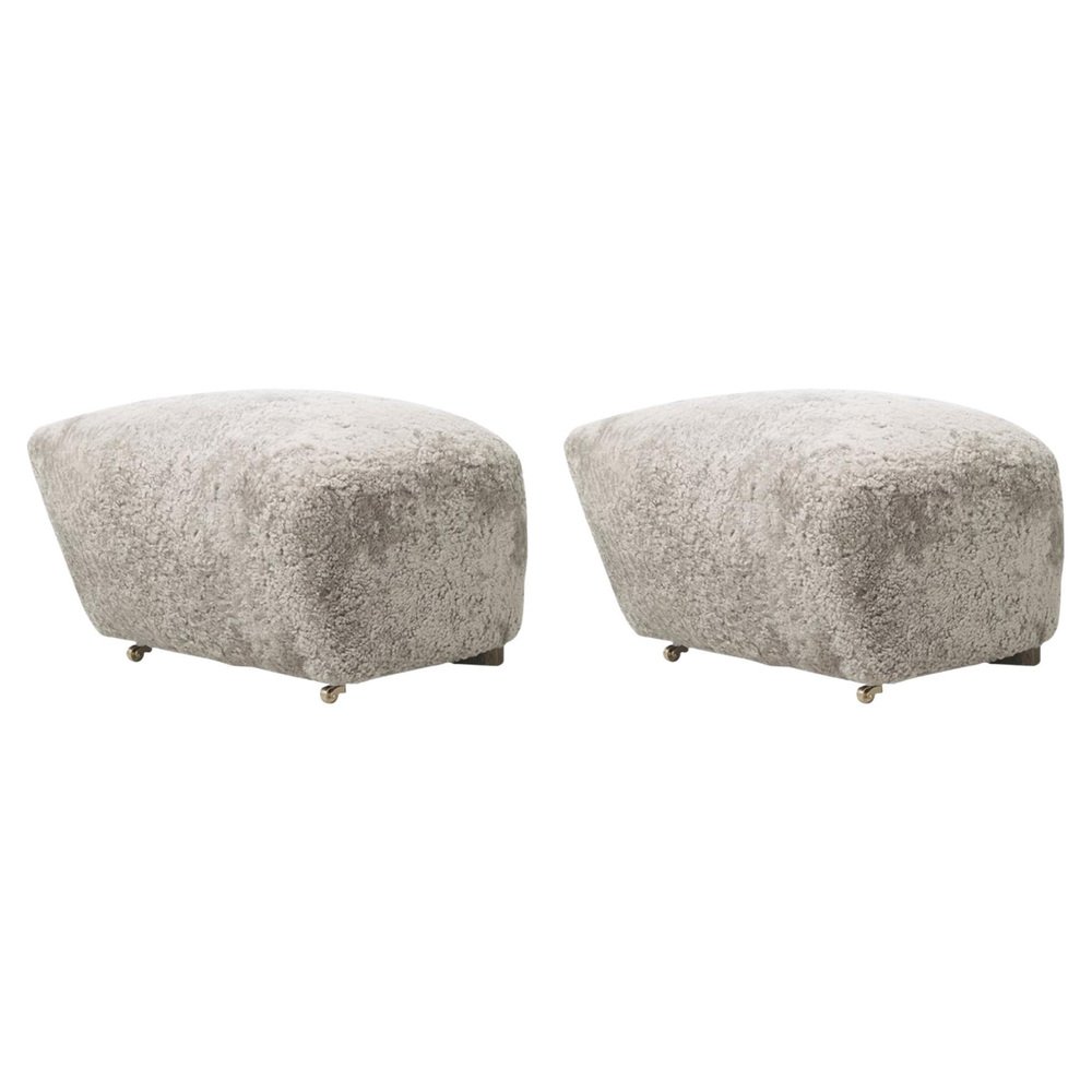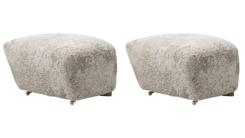 Set of Green Tea Smoked Oak Sheepskin the Tired Man Footstools by Lassen