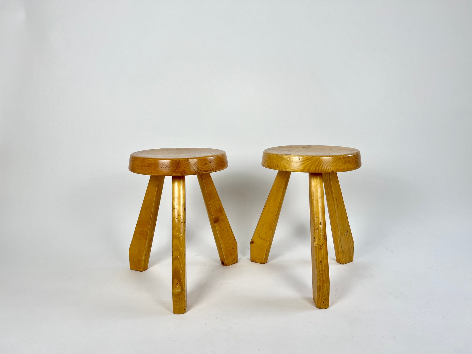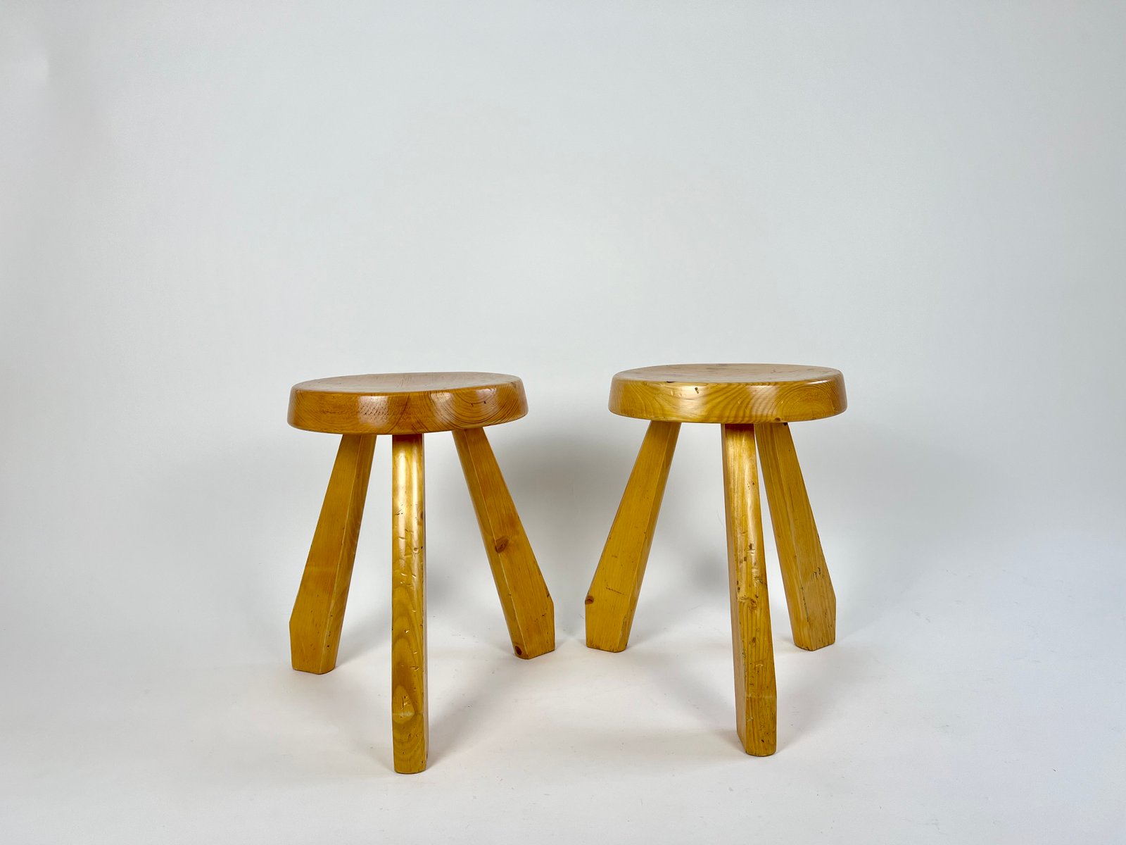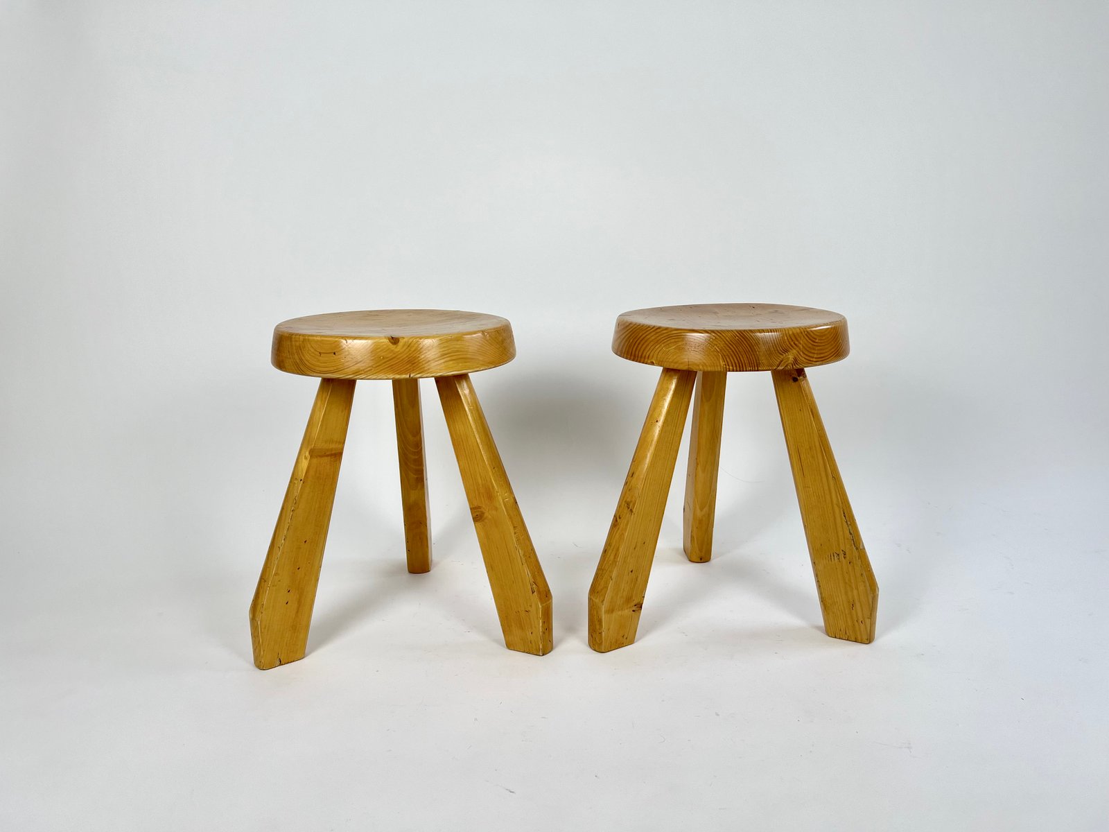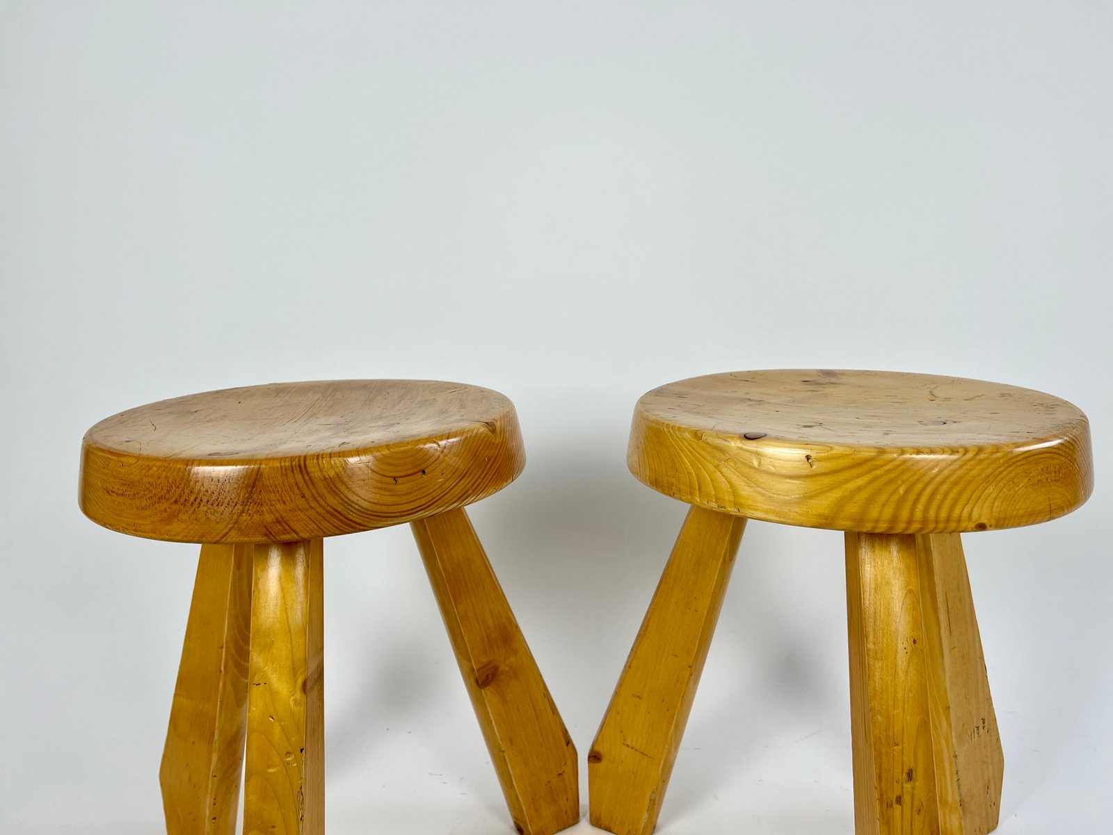 Set of Pine Sandoz Stools attributed to Charlotte Perriand for Les Arcs, France, 1960s