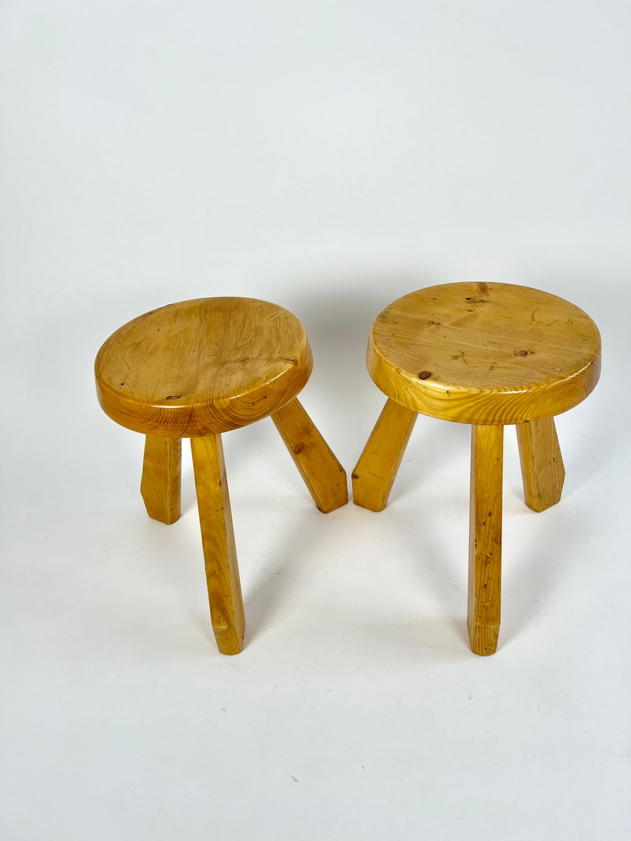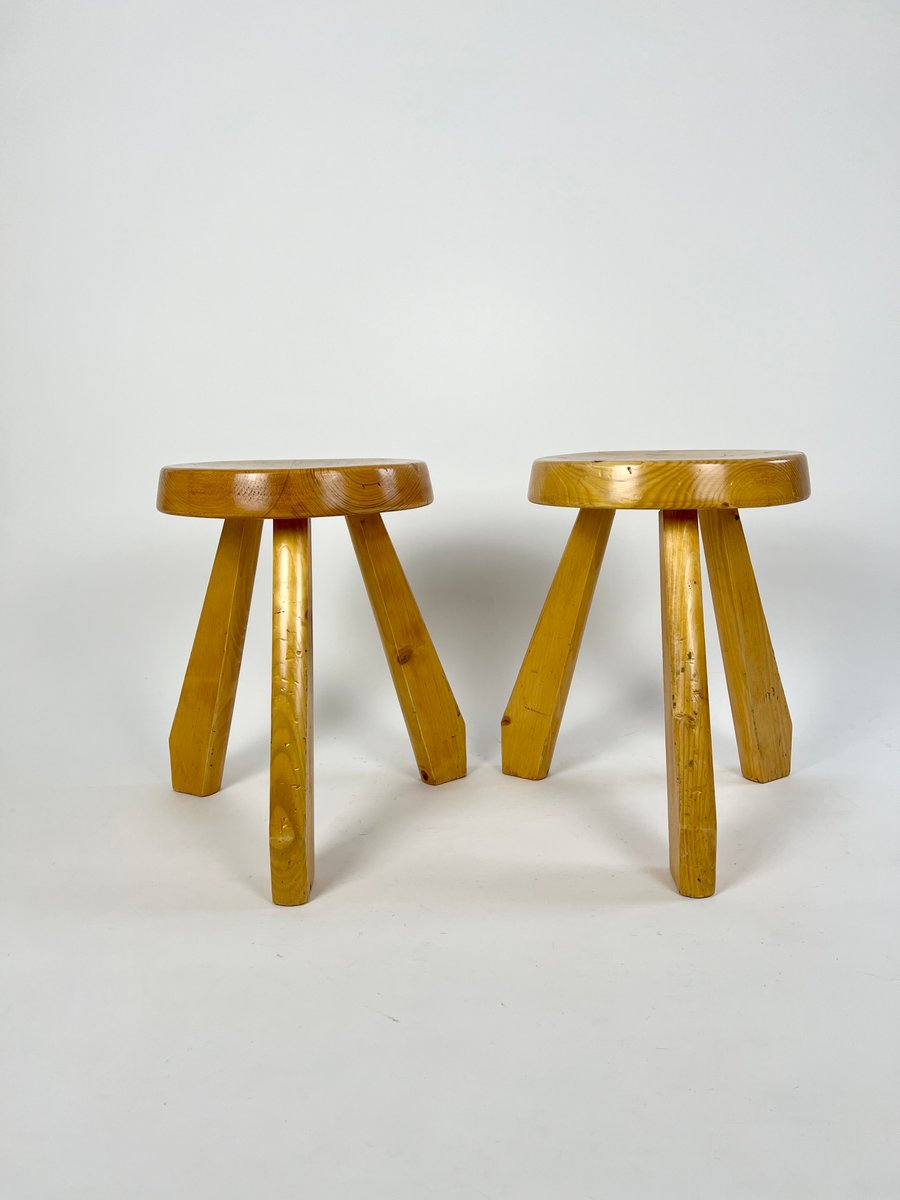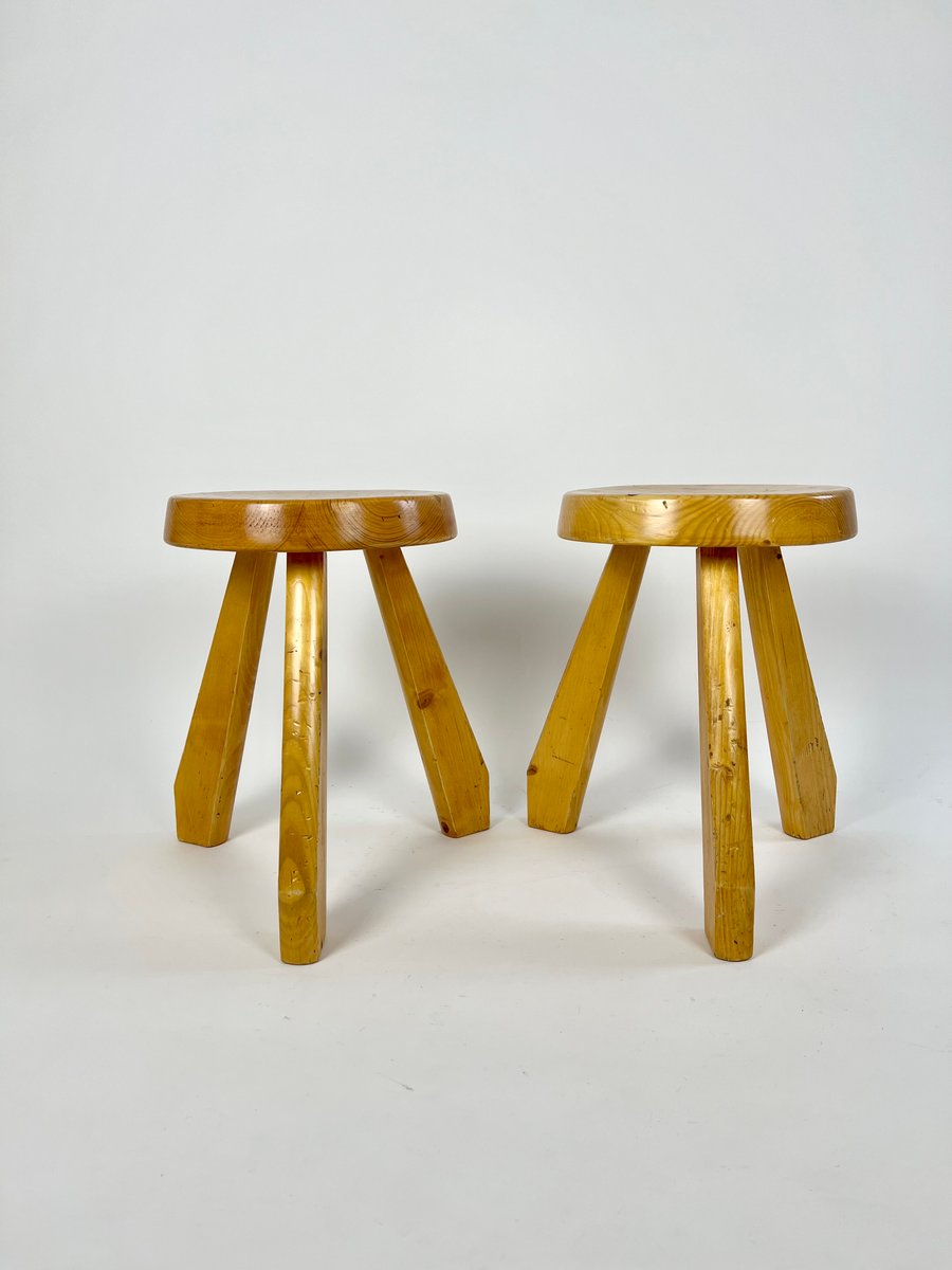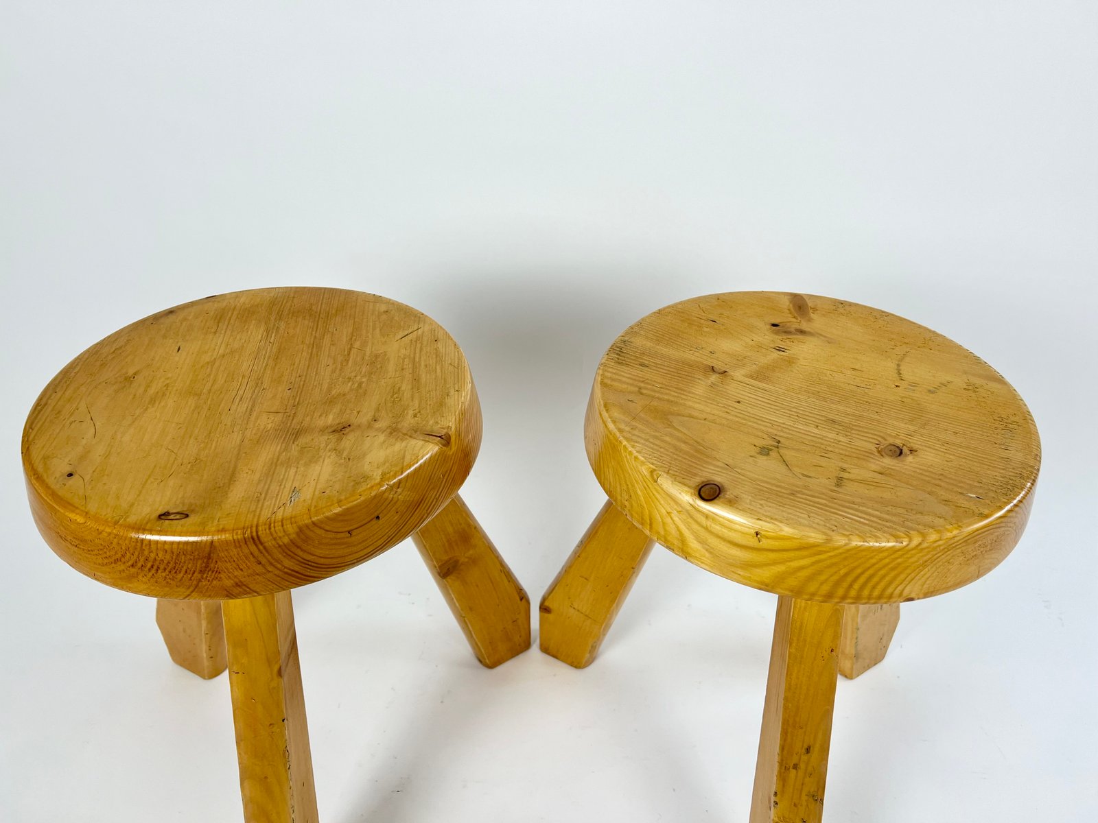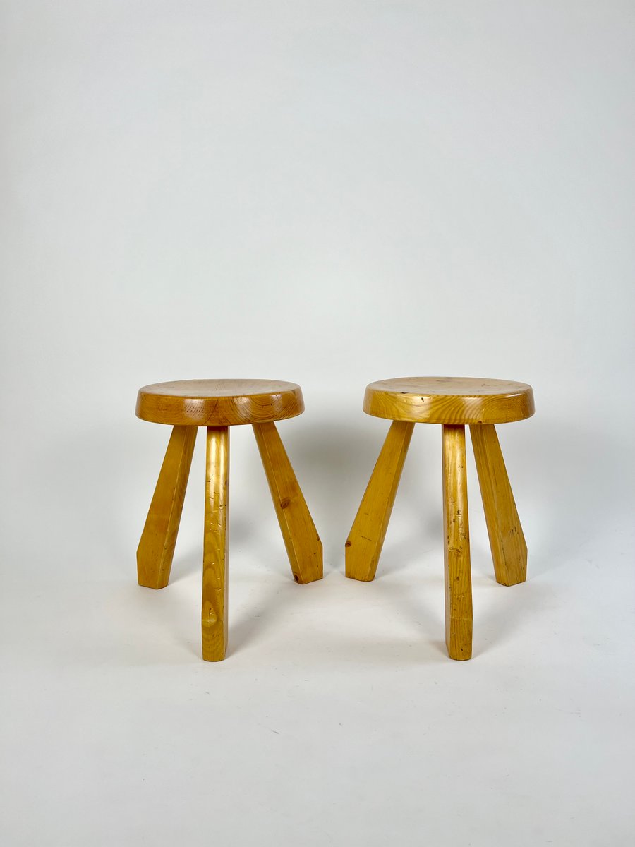 Set of Pine Sandoz Stools attributed to Charlotte Perriand for Les Arcs, France, 1960s