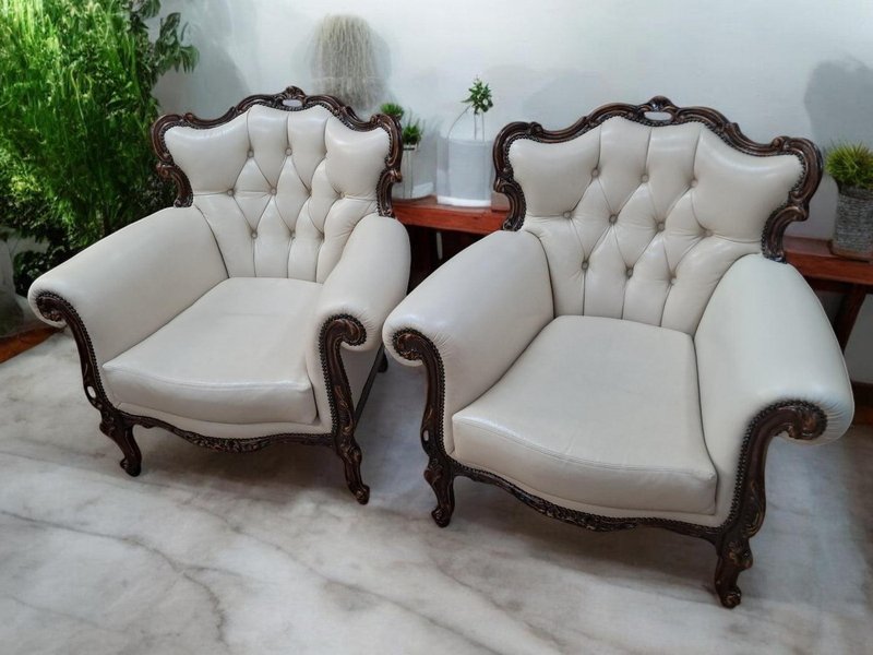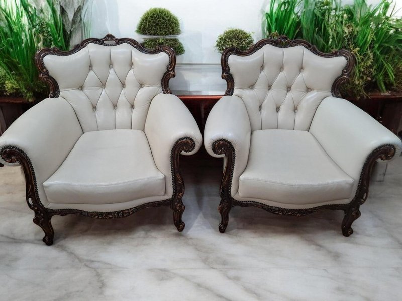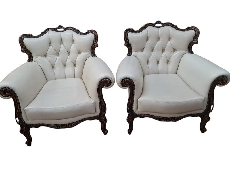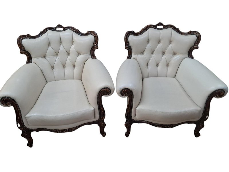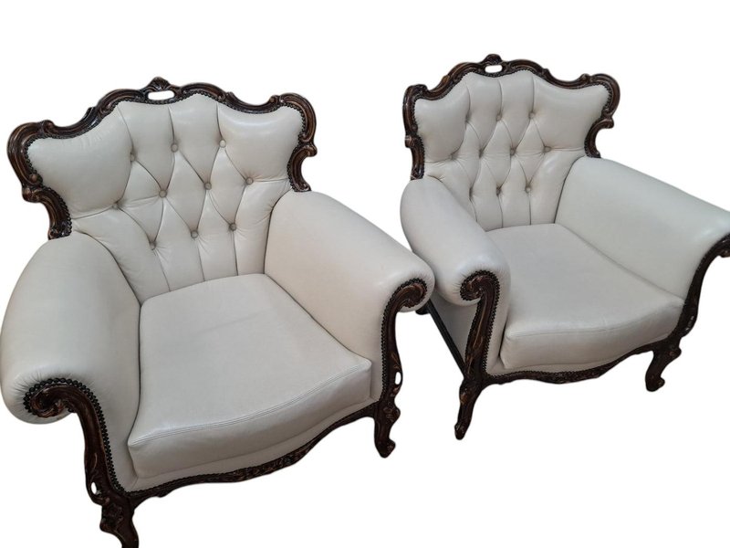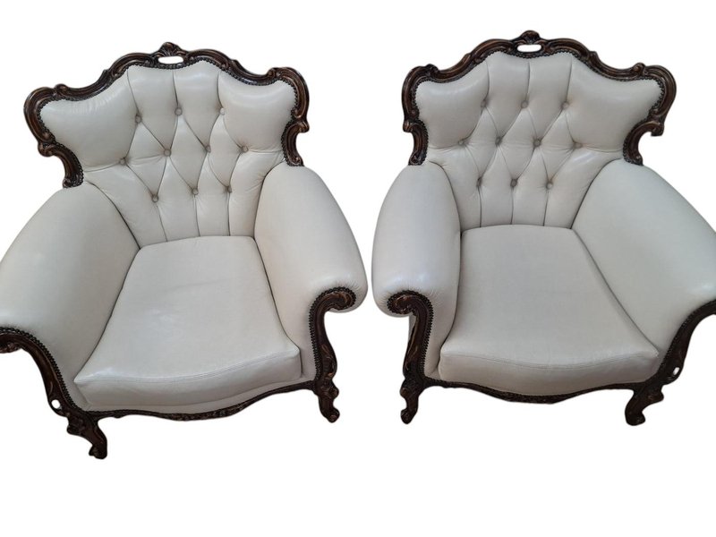 Set of Set of Louis XV Style Chesterfield Chairs in Buttoned Leather, 1980s