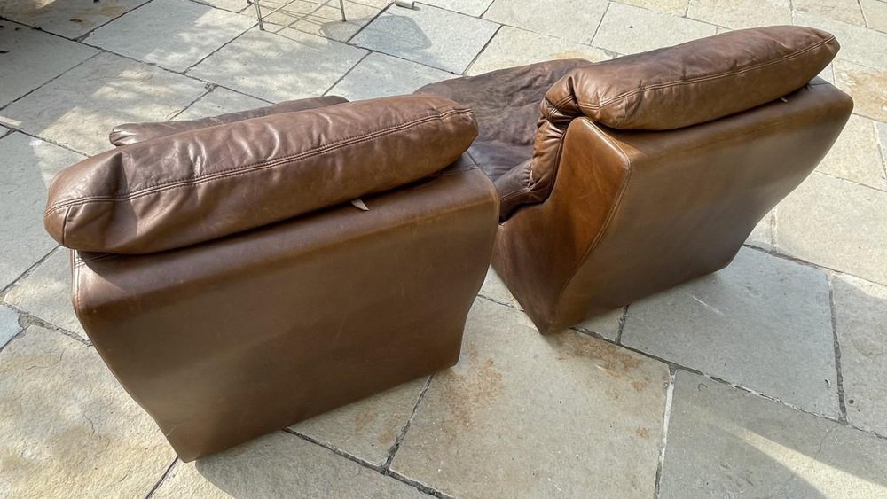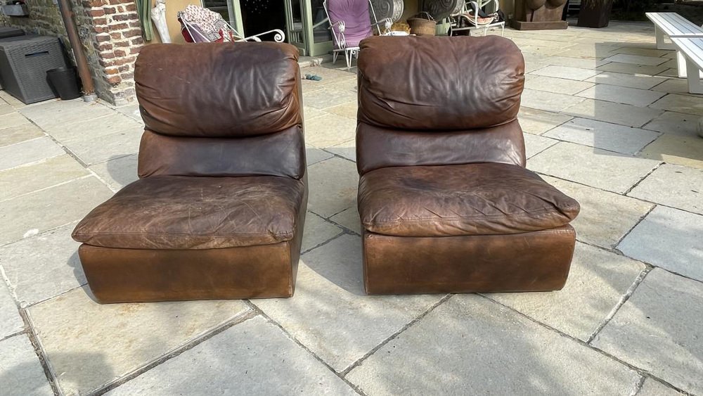 Set of Vintage Leather Armchairs from de Sede, 1970s
