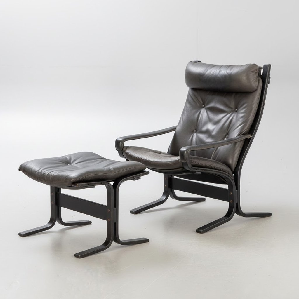 Set of Vintage Lounge Chair with Ottoman by Ingmar Relling for Westnofa, 1960s