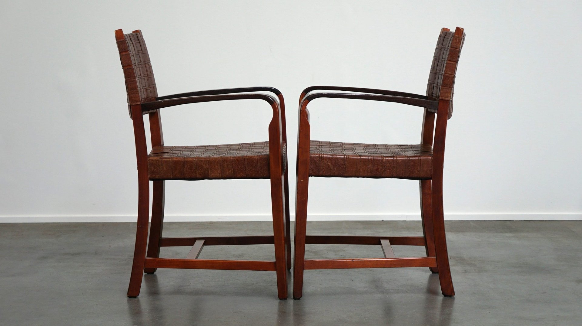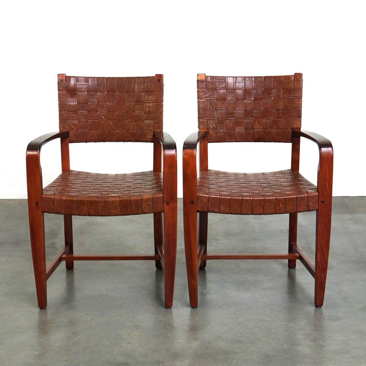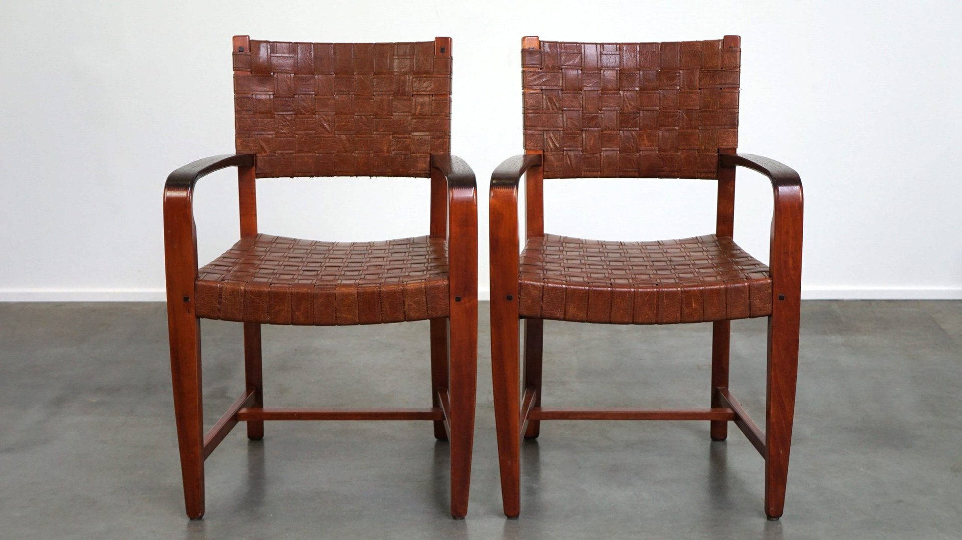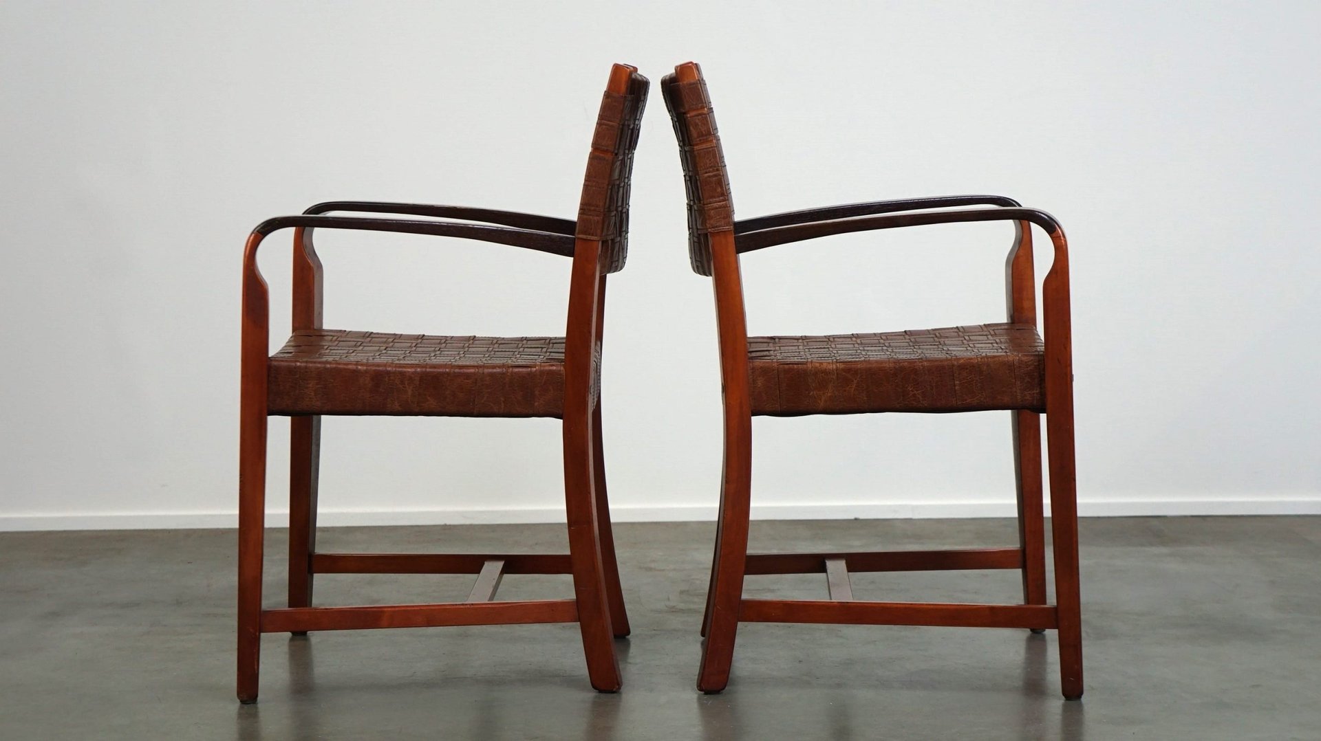 Shaker Chairs with Woven Leather Seats and Backrests from Schuitema, Set of 2