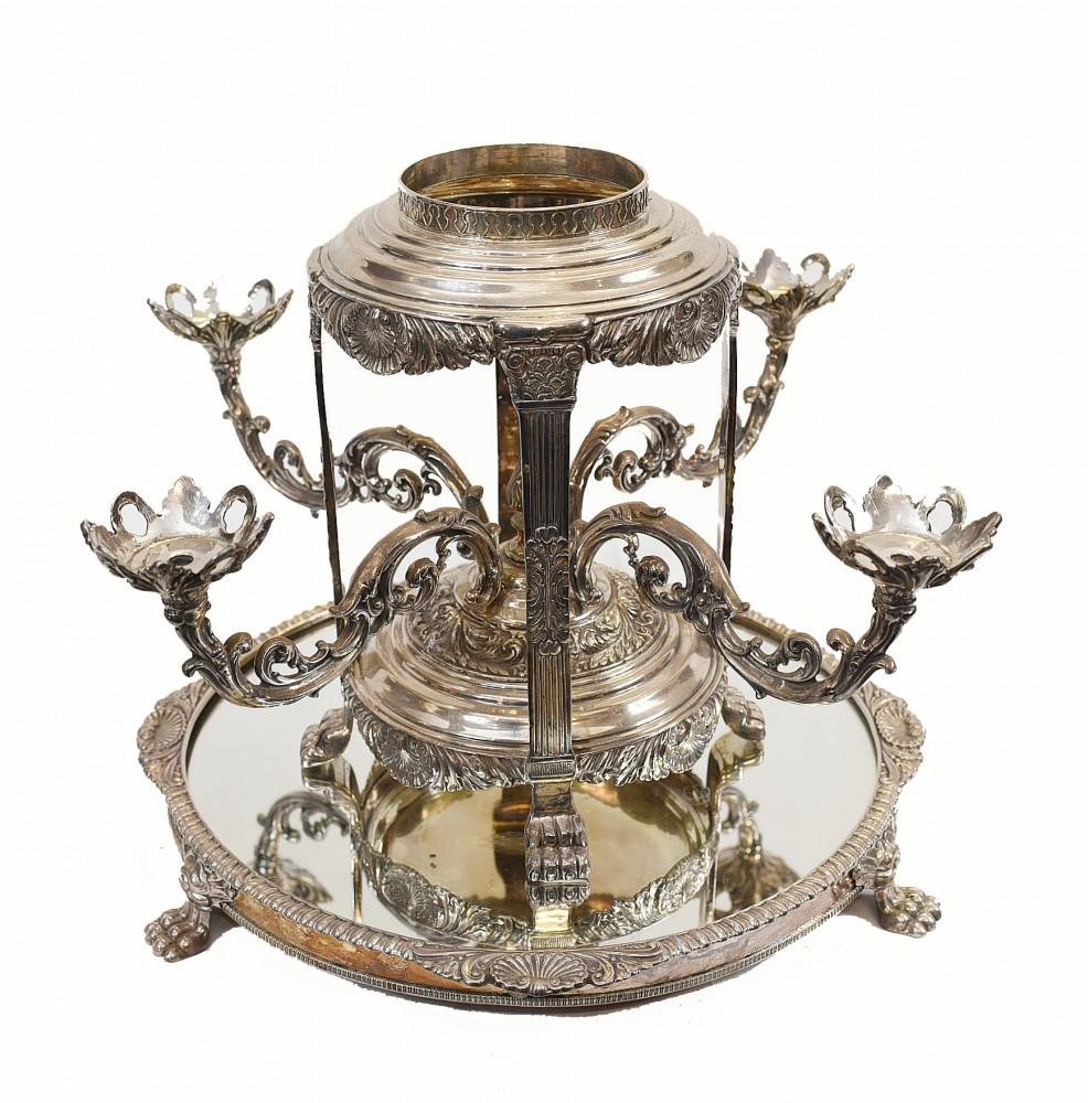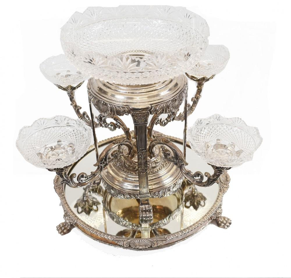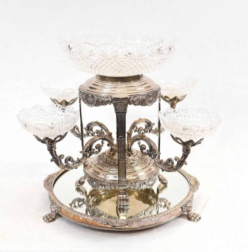 Sheffield Epergne Cut Glass Silver Plate Centrepiece