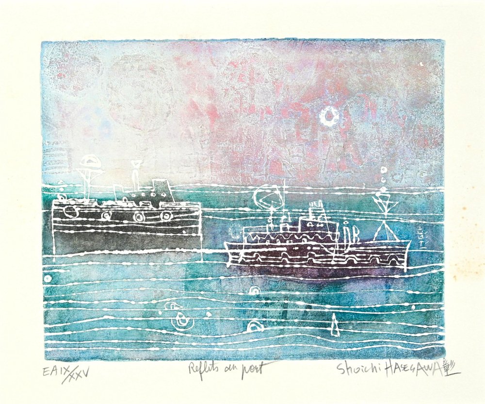 Shoici Hasegawa, Reflets au Port, Etching, 1970s