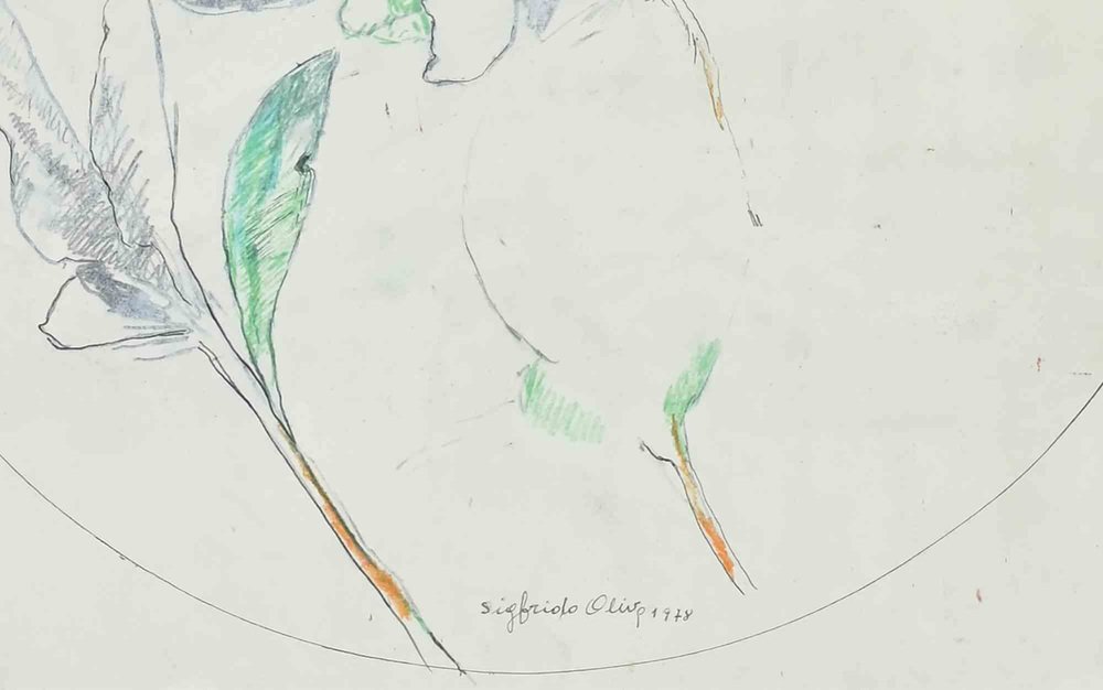Sigfrido Oliva, Still Life, Pencil and Watercolor, 1978, Framed