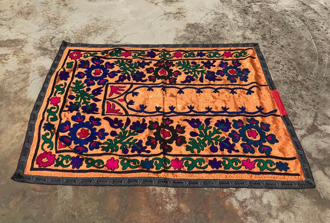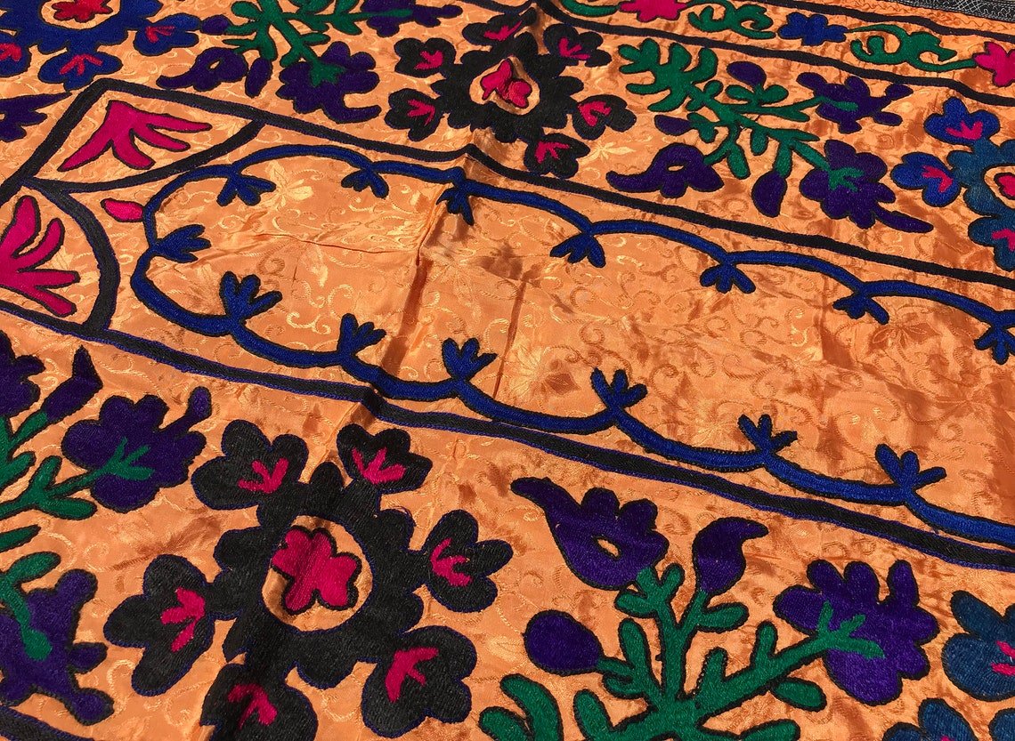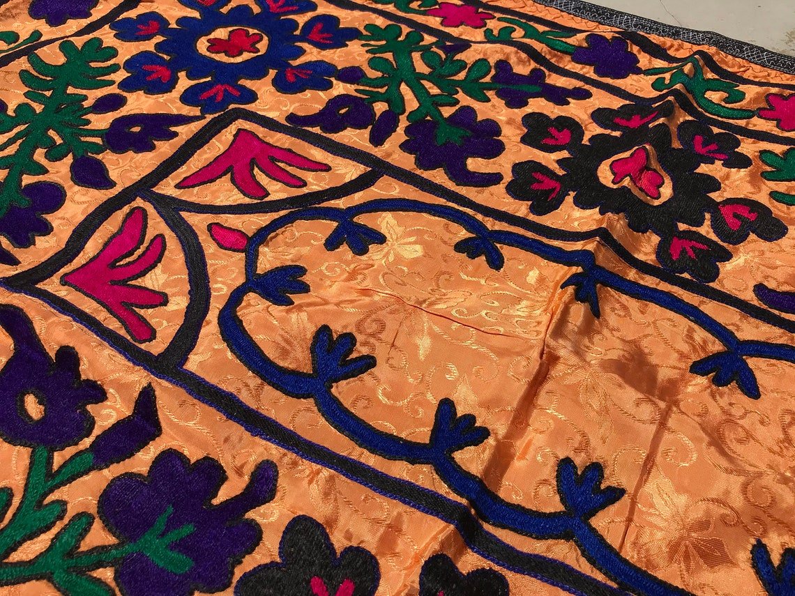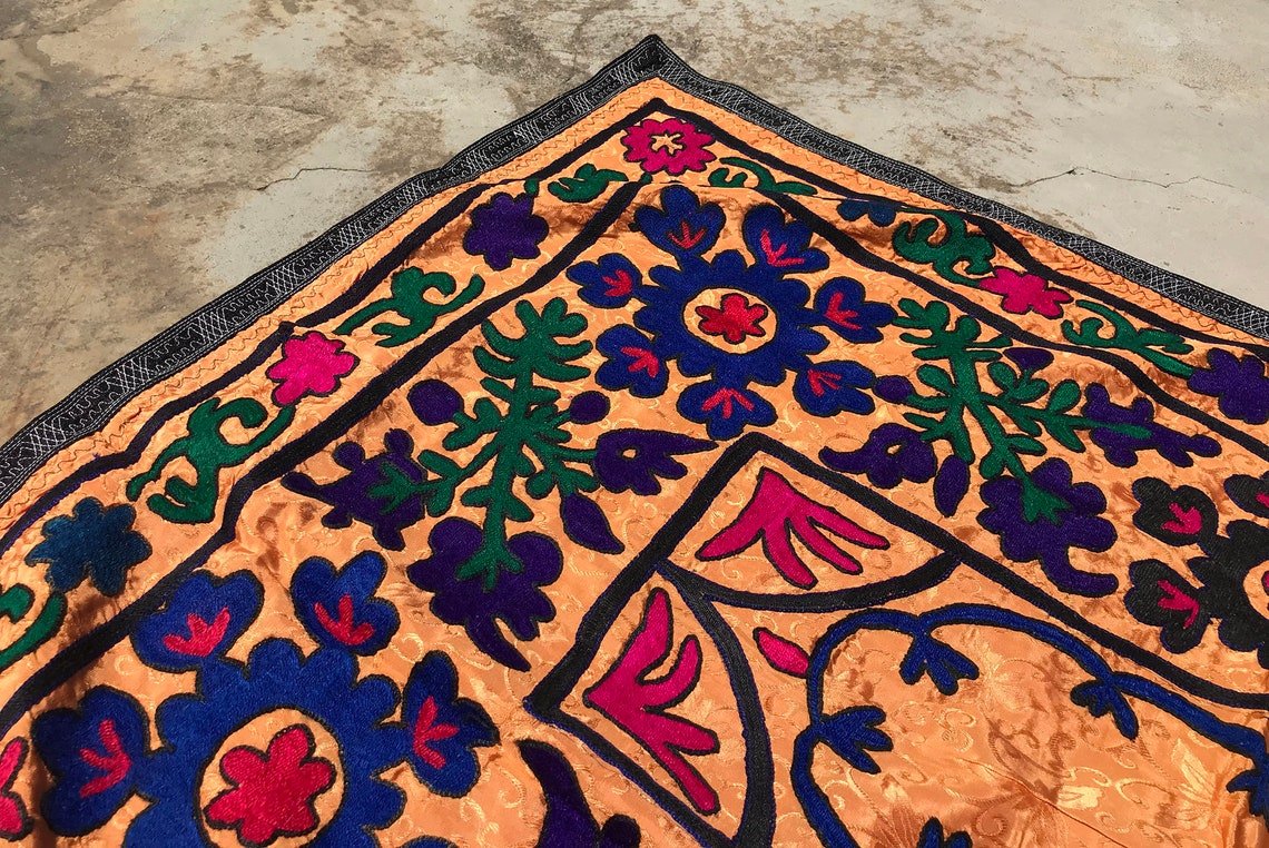 Silk and Cotton Design Crochet Tablecloth or Tapestry, 1970s