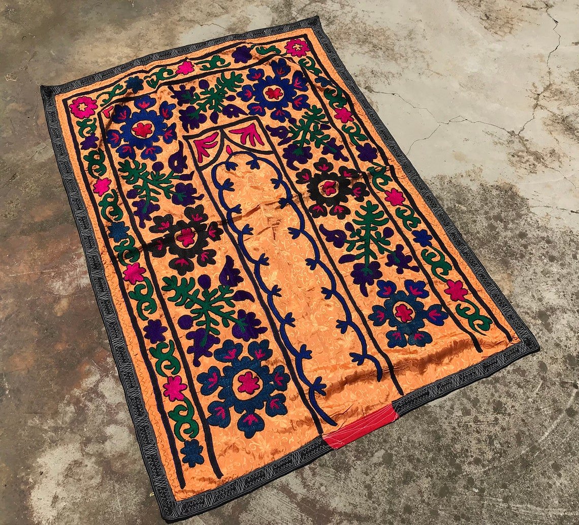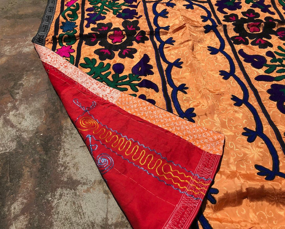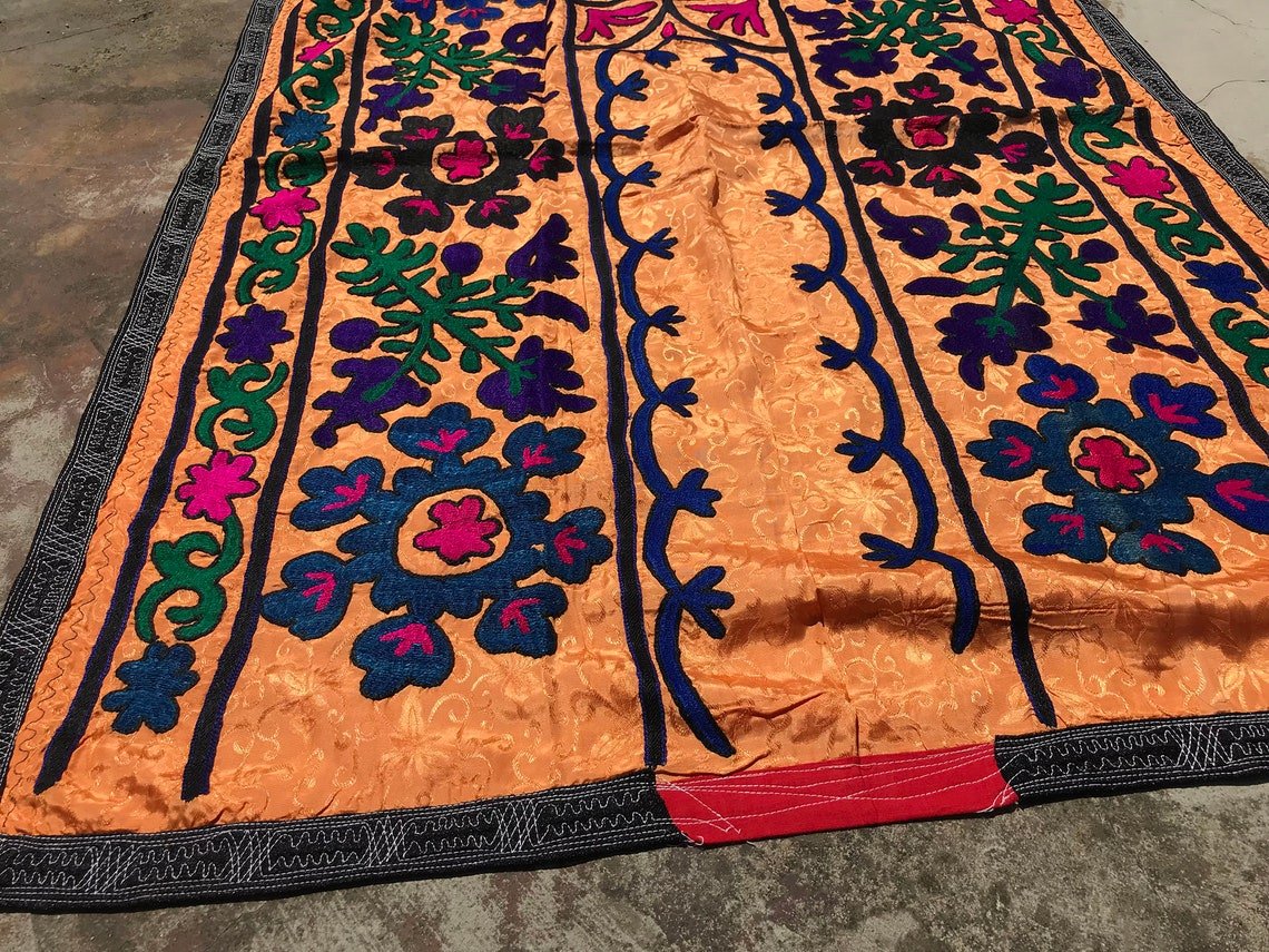 Silk and Cotton Design Crochet Tablecloth or Tapestry, 1970s