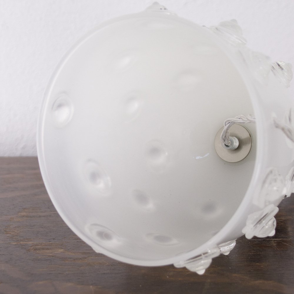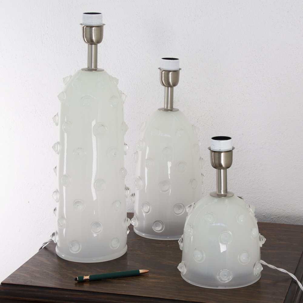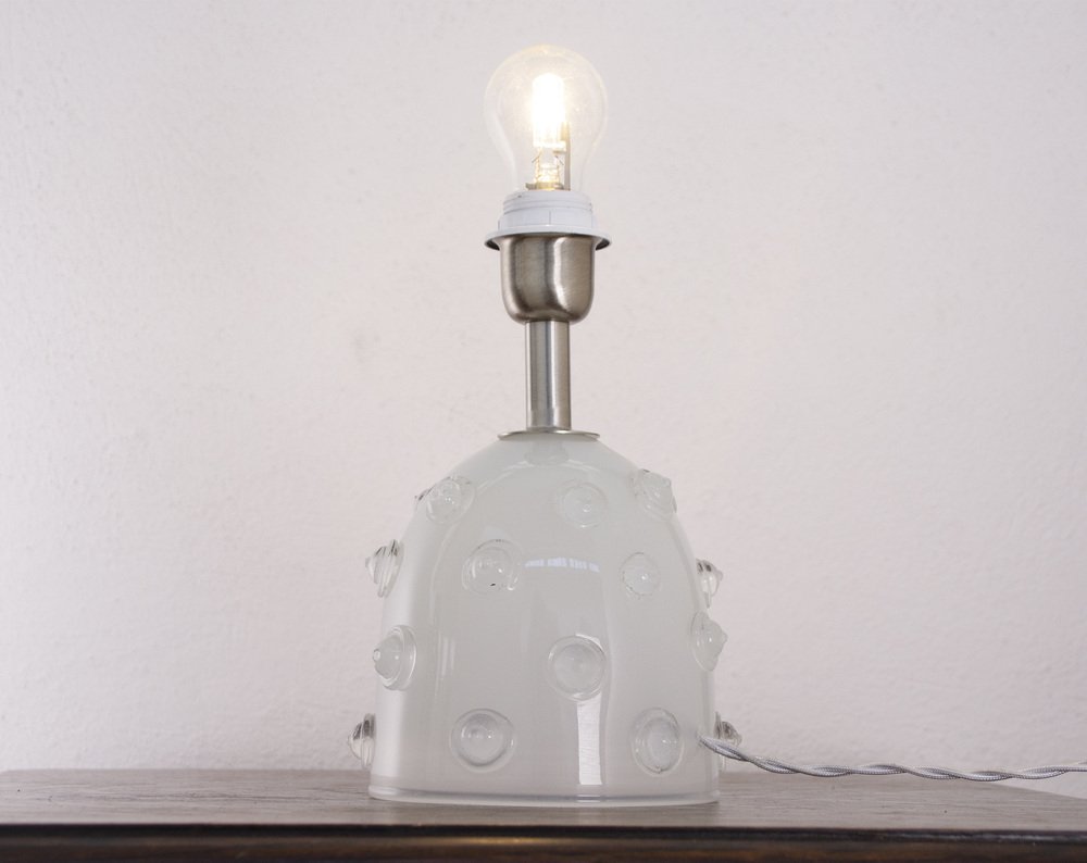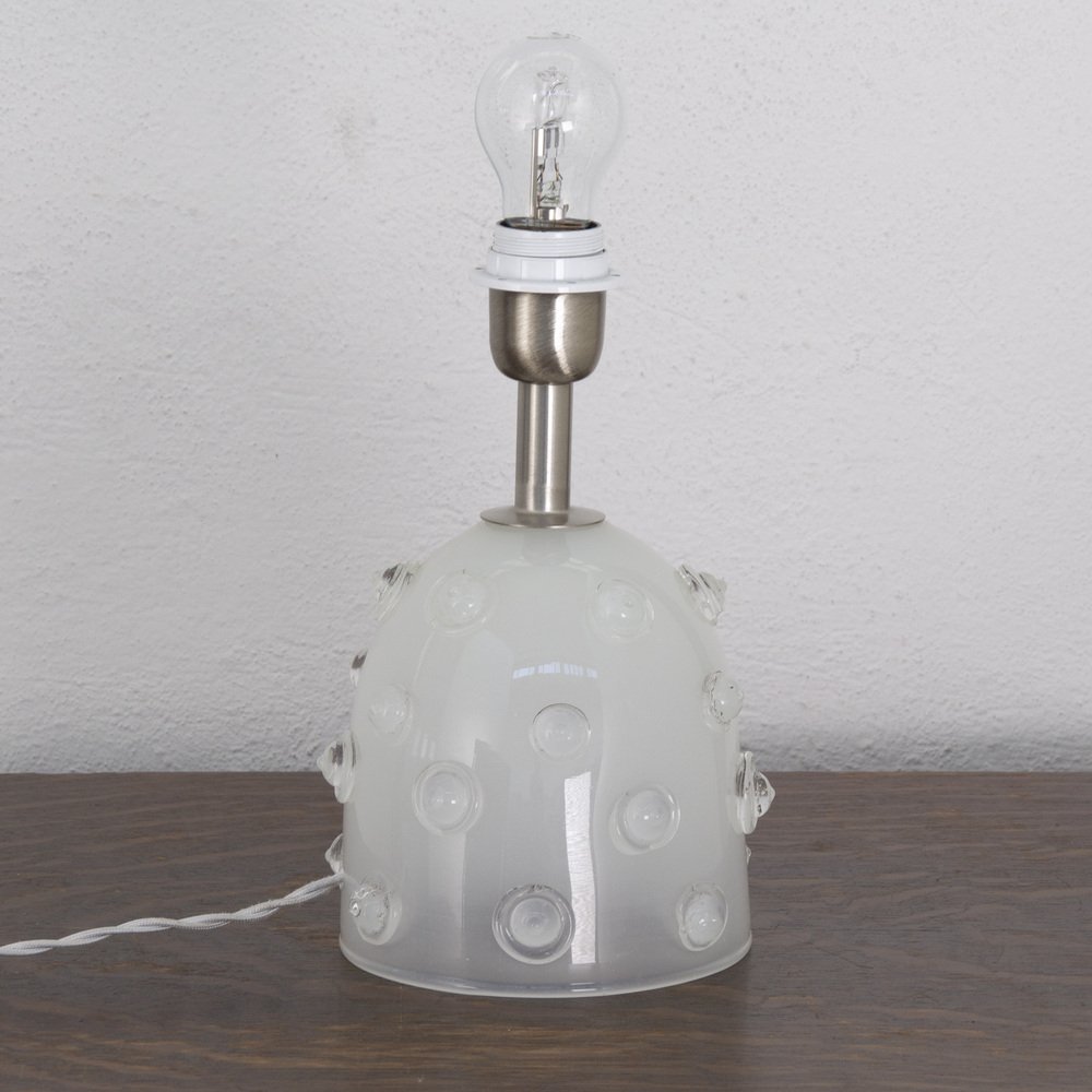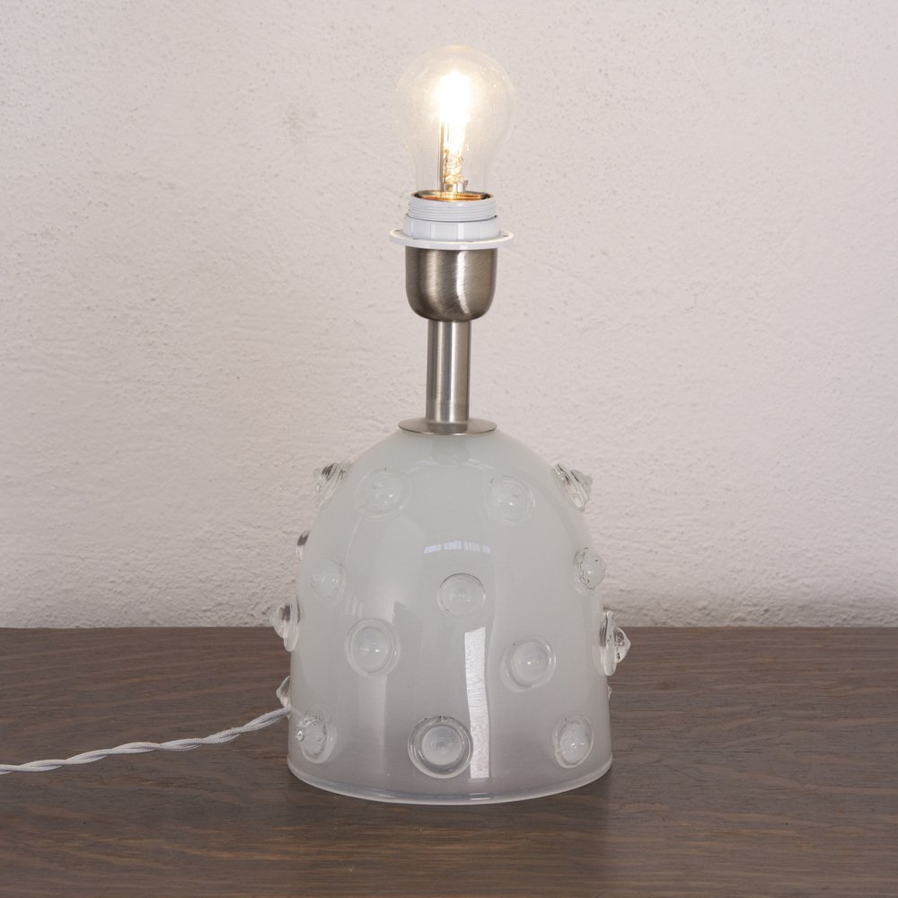 Silk-Colored Murano Artistic Glass Table Lamp with Warm Crystal Studded Studs, Italy