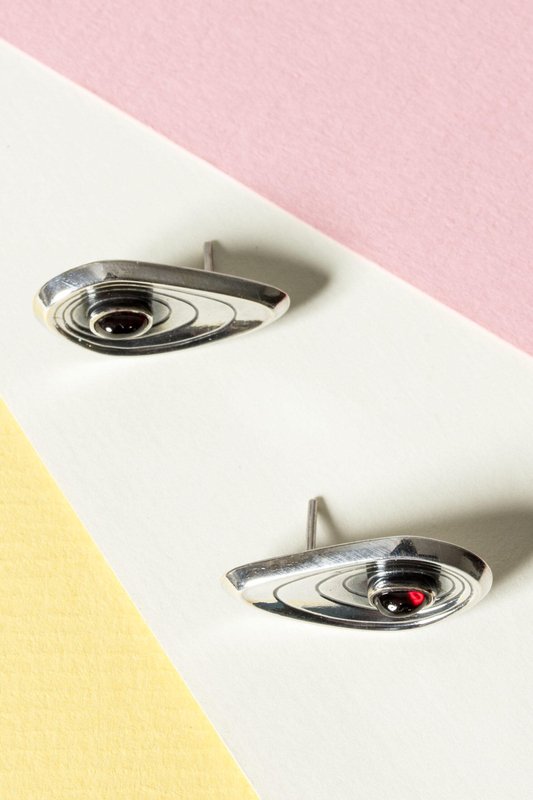 Silver and Garnet Earrings from Sven-Arne Gillgren, 1960s, Set of 2