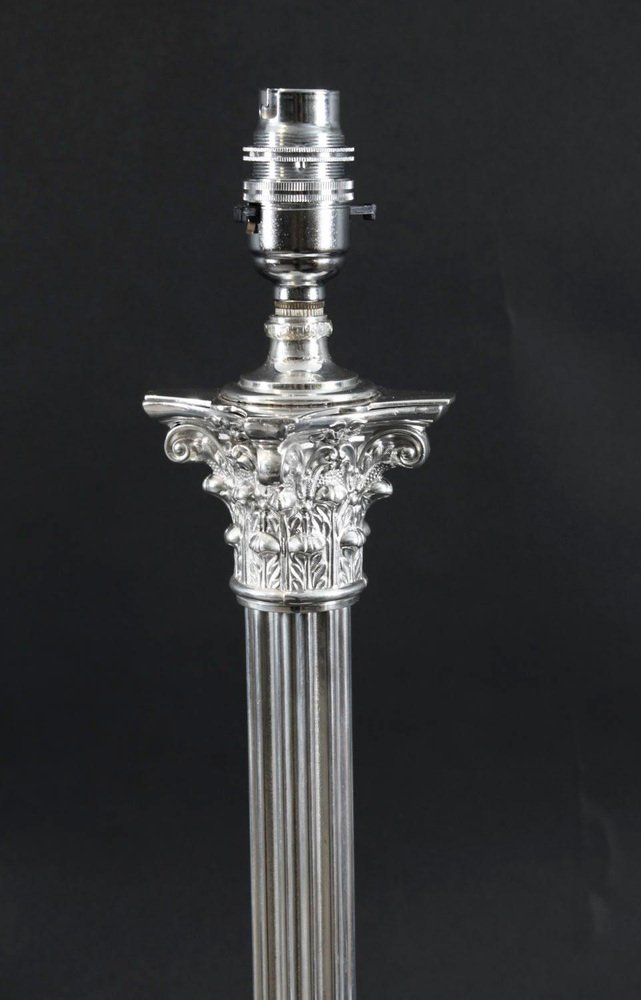 Silver Plate Corinthian Column Table Lamp, 1980s