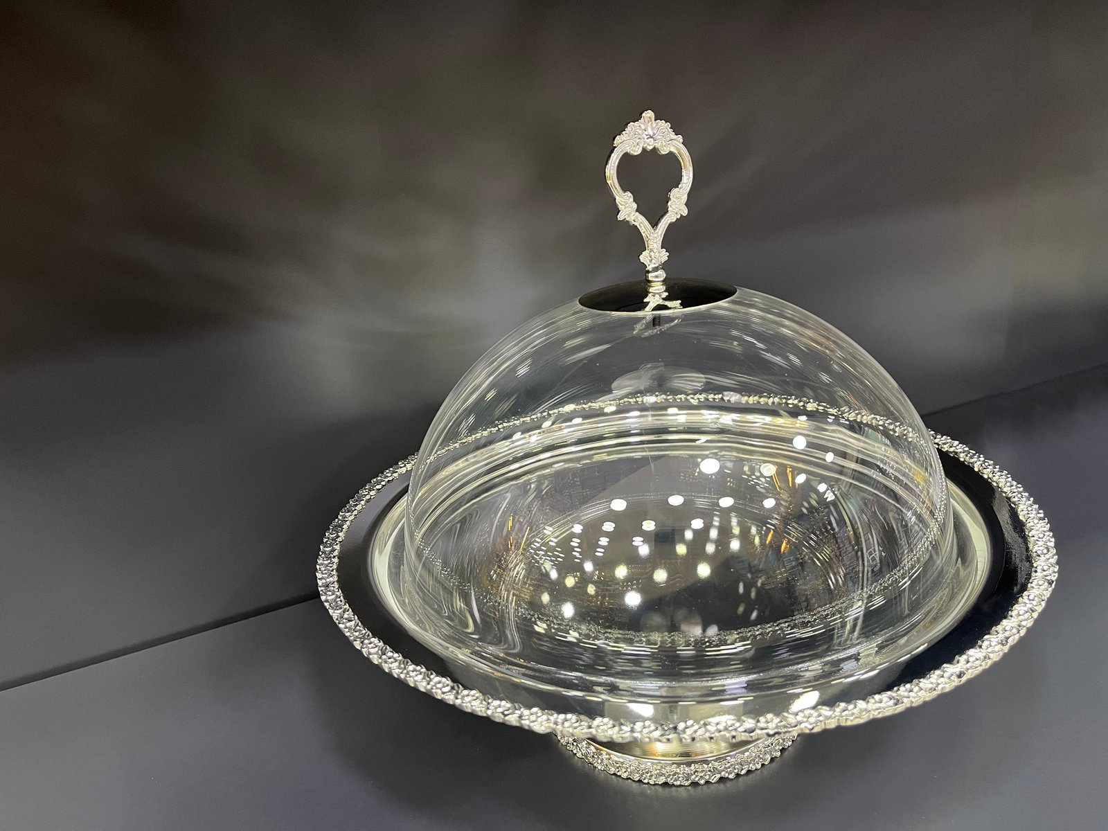 Silver Plated Brass Cake Stand with Acrylic Glass Top