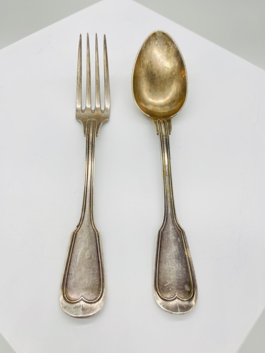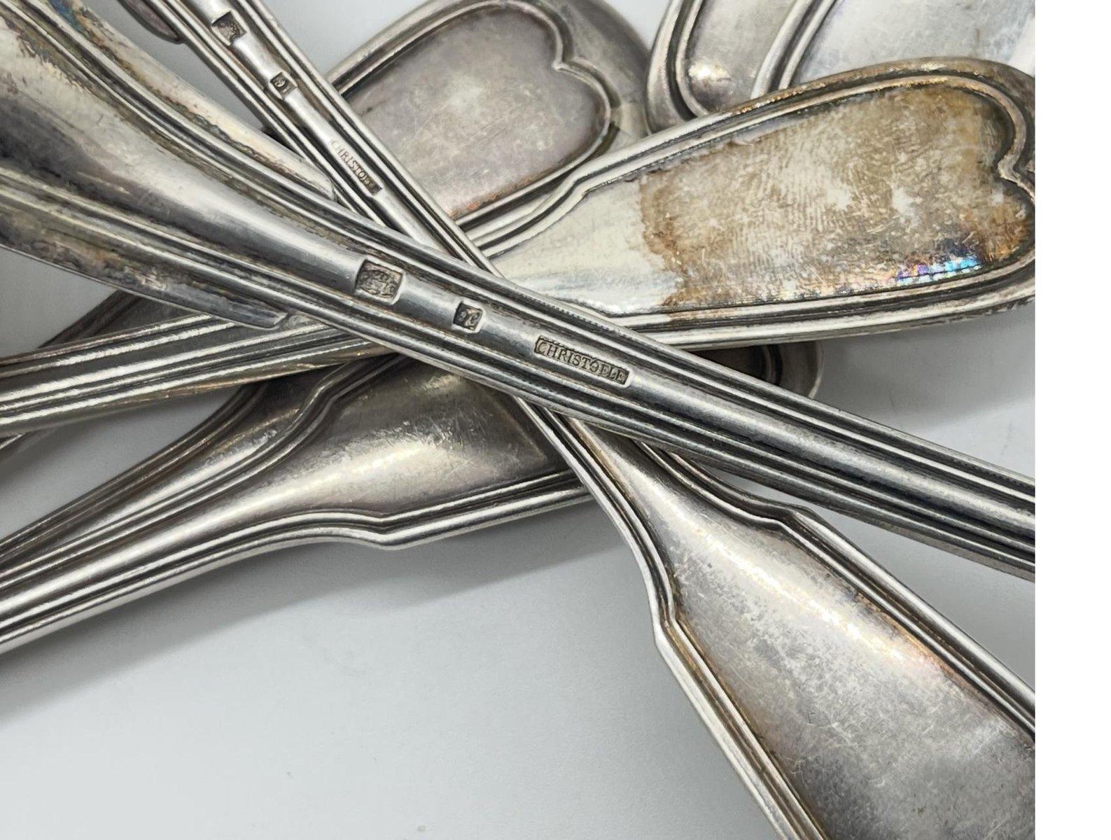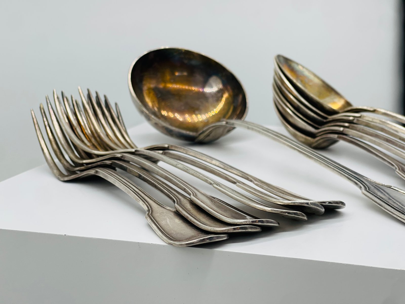 Silver-Plated Soup Cutlery Set with Spoons, Fork and Ladle from Christofle, France, 1900s, Set of 13