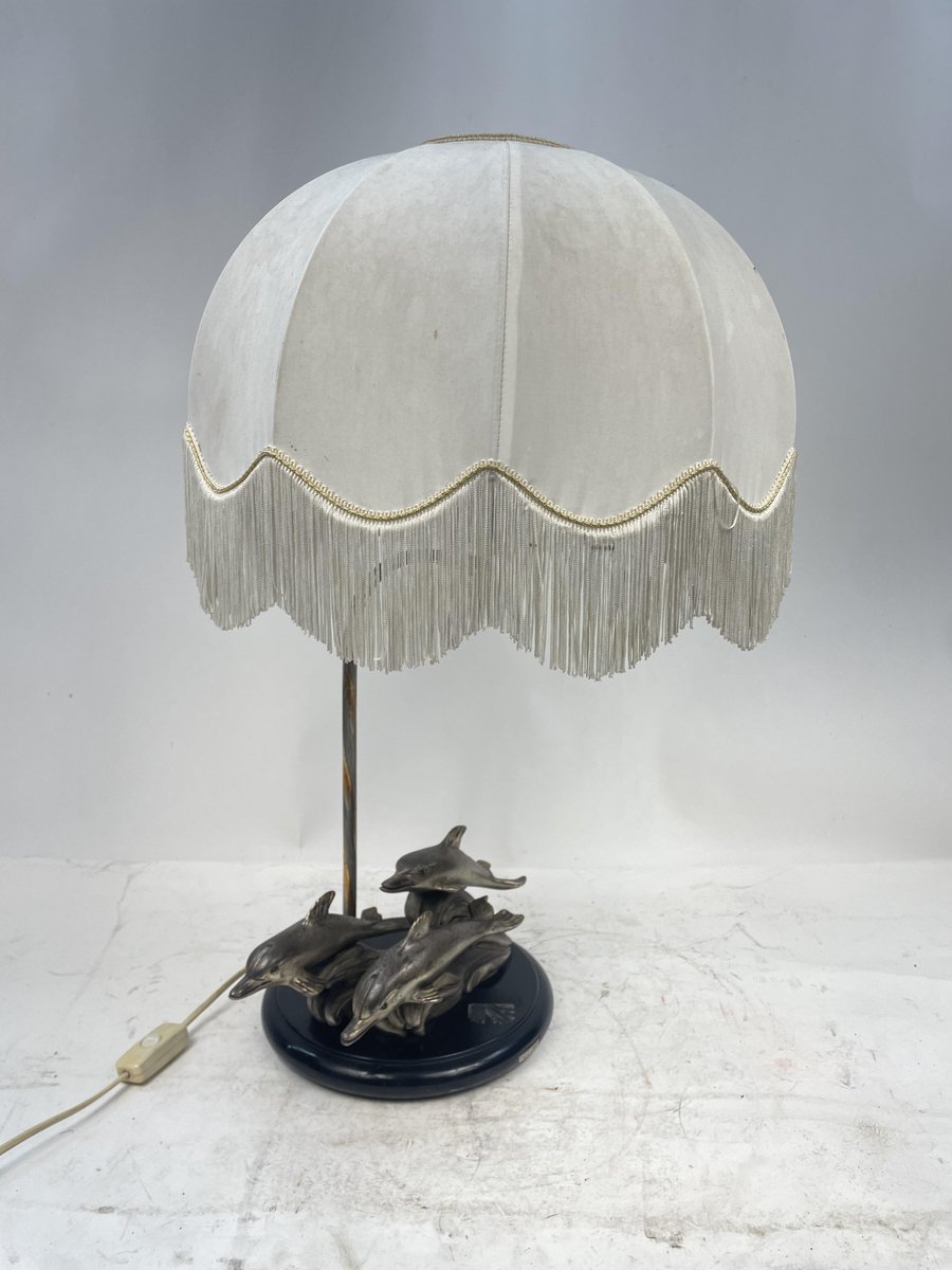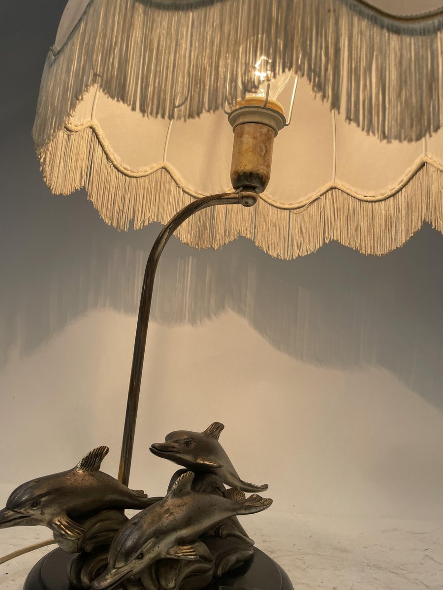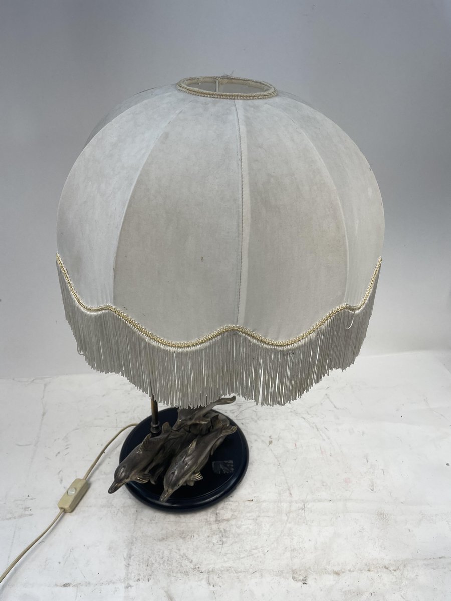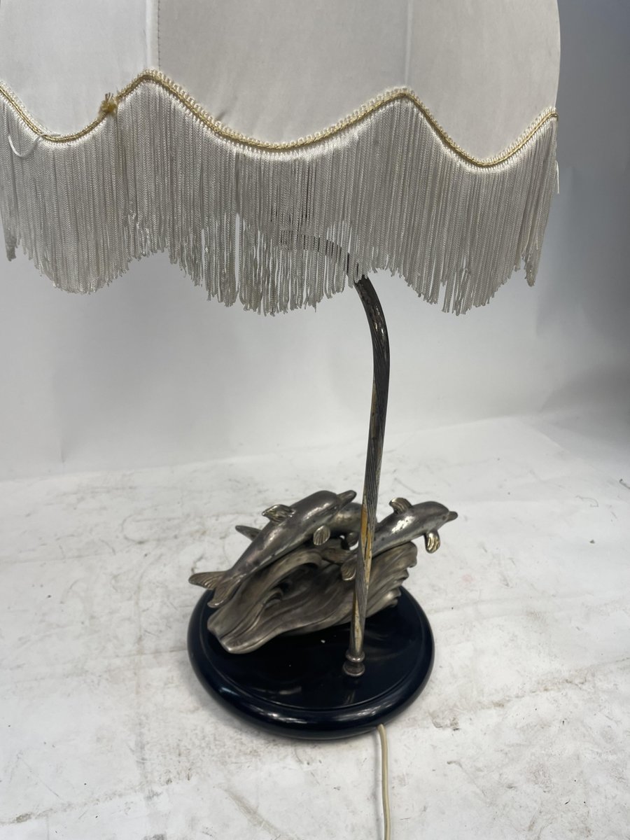 Silver-Plated Table Lamp with Dolphins, 1970s