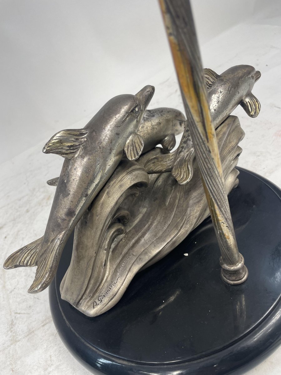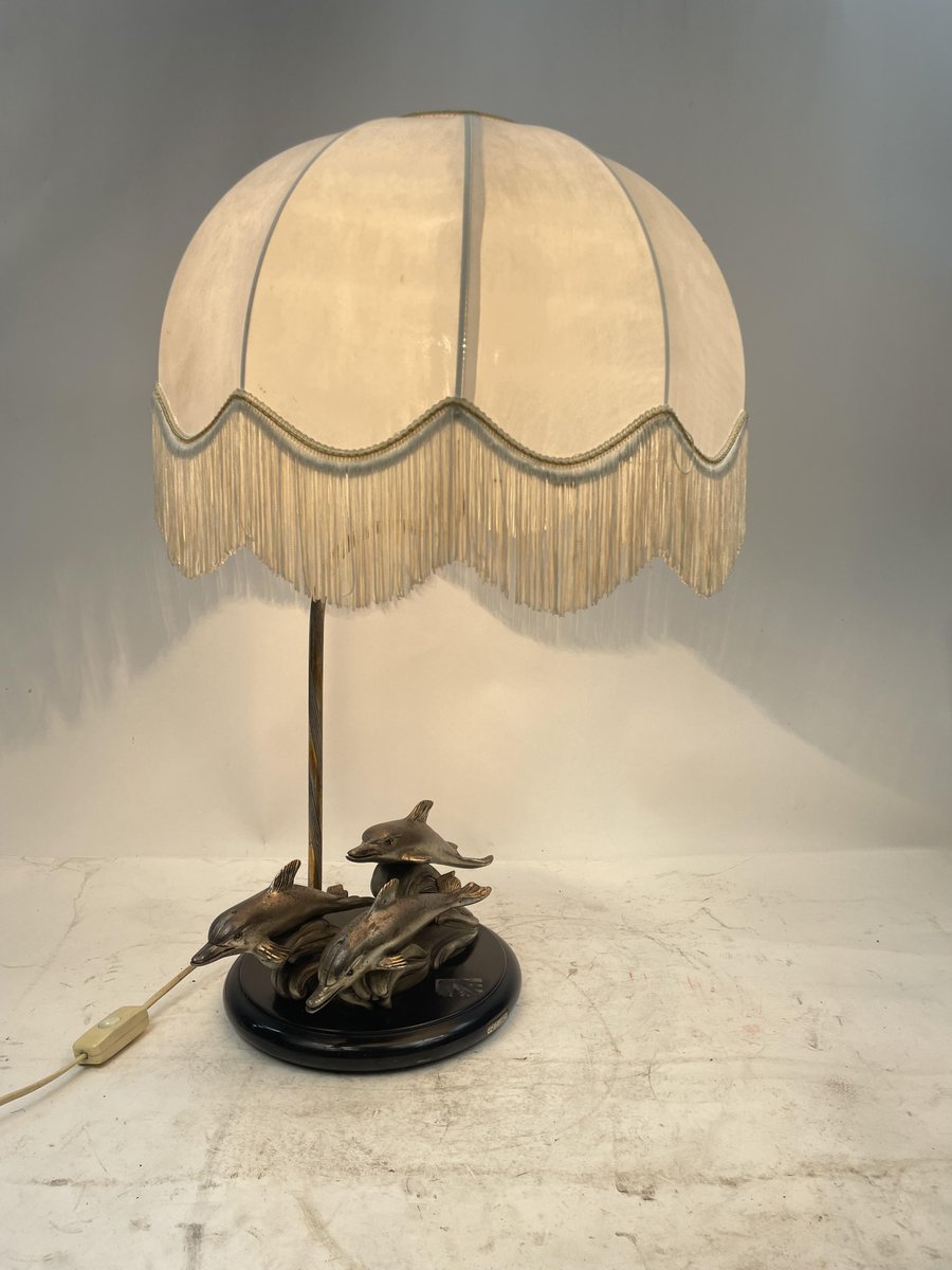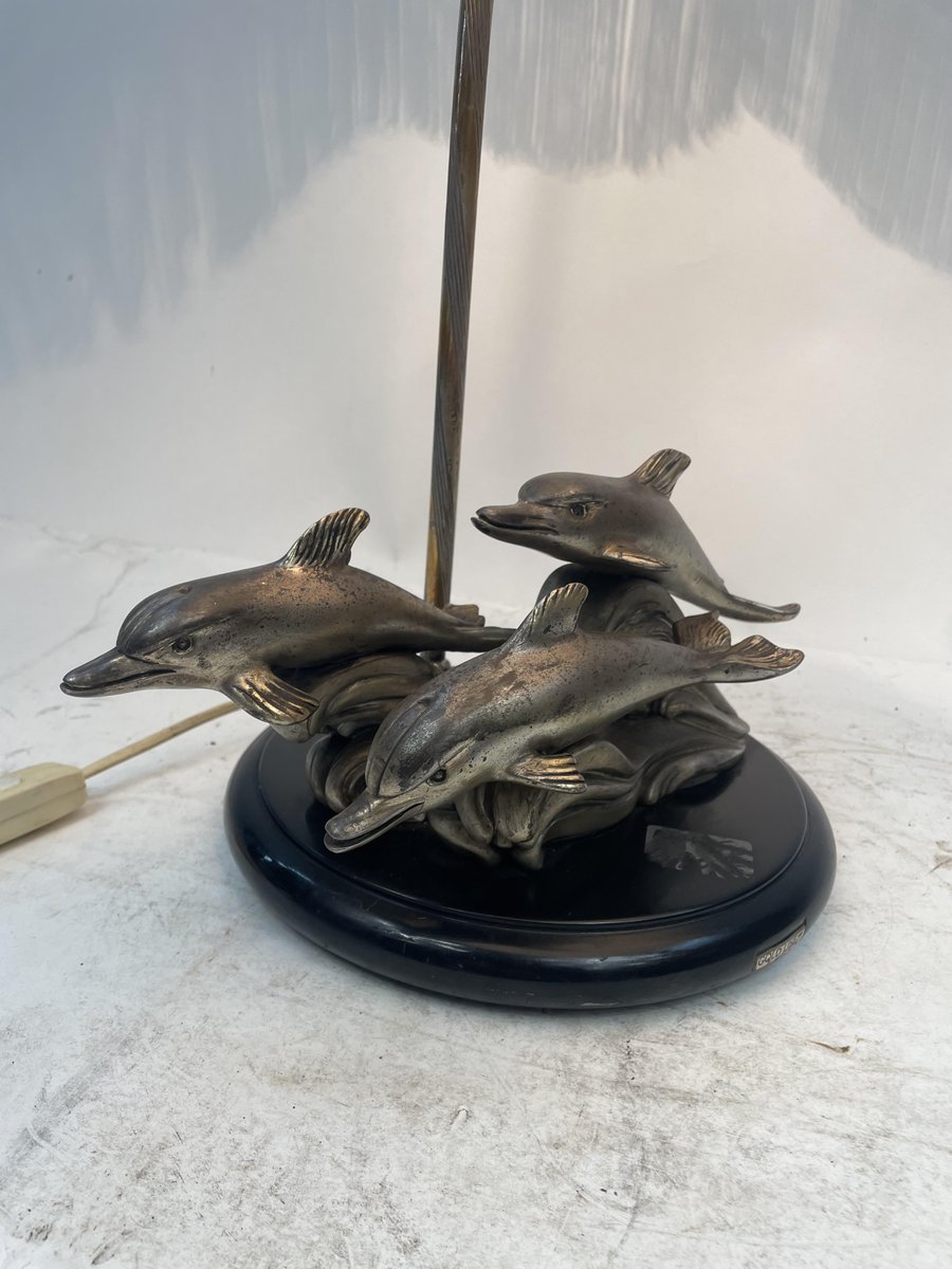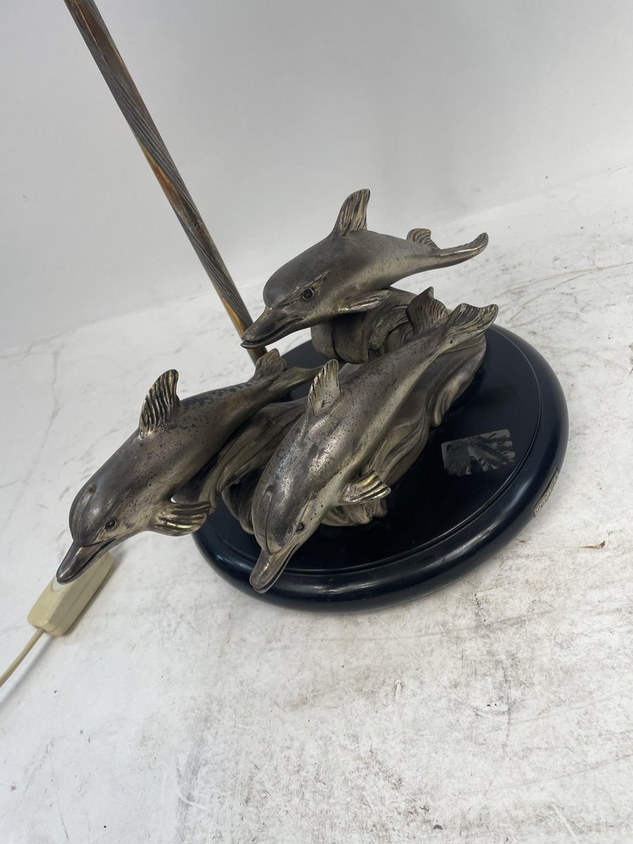Silver-Plated Table Lamp with Dolphins, 1970s