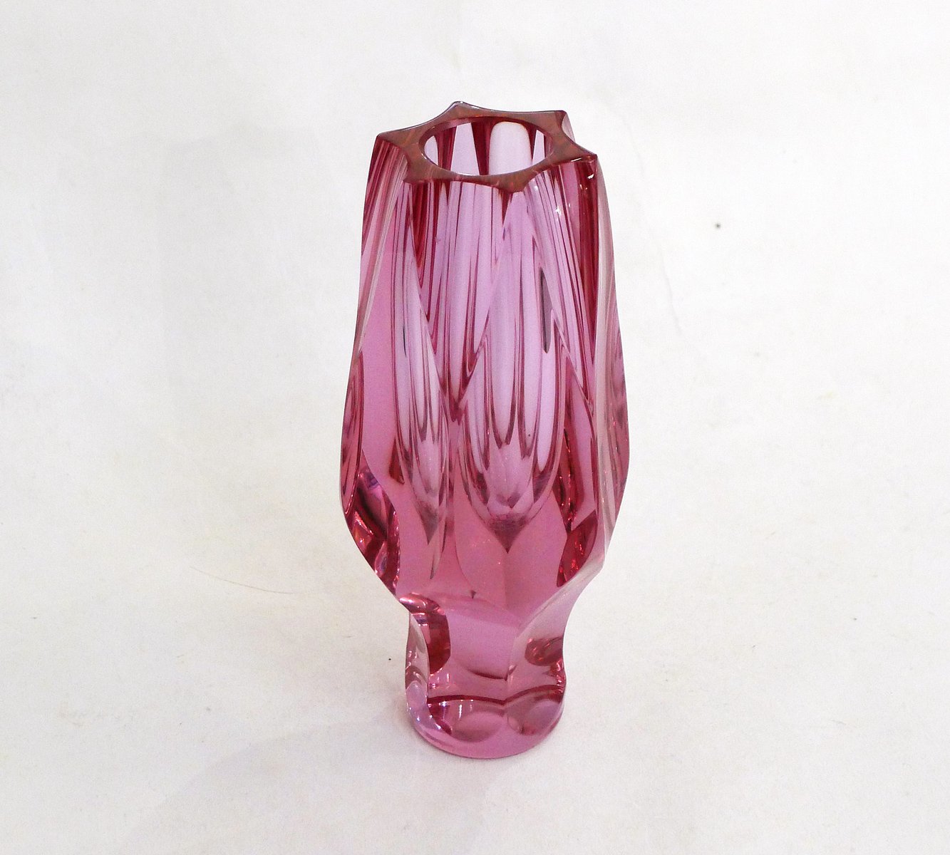 Small Faceted Vase Cut in Purple-Pink Glass, 1960s