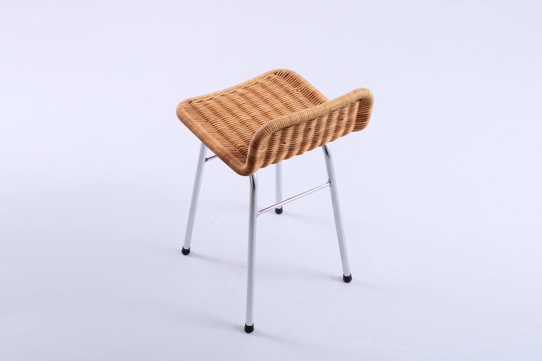 Small Rattan Stool by Dirk Van Sliedregt for Rohe Noordwolde, 1960s