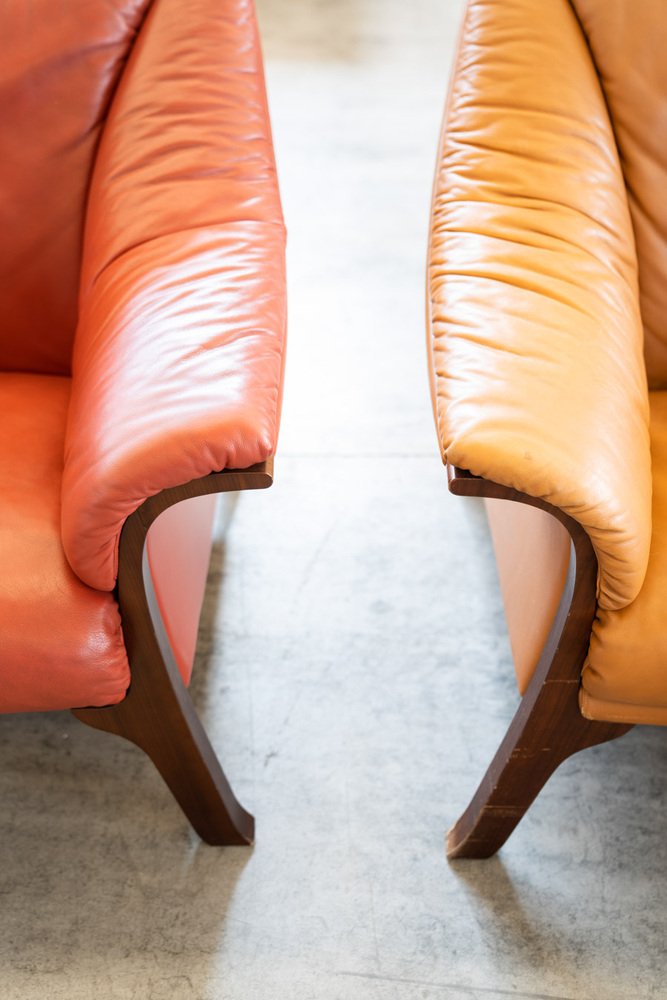 Frau’s wife, Savina Pisati, played an increasingly important role in directing the company during World War I and after. Under her leadership, Poltrona Frau earned an international reputation for excellent quality and sophisticated silhouettes, and, by the midcentury, could be found in aristocratic homes, luxury ocean liners, and parliamentary meeting rooms around the world. Early successful designs for Poltrona Frau included the 1919 Armchair (also called the 128) from the titular year and the Vanity Fair Armchair (also called the 904) from 1930, both still in production today. In 1941, Pisati passed the baton to her son-in-law, Roberto Canziani, who in 1962, under pressure of bankruptcy, sold the company to luxury leather goods magnate and design lover, Franco Moschini of Nazareno Gabrielli Group.