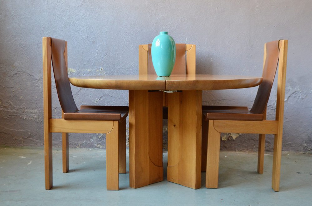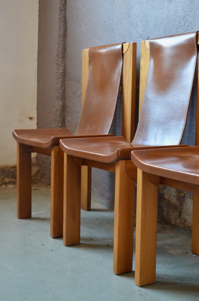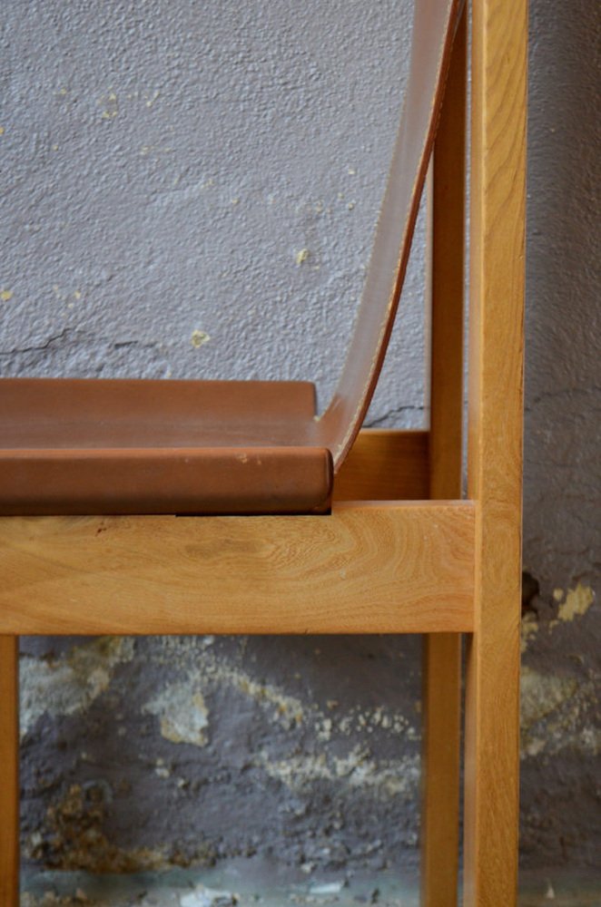 Solid Elm & Leather Chairs by Roland Haeusler, Set of 4