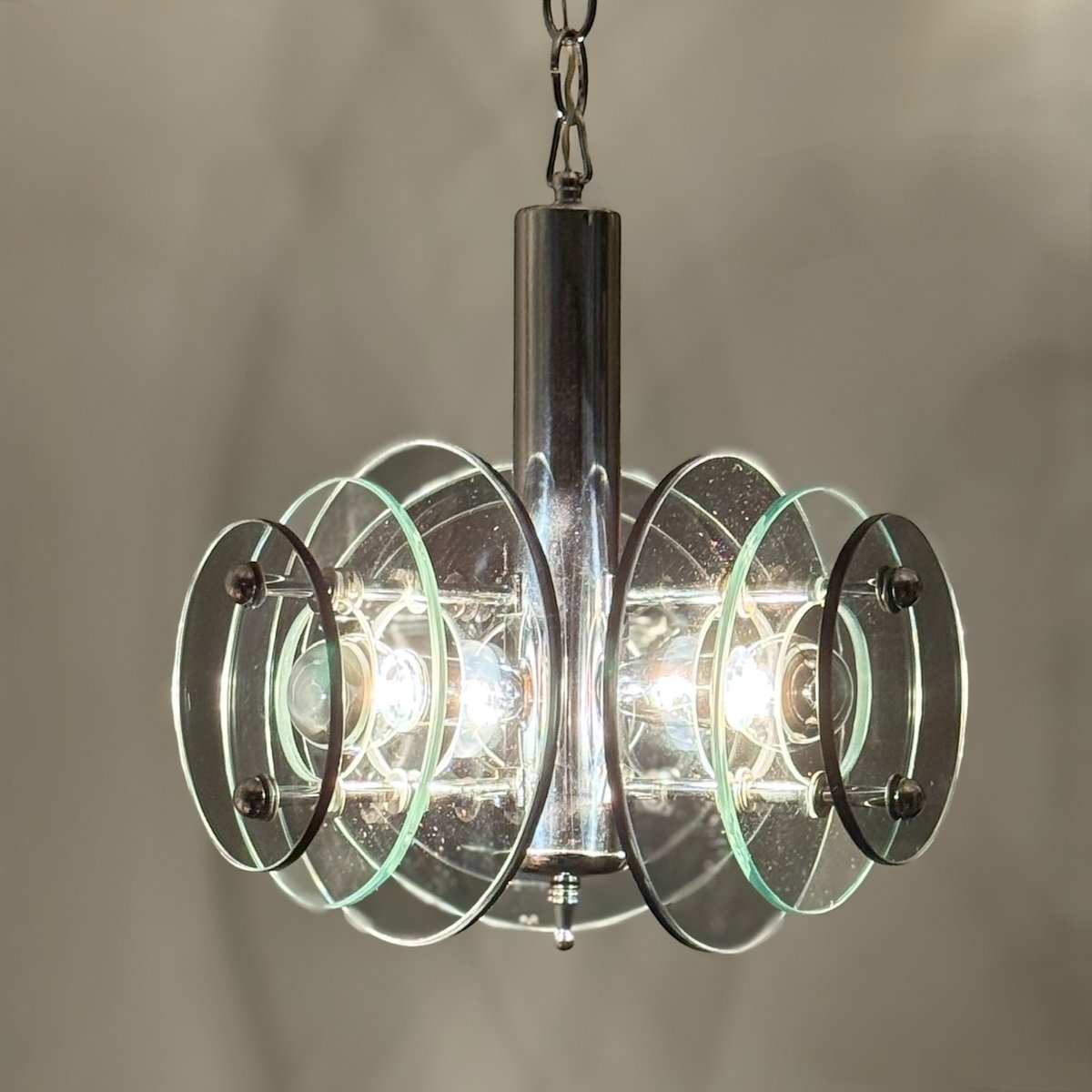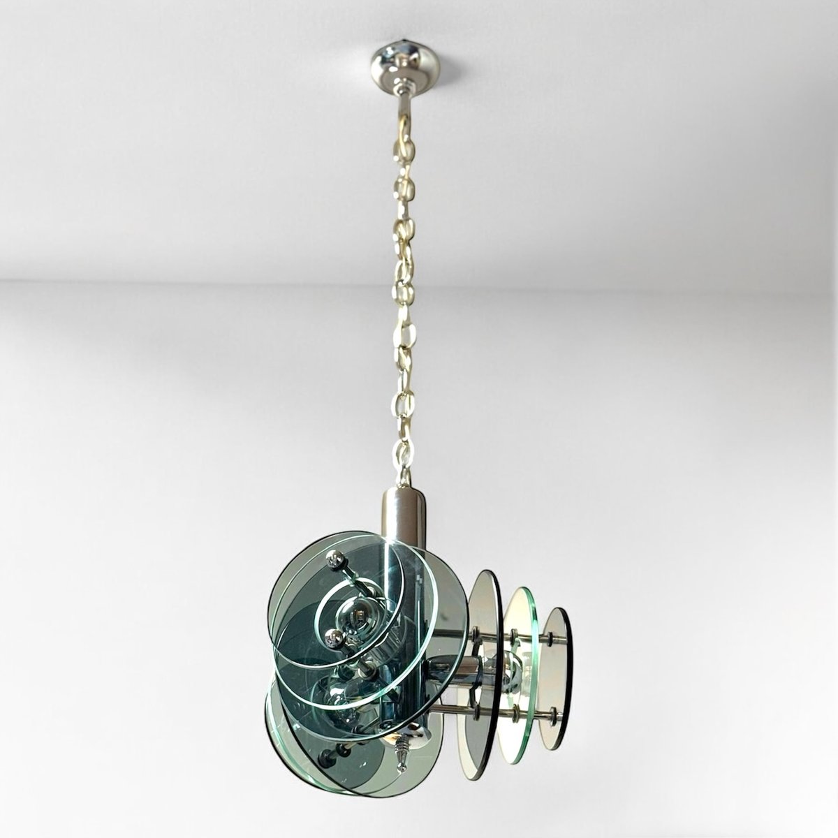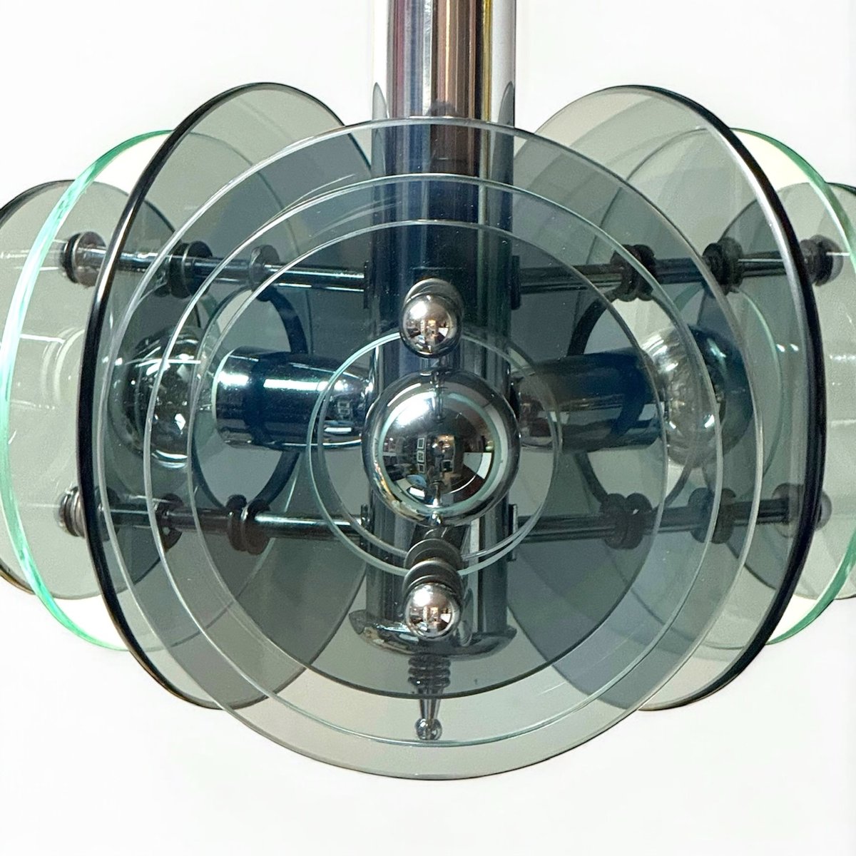 Space Age Hanging Lamp in Chrome Metal and Smoked Glass from Veca, 1970s