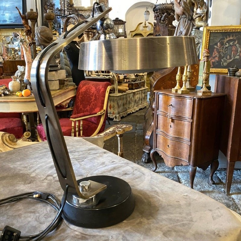 Italian lighting manufacturer Arredoluce was an important proponent of postwar Italian lighting design and was founded by designer-entrepreneur Angelo Lelli (sometimes written Lelii). Lelli is thought to have established Arredoluce in 1947, the year after his lamp designs were included in the well-regarded Domus magazine.