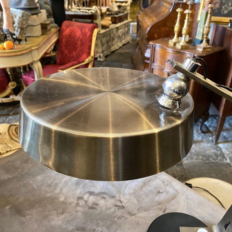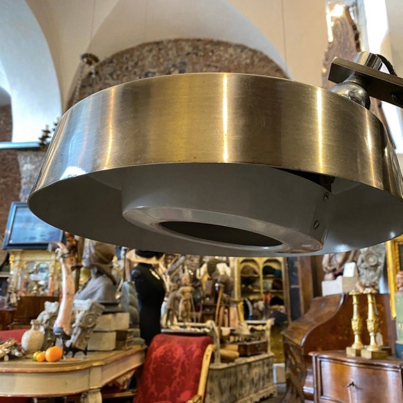 , many of which were designed by Lelli himself. Other iconic designers who worked with Arredoluce included Franco Albini, Achille and Pier Castiglioni, Vico Magistretti, Gio Ponti, Ettore Sottsass, Mario Tedeschi, and Nanda Vigo. Whereas many Arredoluce chandeliers and pendants are made from brass and feature opaline glass shades, the floor lamps and table lamps tend to be more minimalist in style, often featuring adjustable shades and articulated arms.