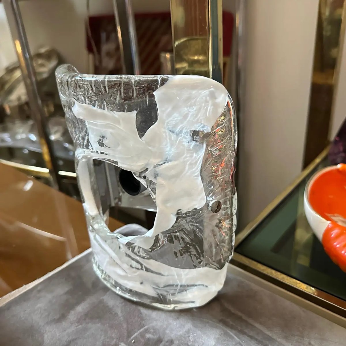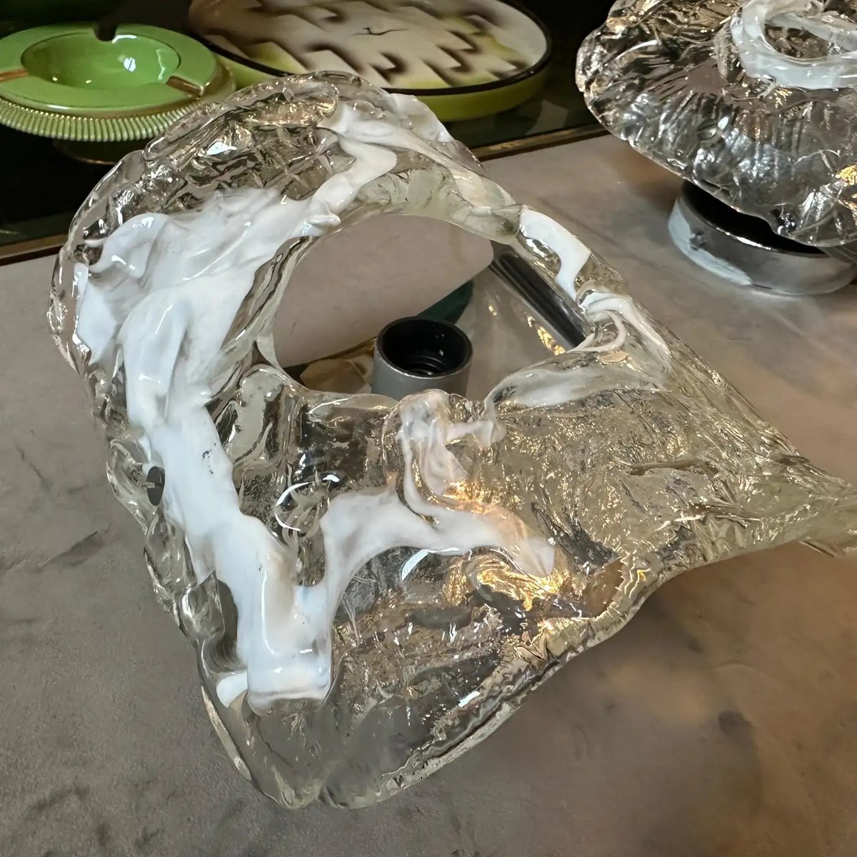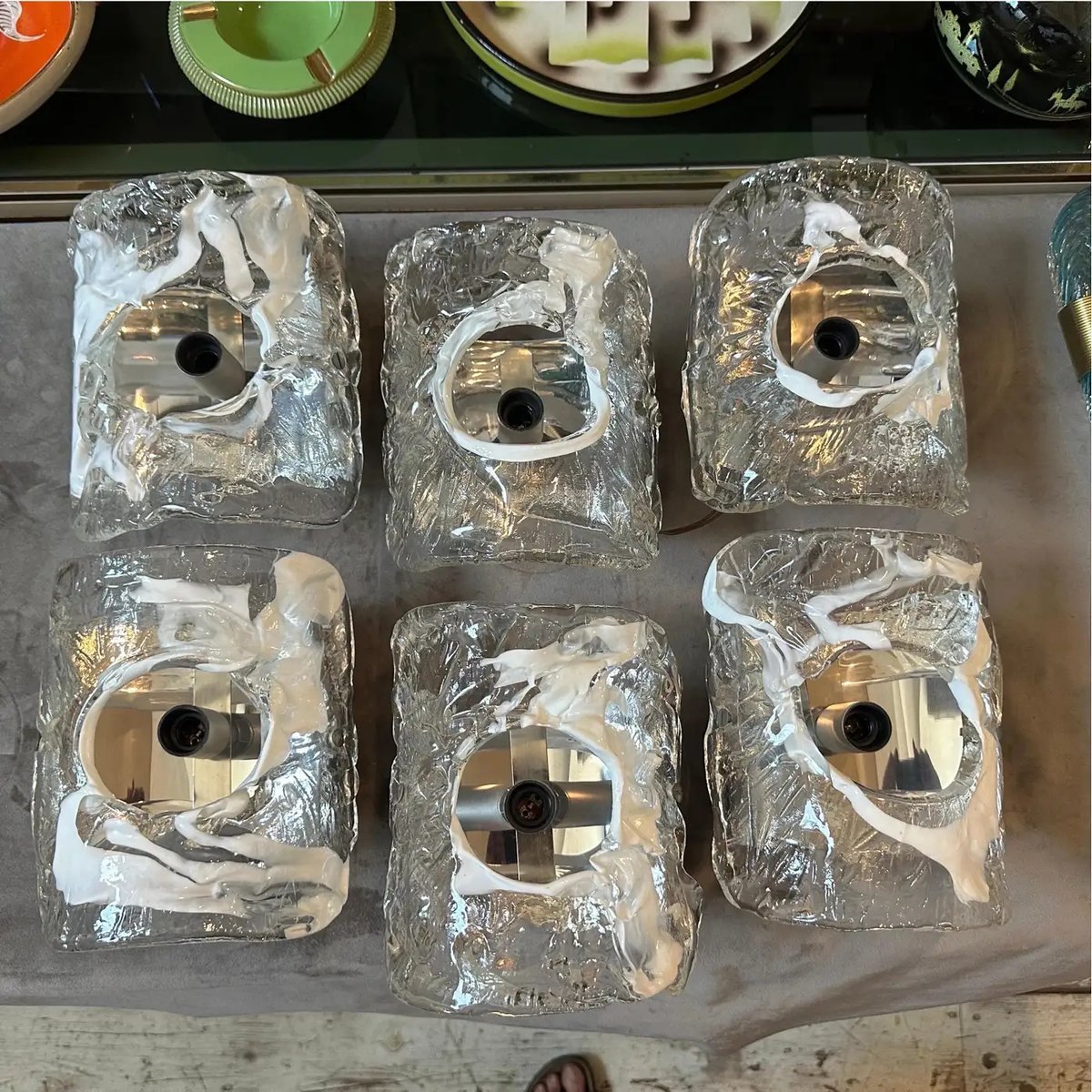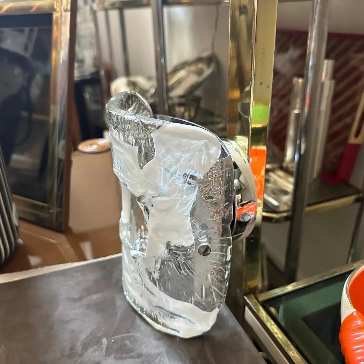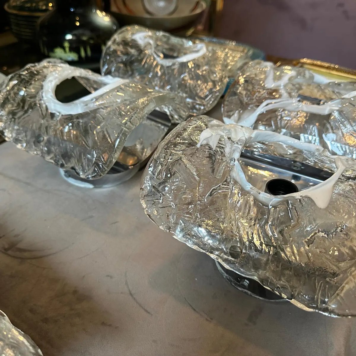 Spage Age Clear and White Murano Glass and Steel Wall Sconces attributed to Mazzega, 1970s, Set of 2