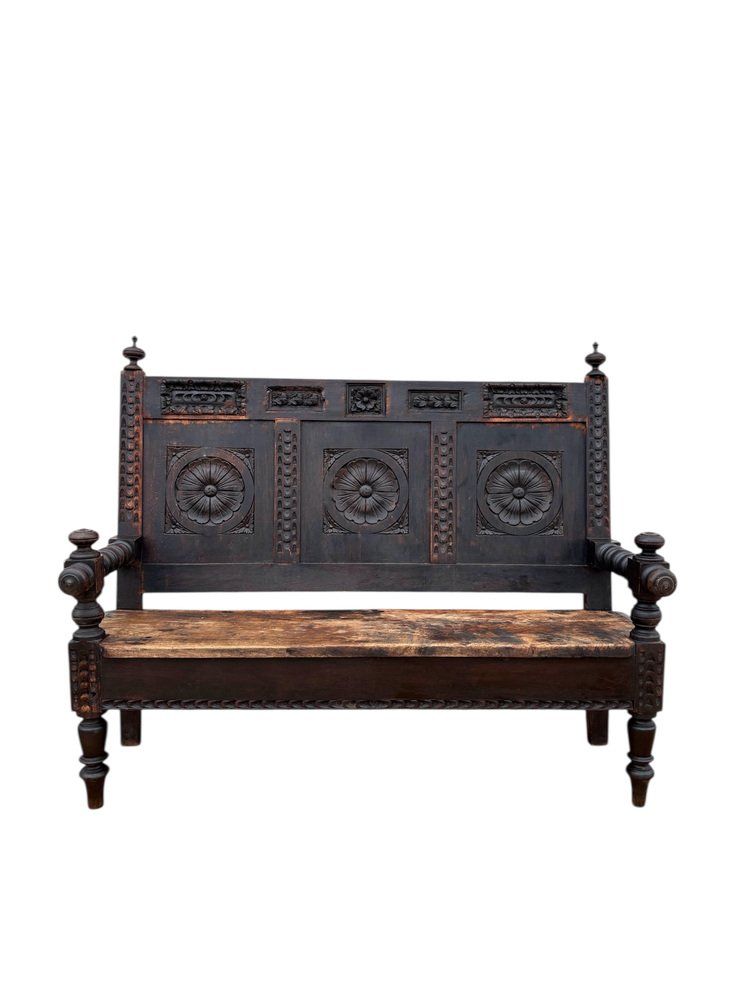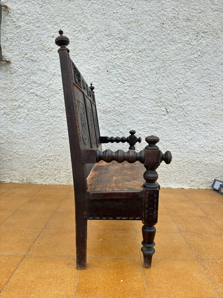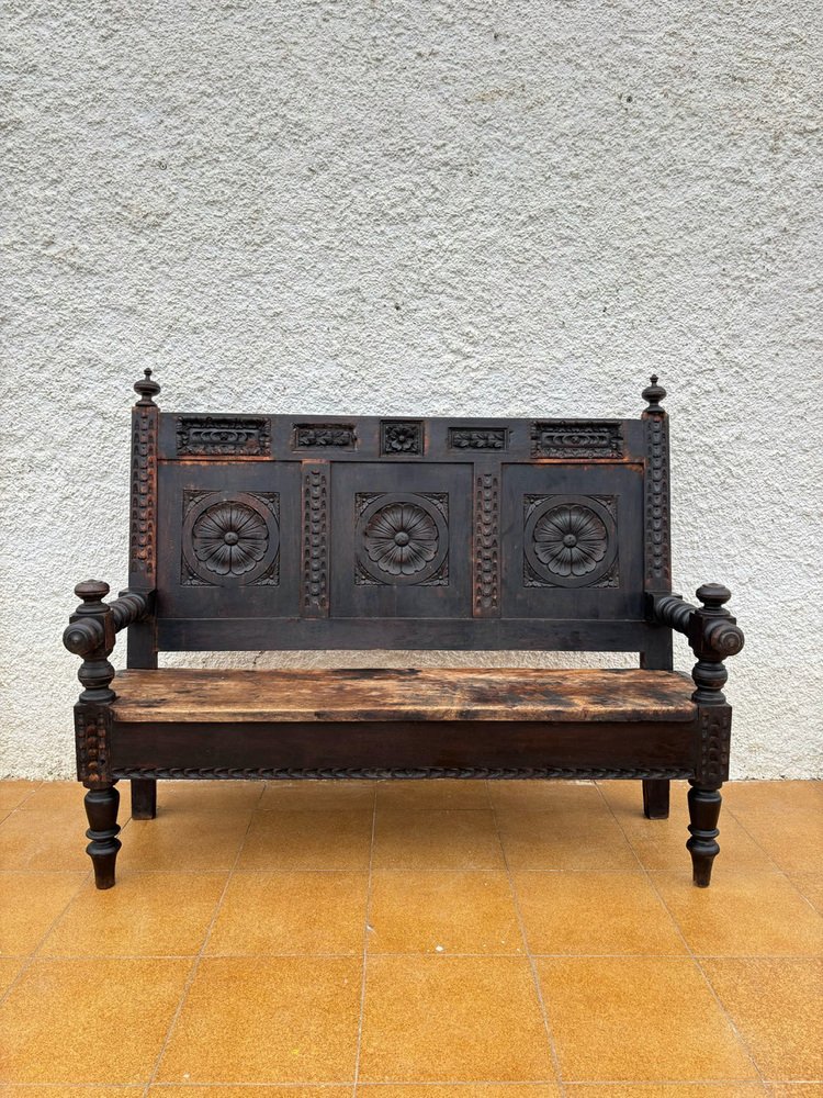 Spanish Carved Wooden Bench, 1930