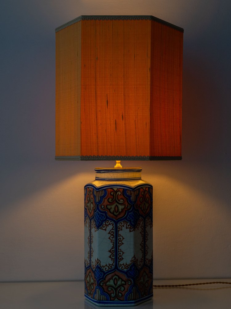 Antique Delft Polychrome Faience Table Lamp by Desvres, 1850