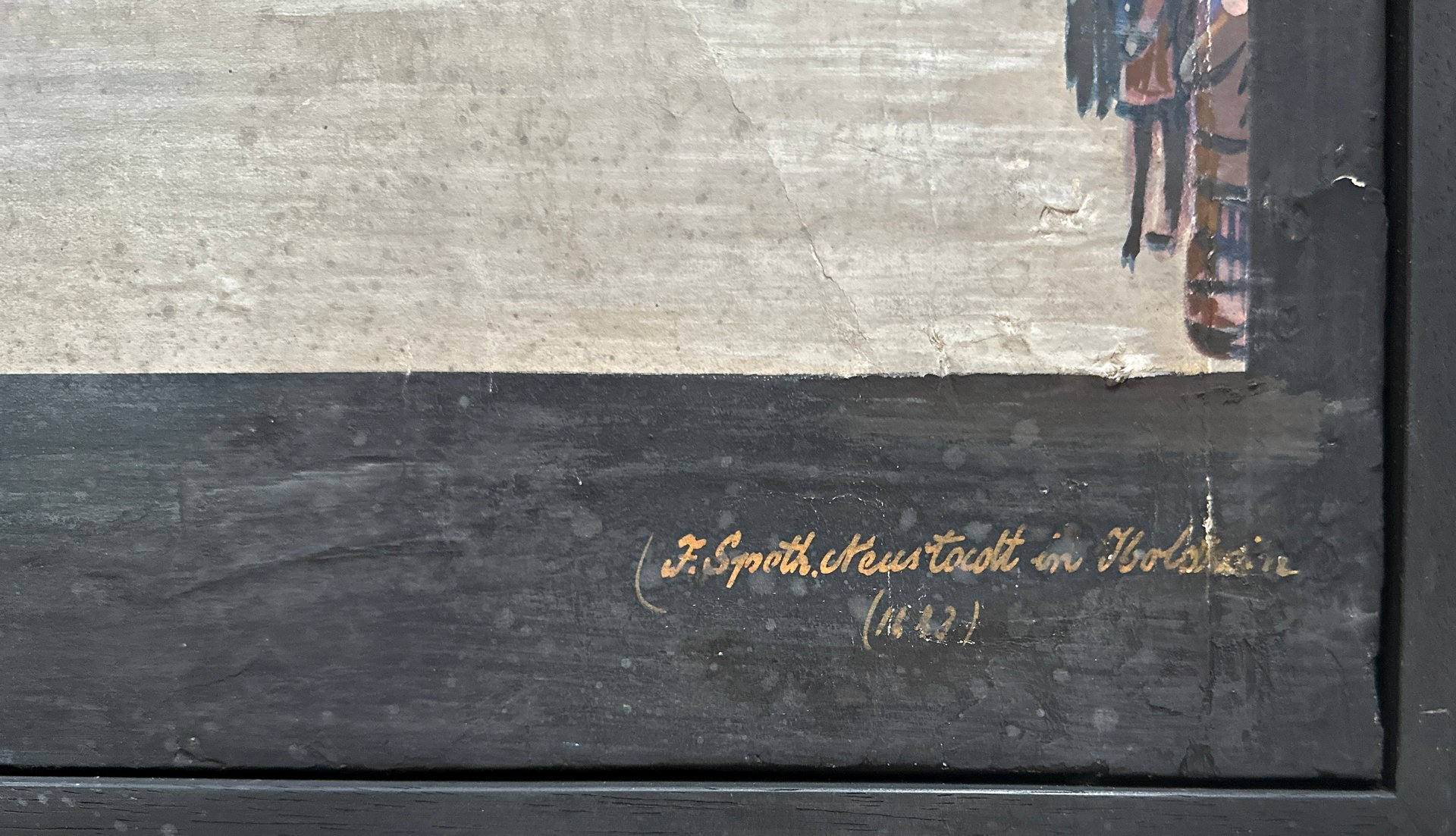 Original condition, replaced stretcher, minor damage (see photos)