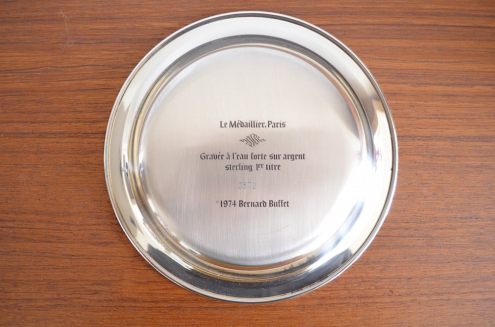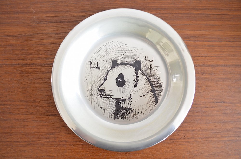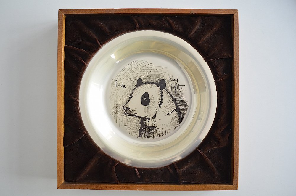 Sterling Silver Silver Wall Plate Panda by Bernard Buffet, 1970s