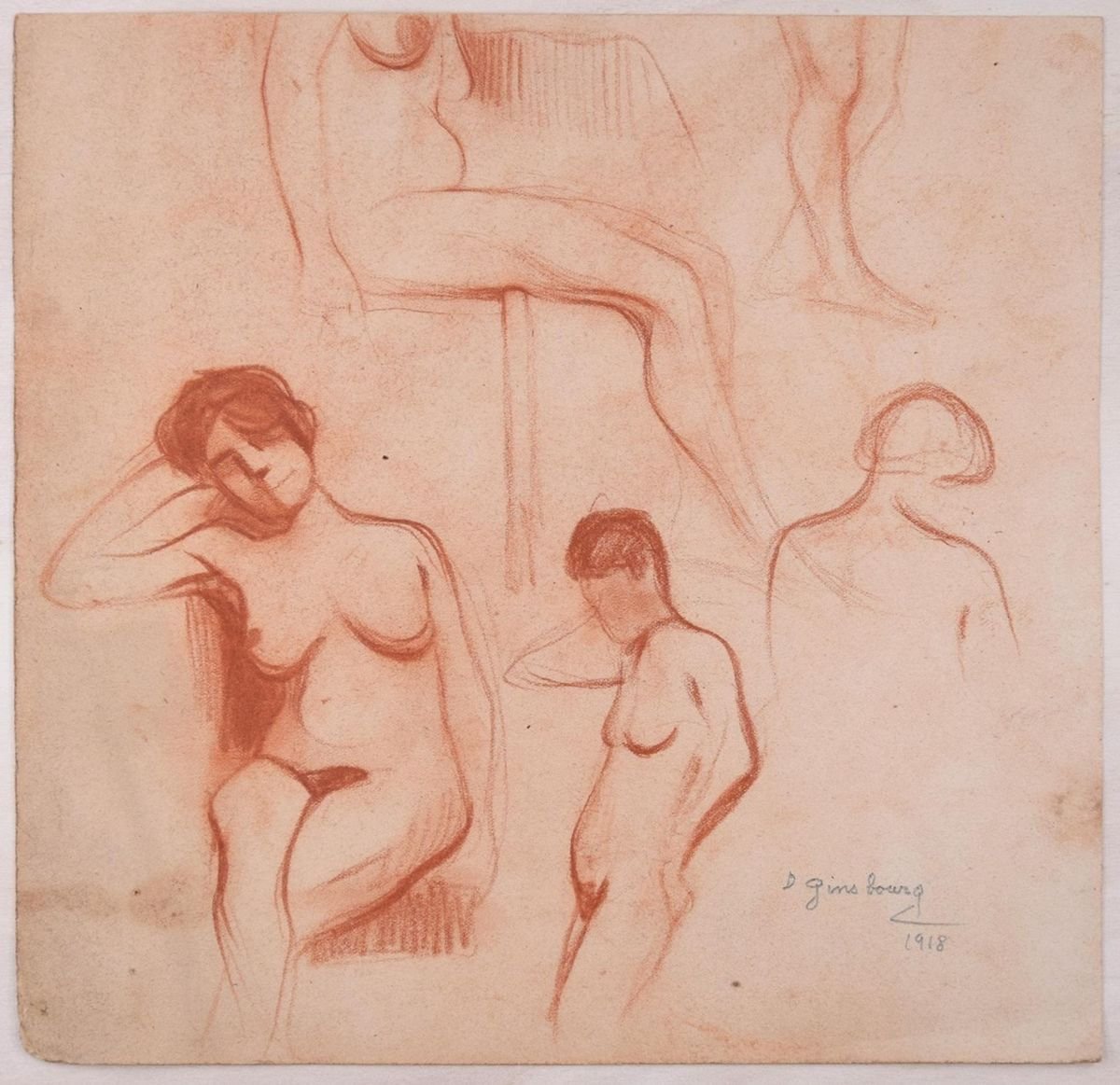 Studies for a Female Standing Nude - Pencil Drawing by D. Ginsbourg - 1918 1918