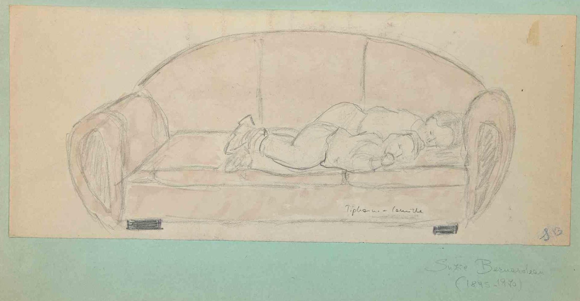Suzie Bernardeau, Sleeping, Original Pencil Drawing, Mid-20th Century