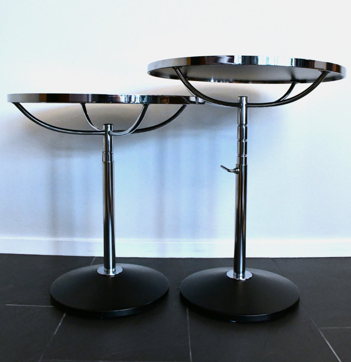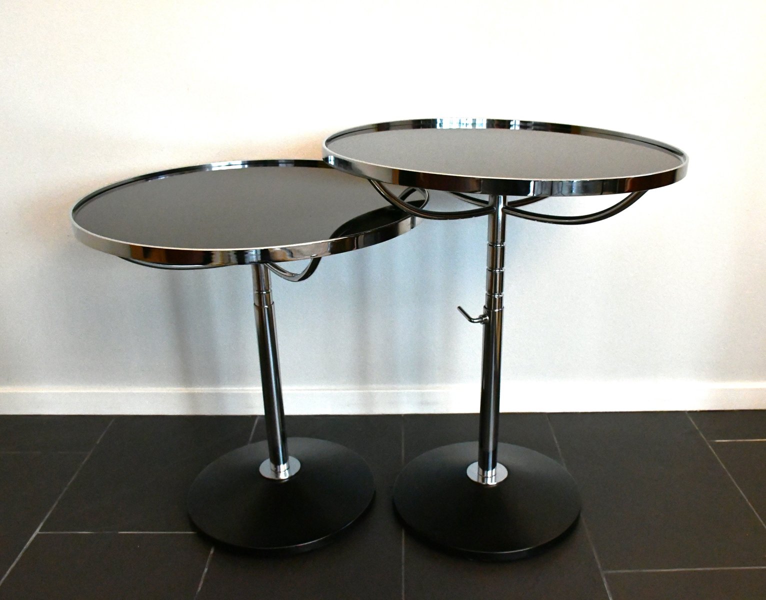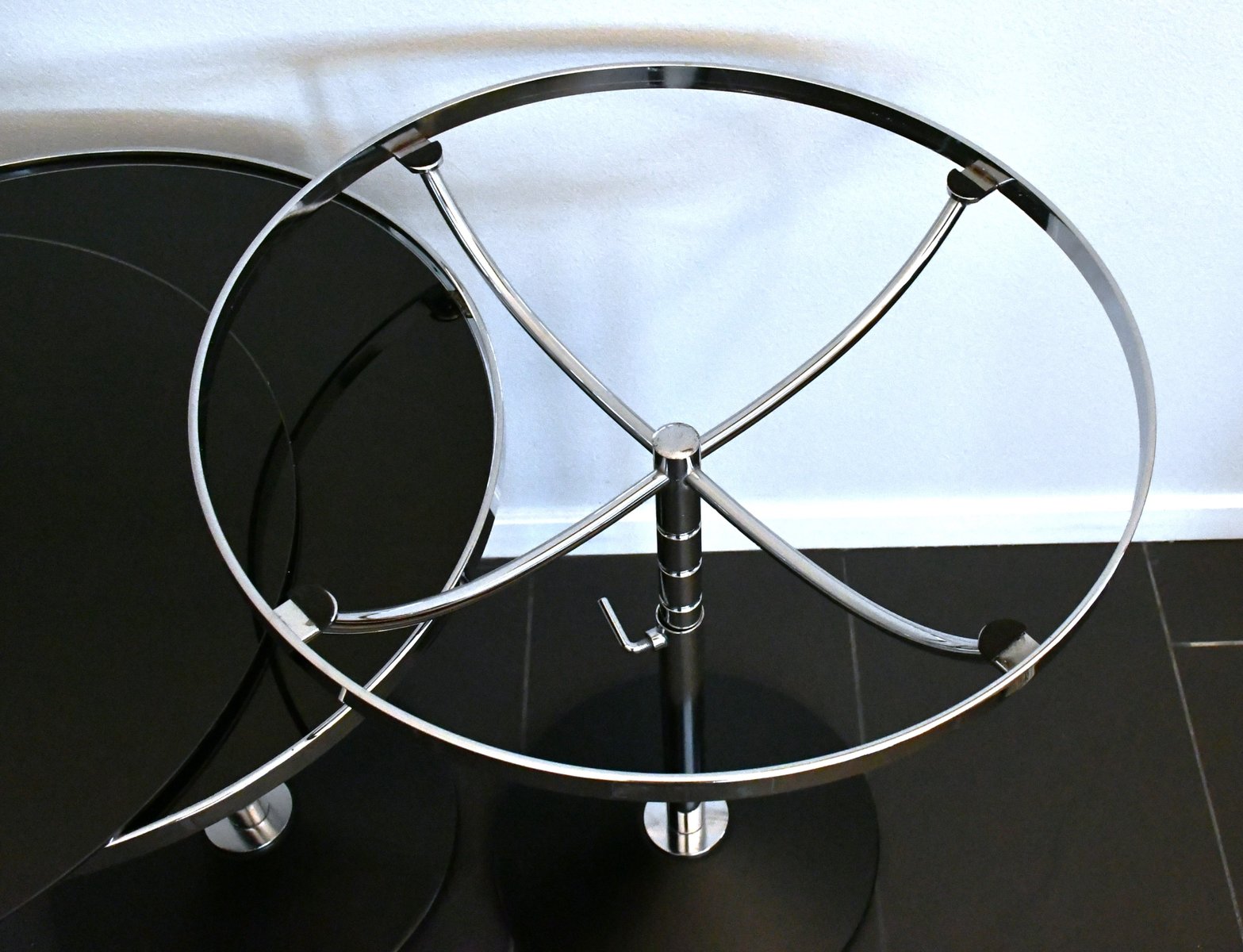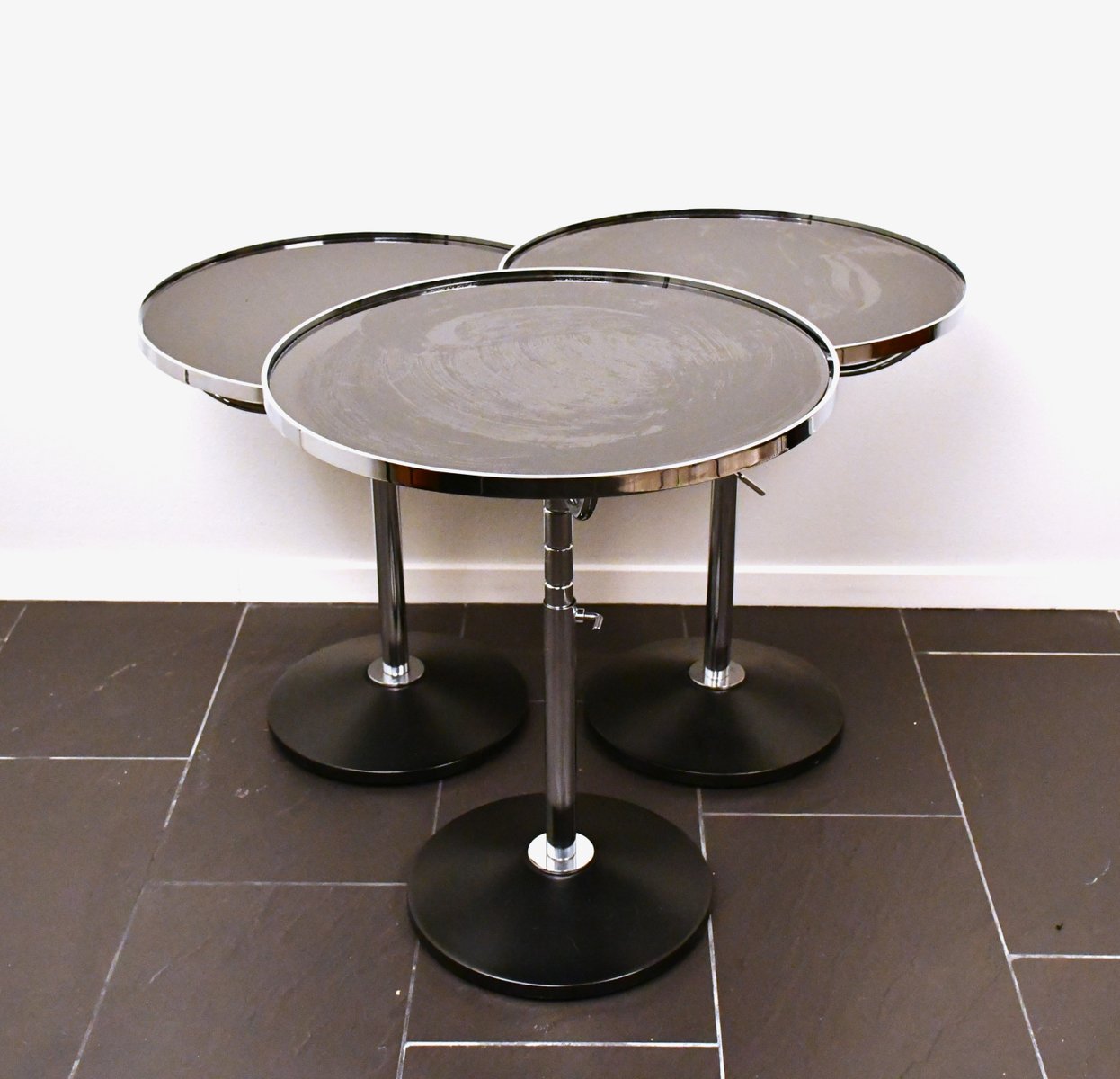 Swedish Adjustable Glass and Chrome Steel Side Table Model Pronto from Dux, 1990s, Set of 3
