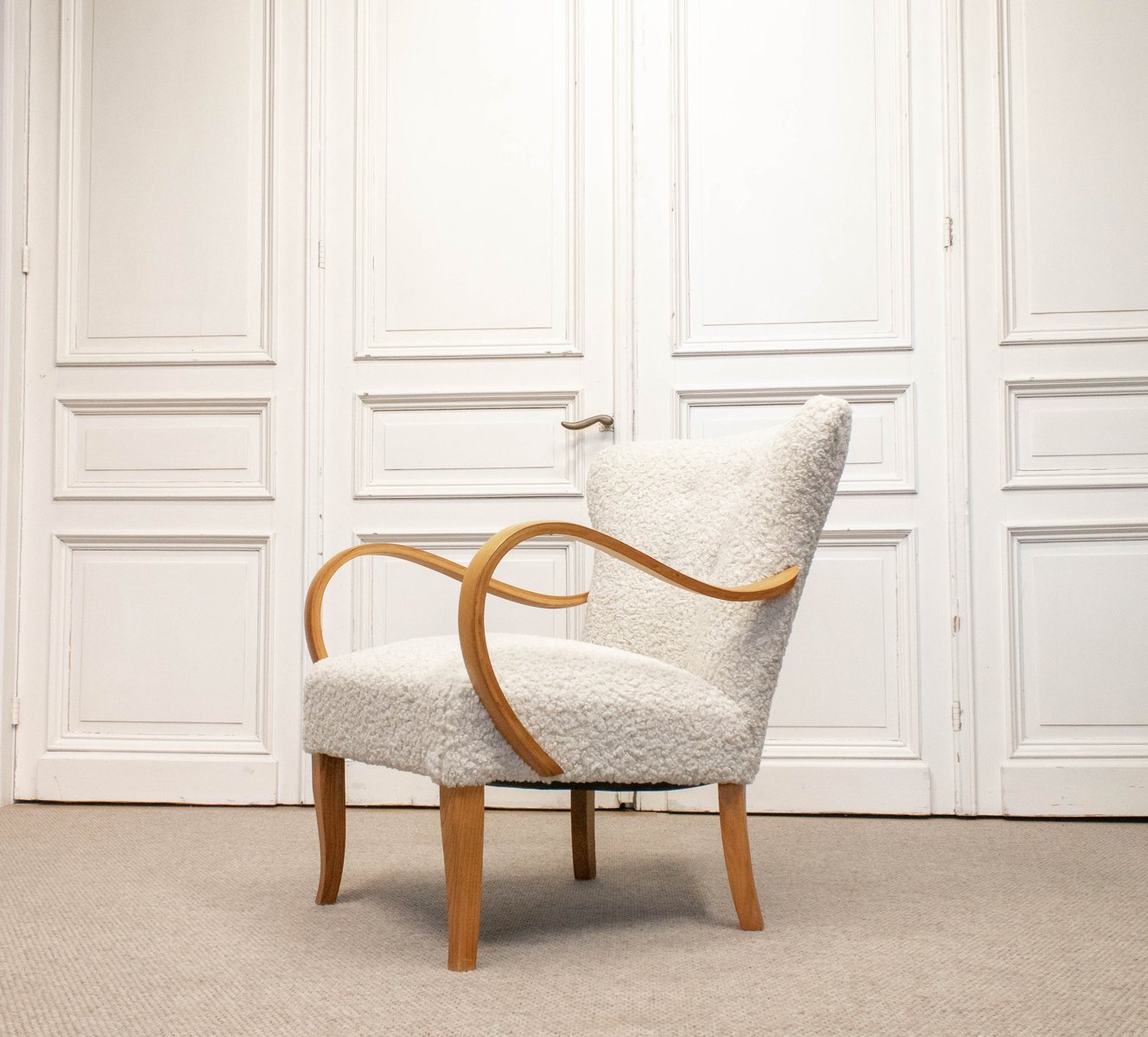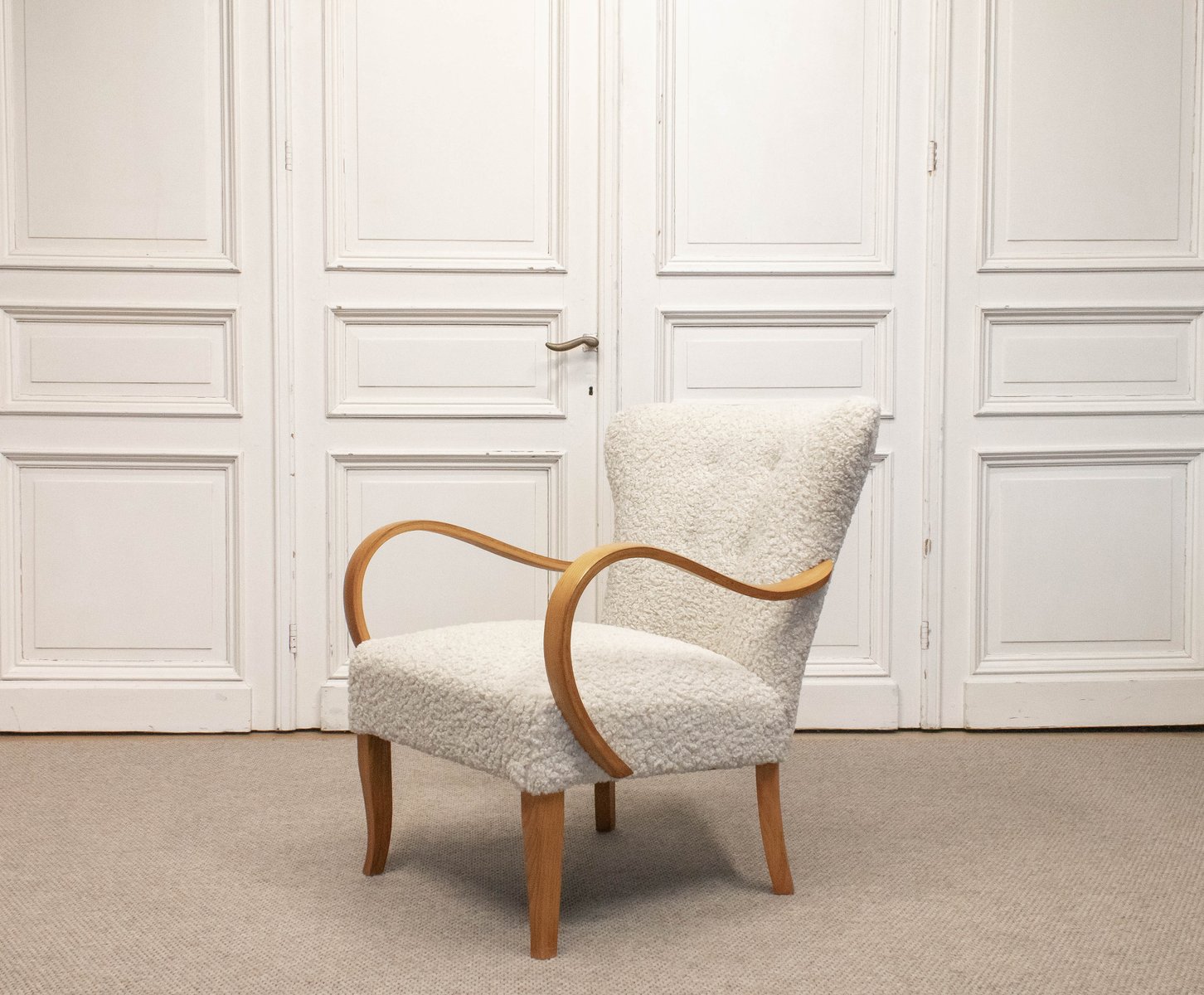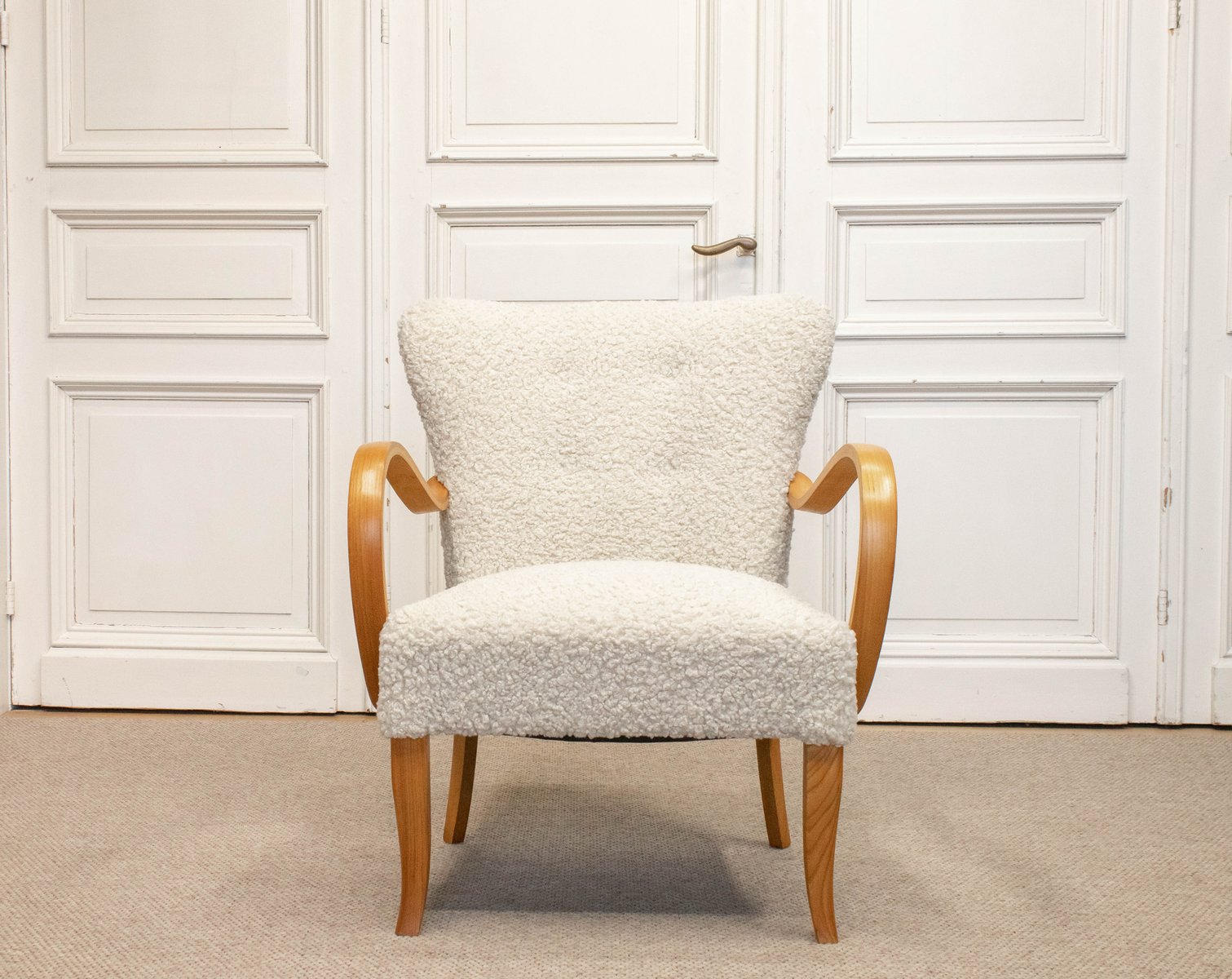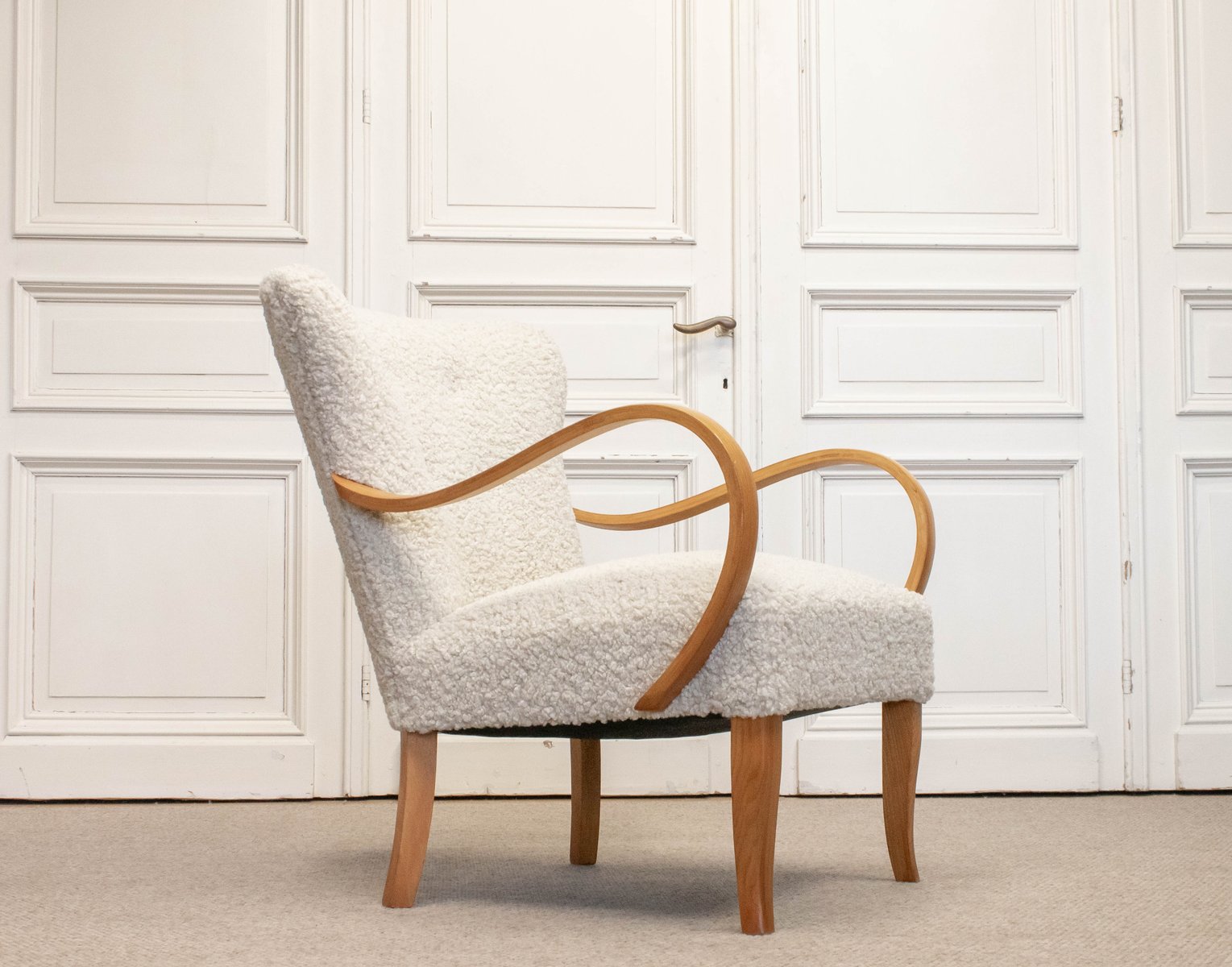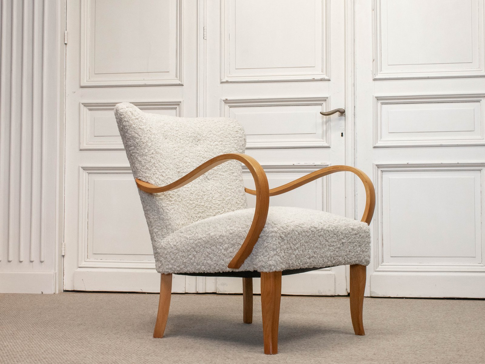 Swedish Lounge Chair in Elm Wood with Teddy Fur Upholstery, 1950s