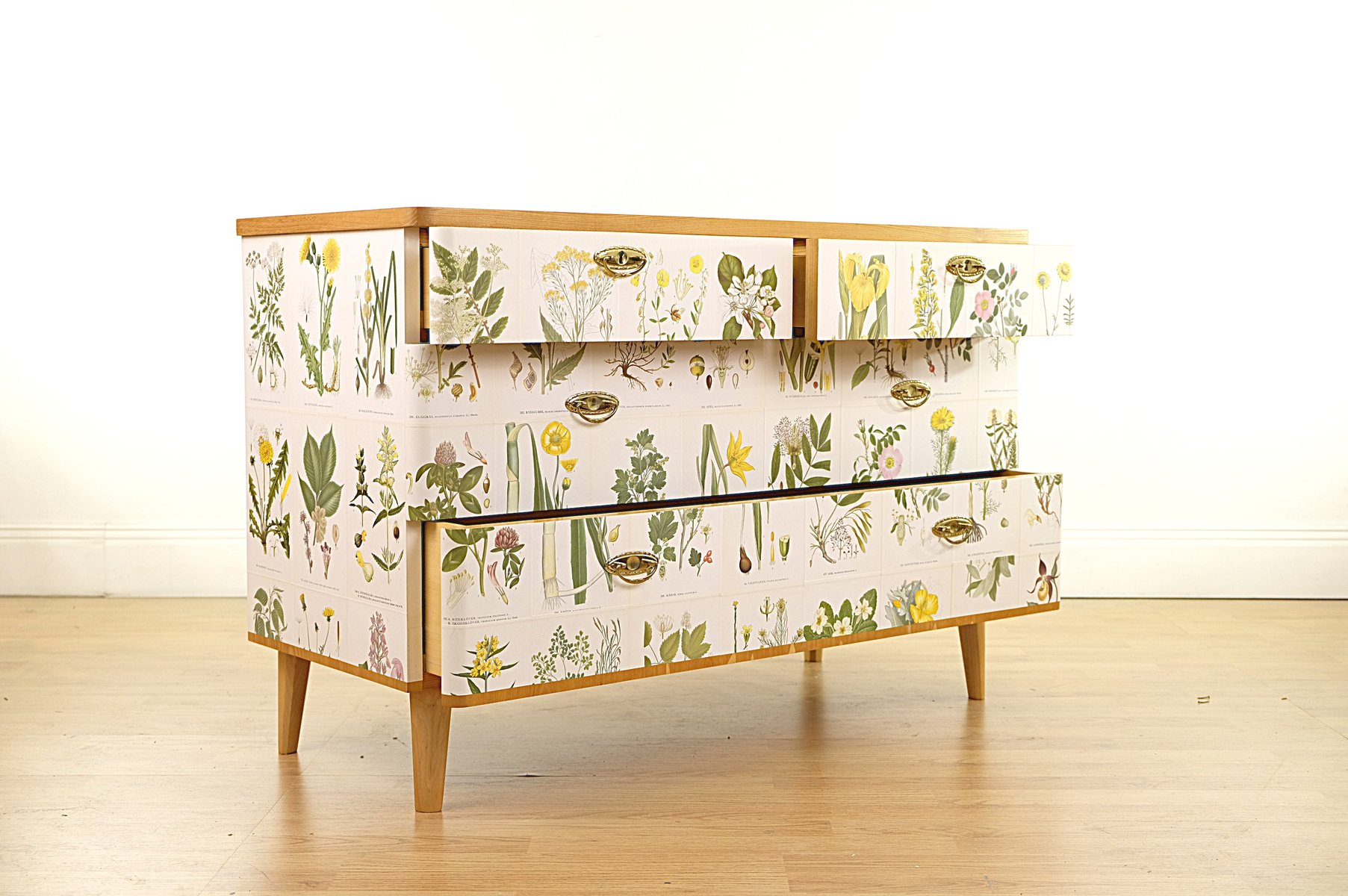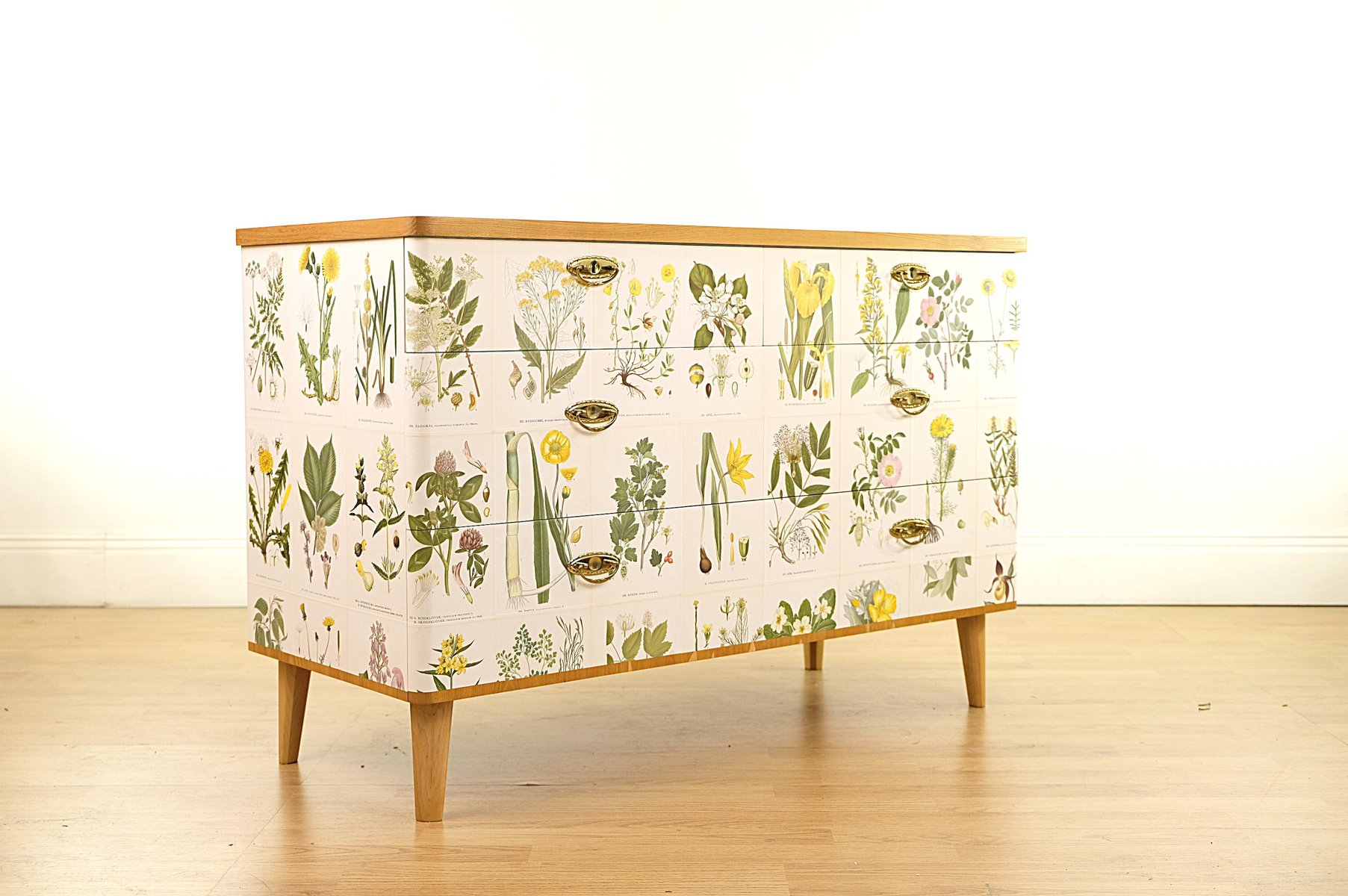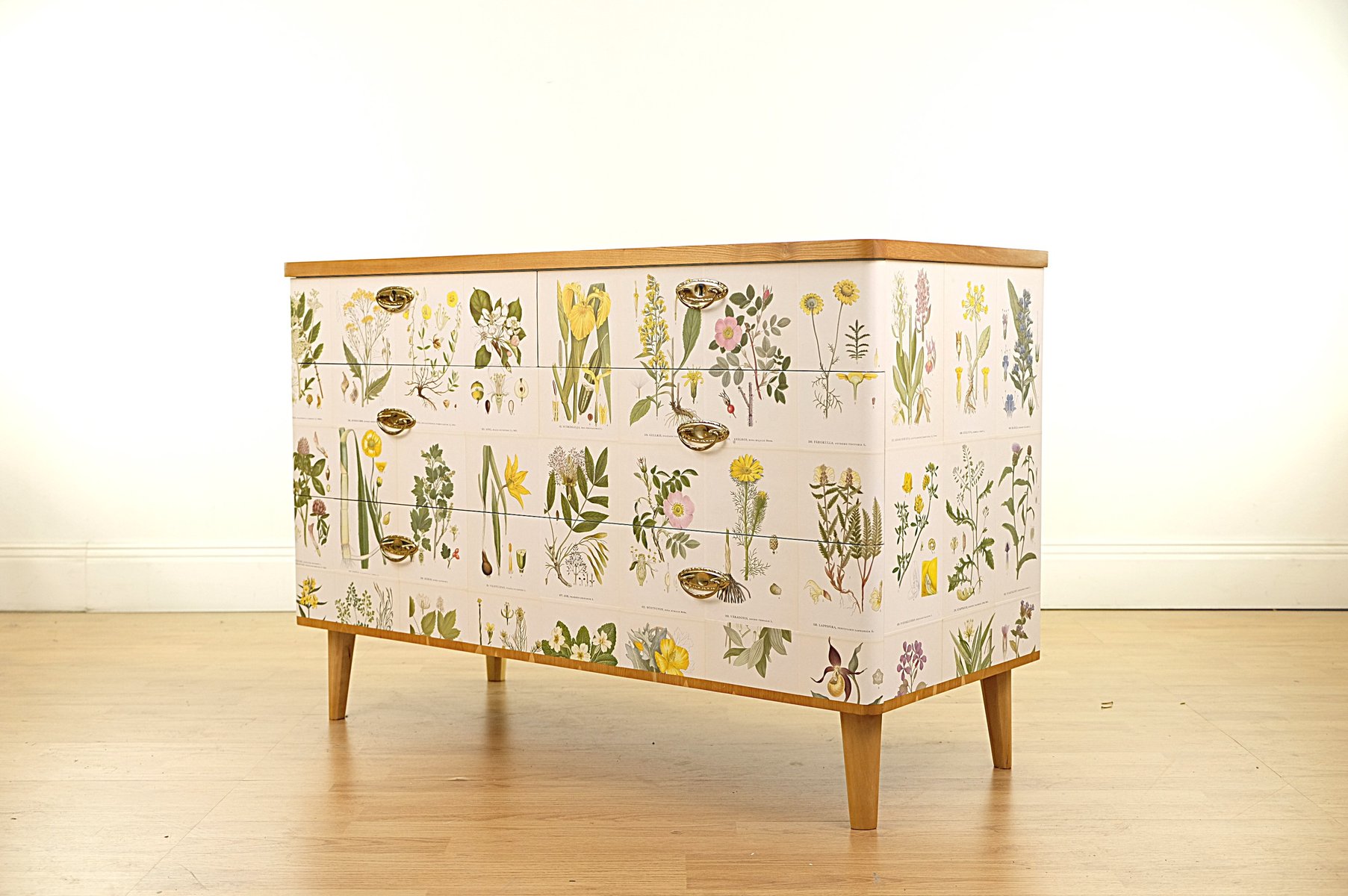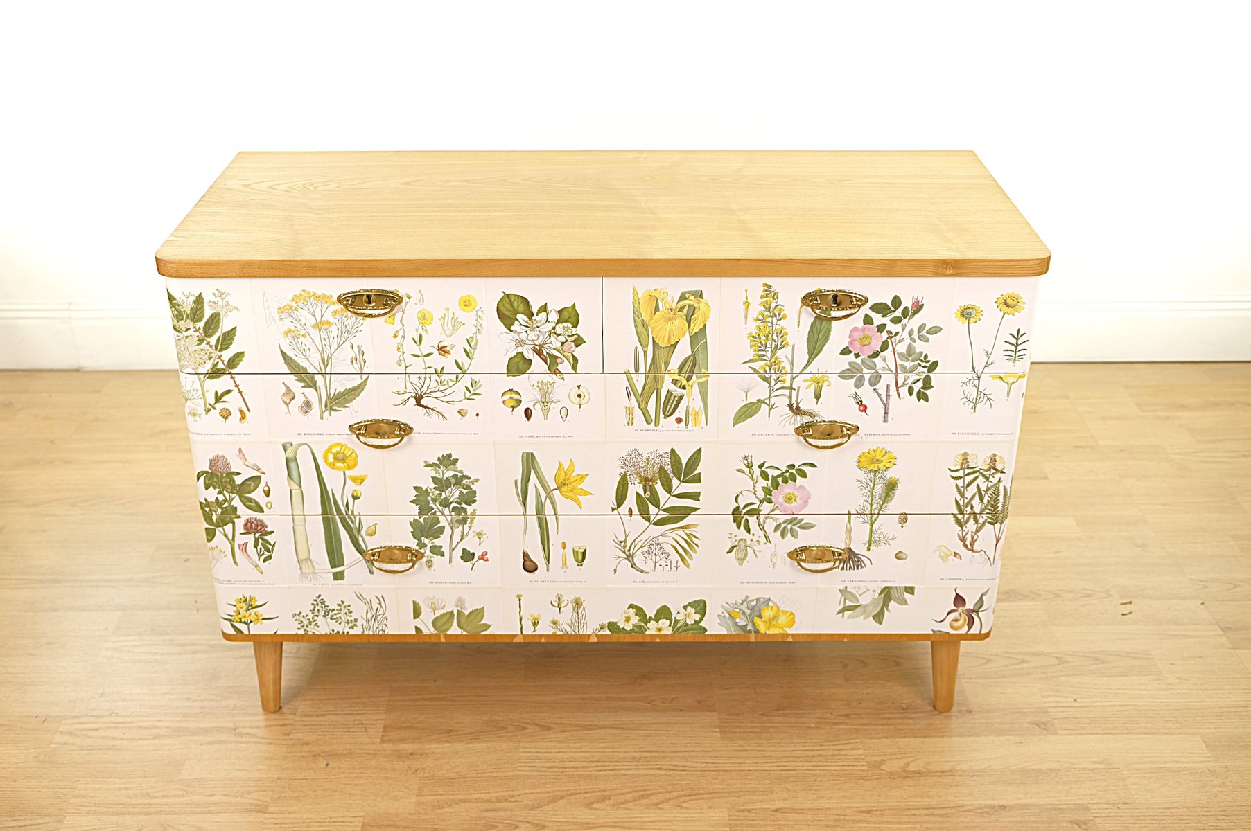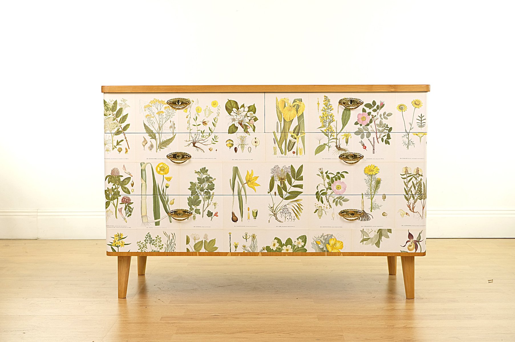 Swedish Modern Dresser with Norden's Flora Illustrations by C.A.M. Lindman, 1930s
