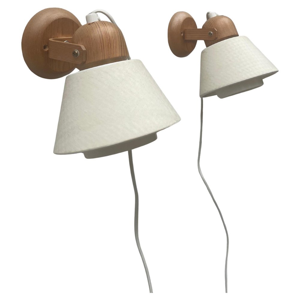 Swedish Pine Wall Lamps by Solbacken Svarveri, 1970s, Set of 2