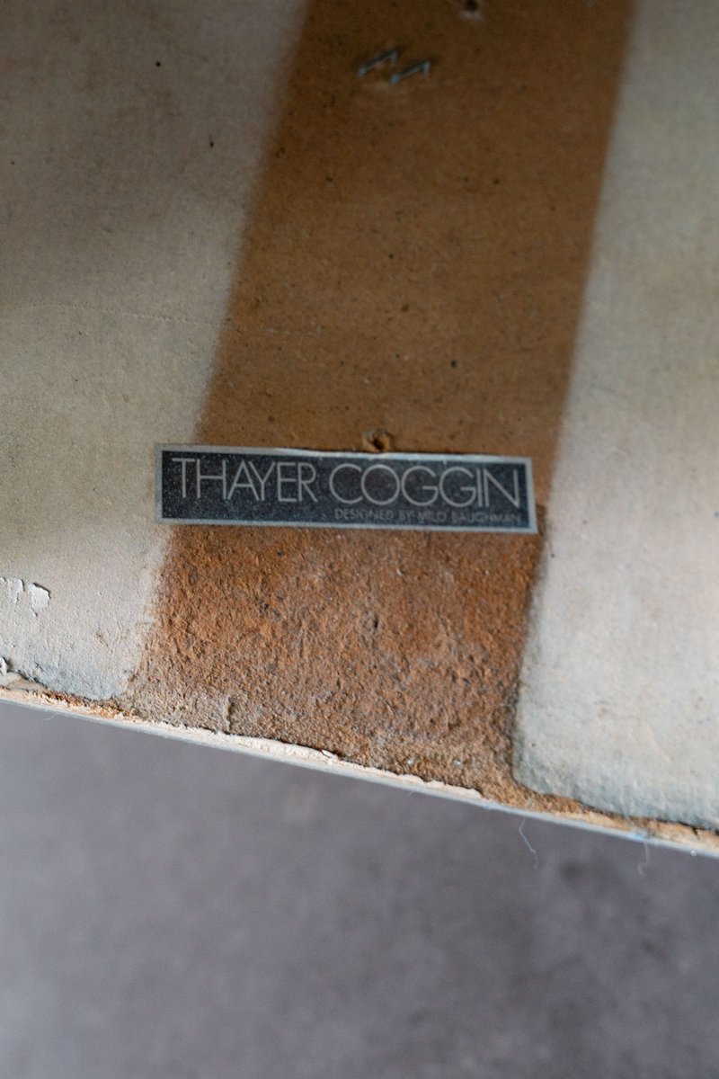 In the early 1950s, Baughman traveled to the East Coast, where he designed collections for companies like Macy’s, Drexel, Winchendon Furniture. In 1951, his work received rave reviews in The New York Times. Around 1953, he went to High Point, North Carolina—a major center for US furniture manufacturing at the time—looking for partners. Although most companies thought his designs were too modern, Thayer Coggin Inc. recognized his potential right away. A handshake deal between Baughman and Mr. Coggin solidified a collaboration that would last fifty years. From 1953 until 2003, the pair collaborated on numerous midcentury modern furniture collections that were characterized by bold yet controlled proportions and fine materials in sophisticated finishes. Baughman was particularly fond of using sleek chrome bases, varnished burled wood, and tufted upholstery. Iconic designs from the collaboration include the 820-400 Chaise (1954), 955-304 Sofa (1954), 951-103 Milo Lounge Chair (1962), T-Back 989-103 Lounge Chair (1963), Viceroy Recliner (1965), the Wave Chaise (1960s), and 1224 Circle Sectional (1970s).