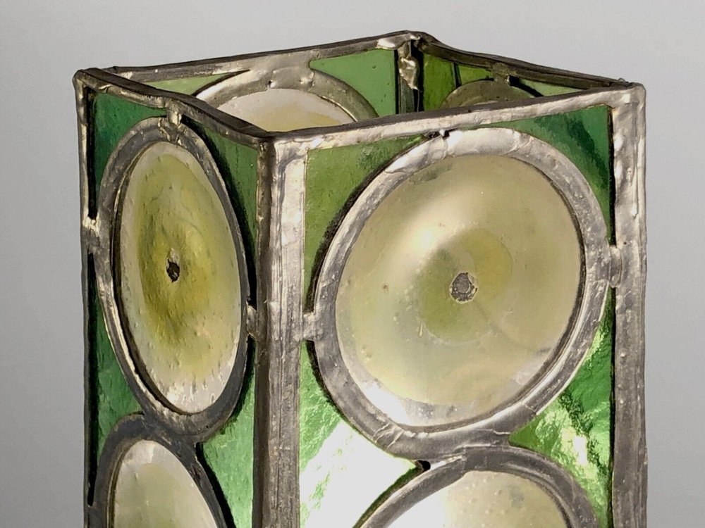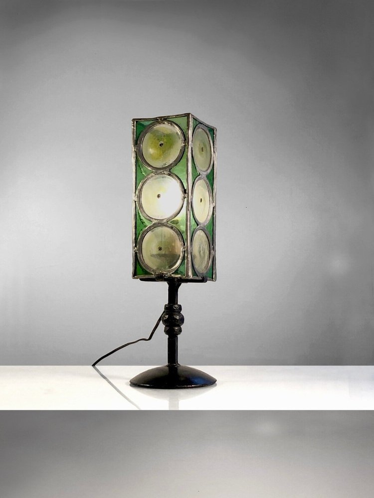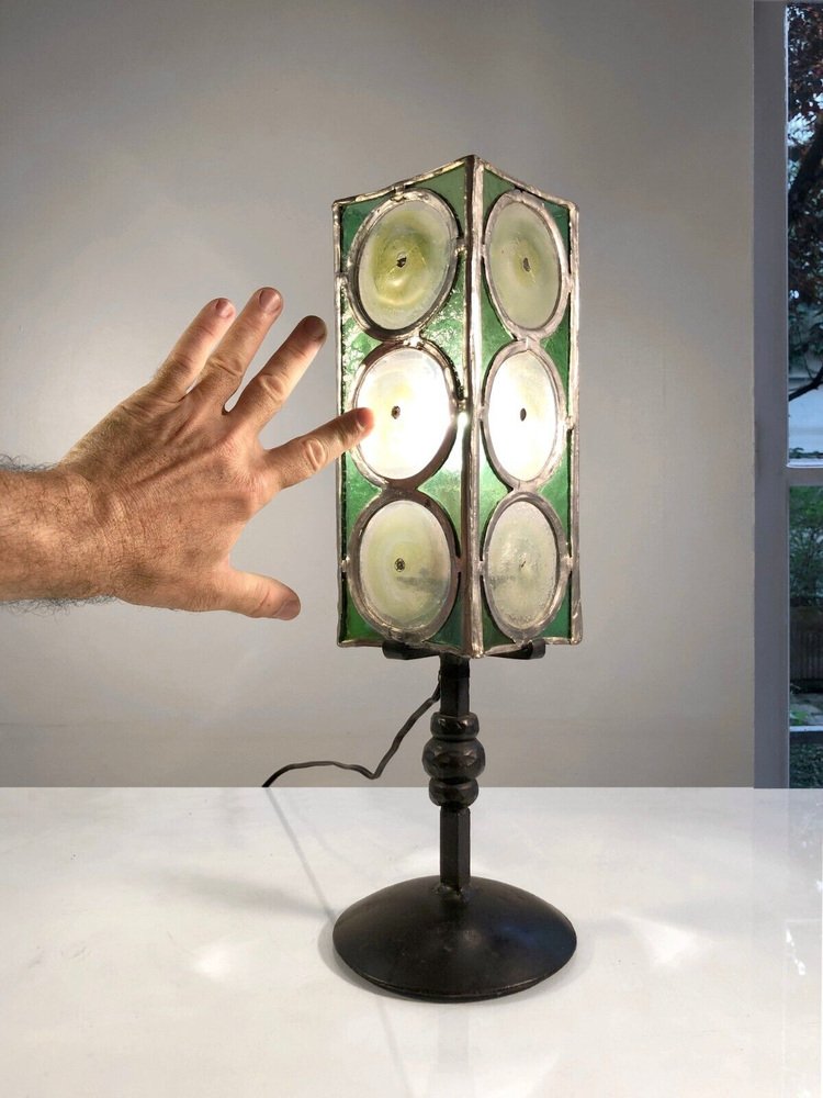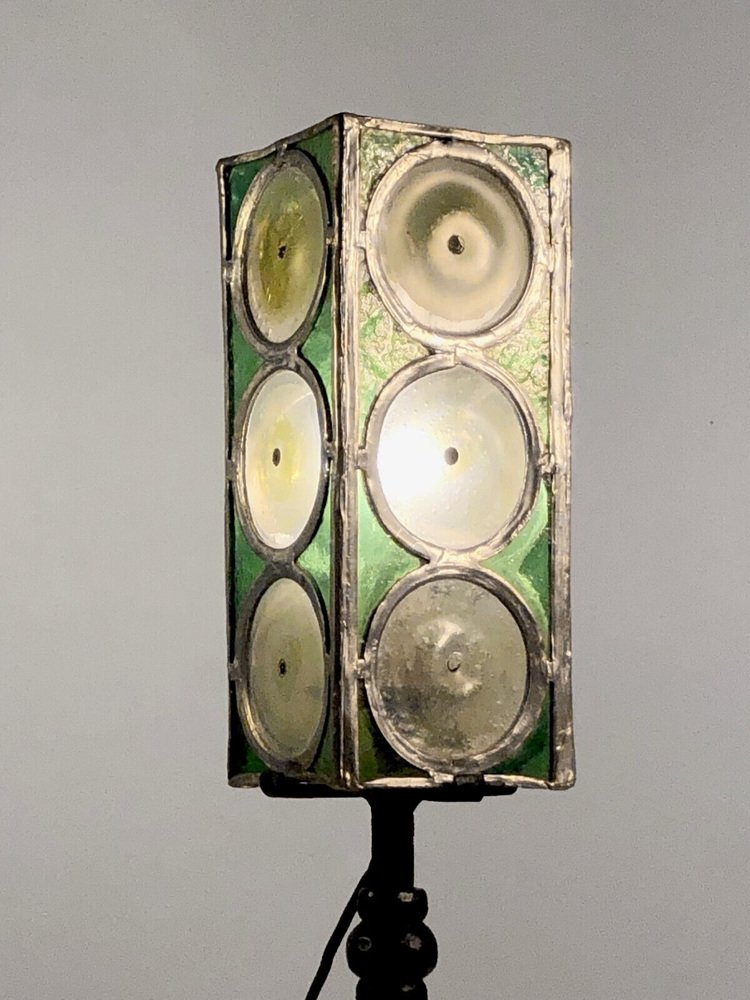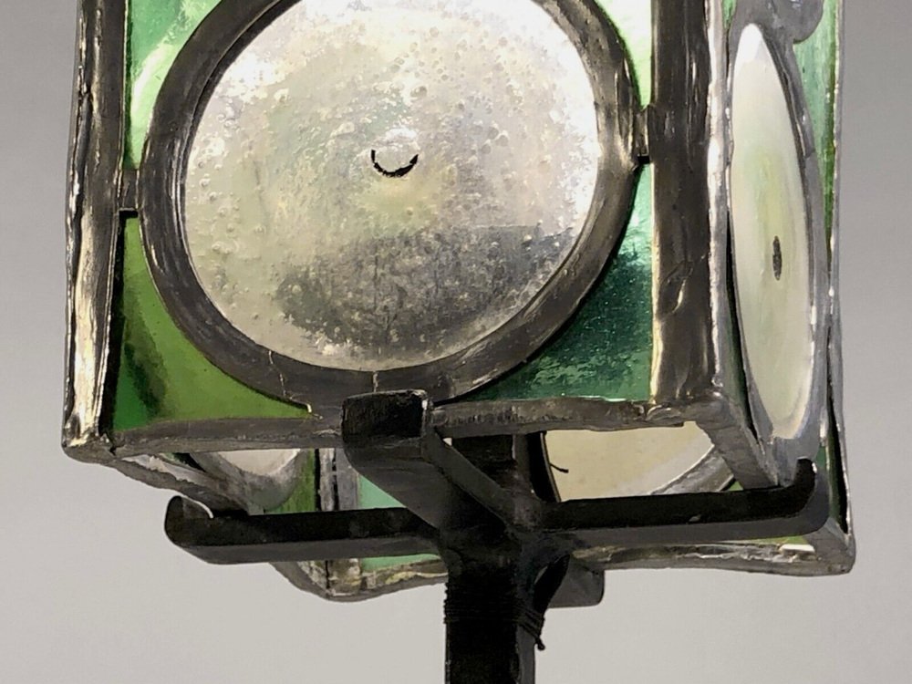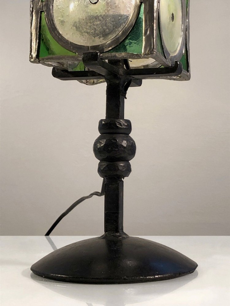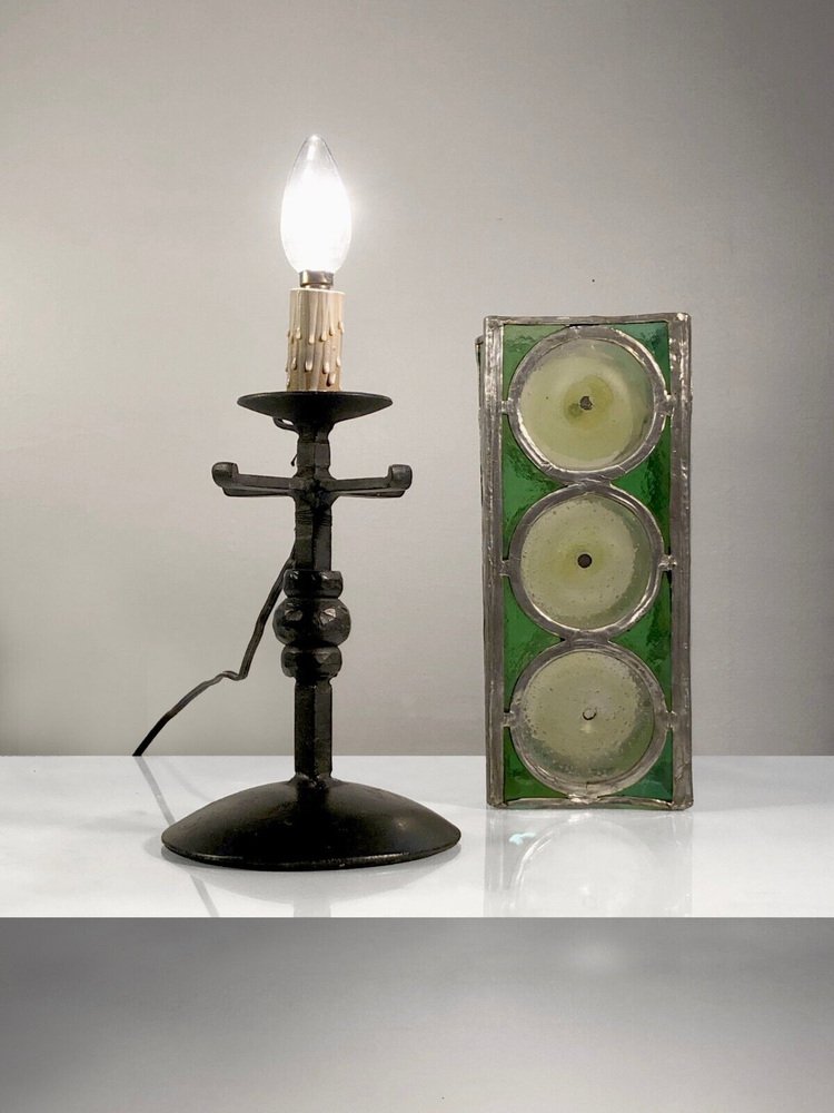 Table Lamp in Wrought Iron and Stained Glass from Loir Et Cher, France, 1960s