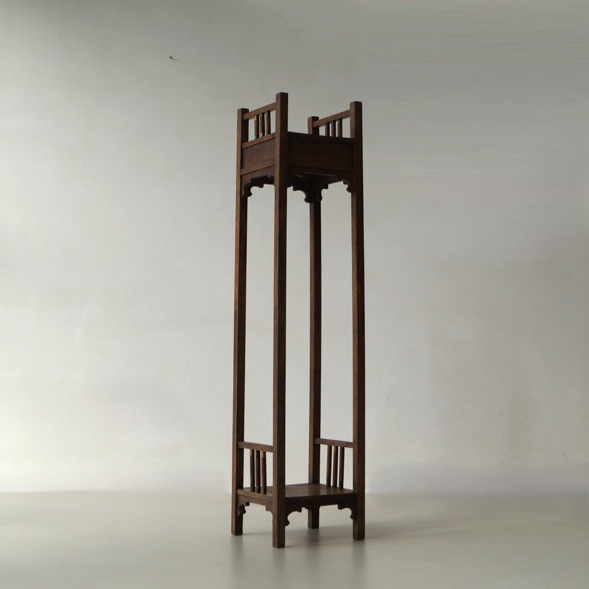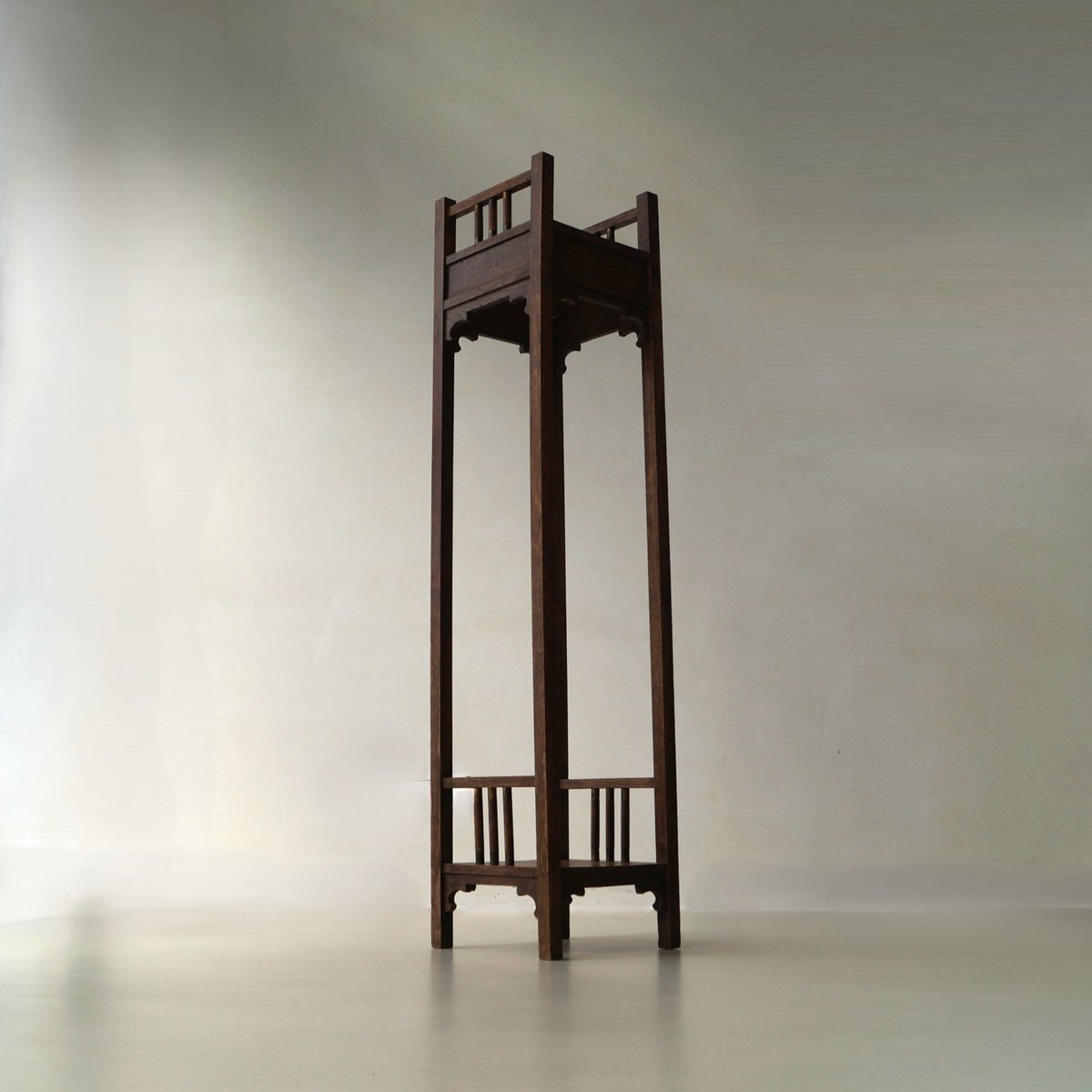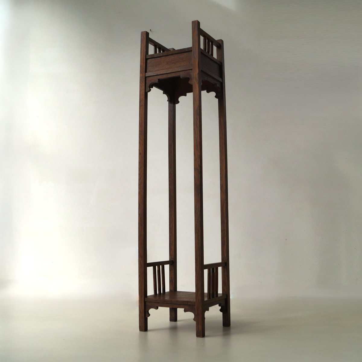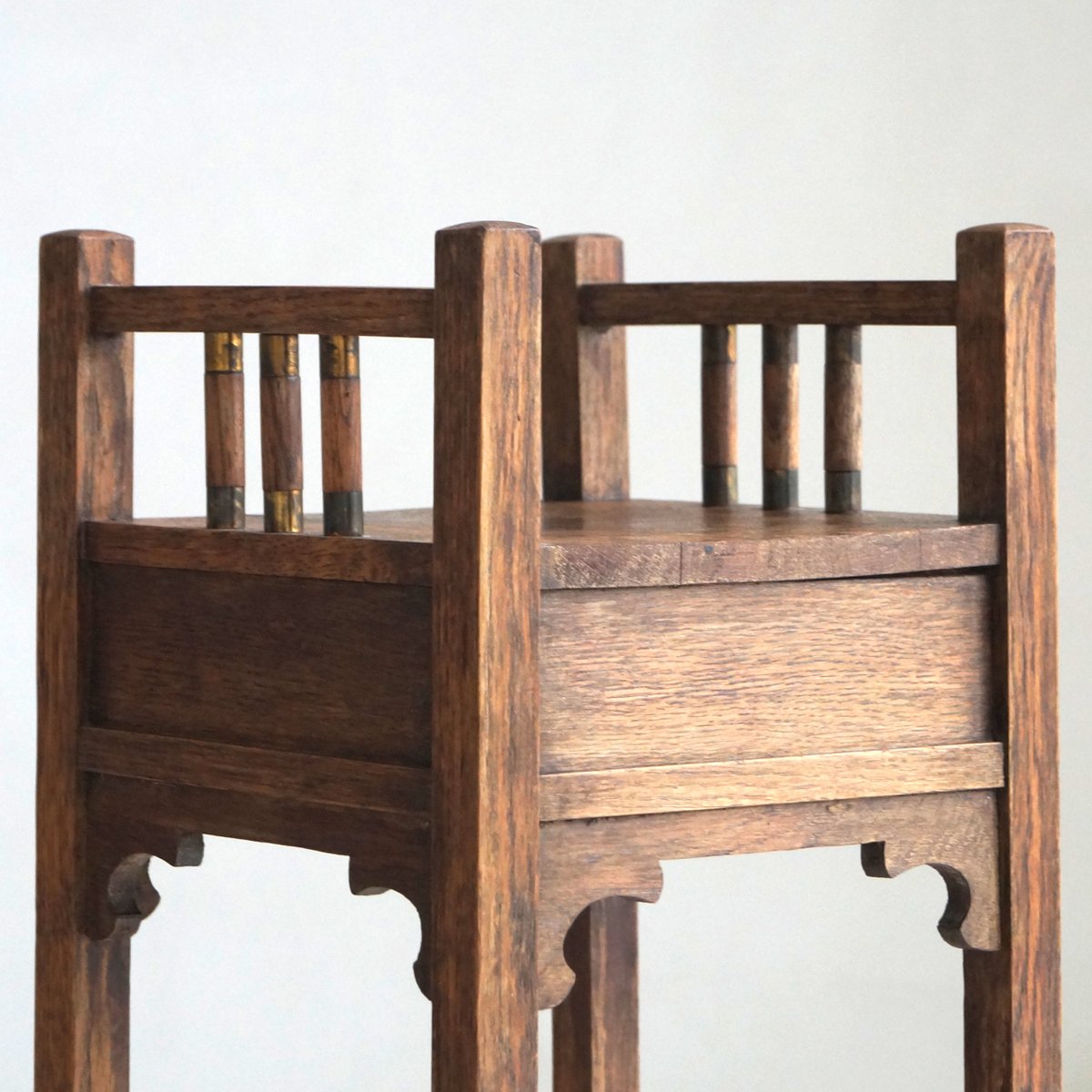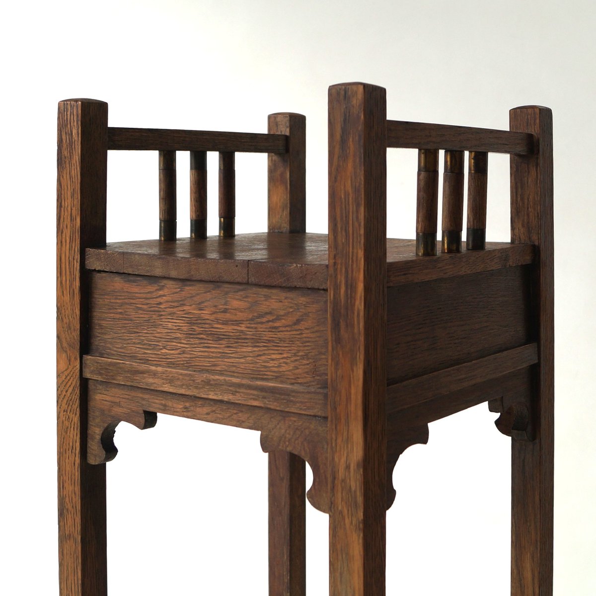 Tall Dutch Art Nouveau Pedestal with Copper Details, 1910s