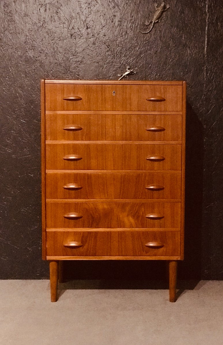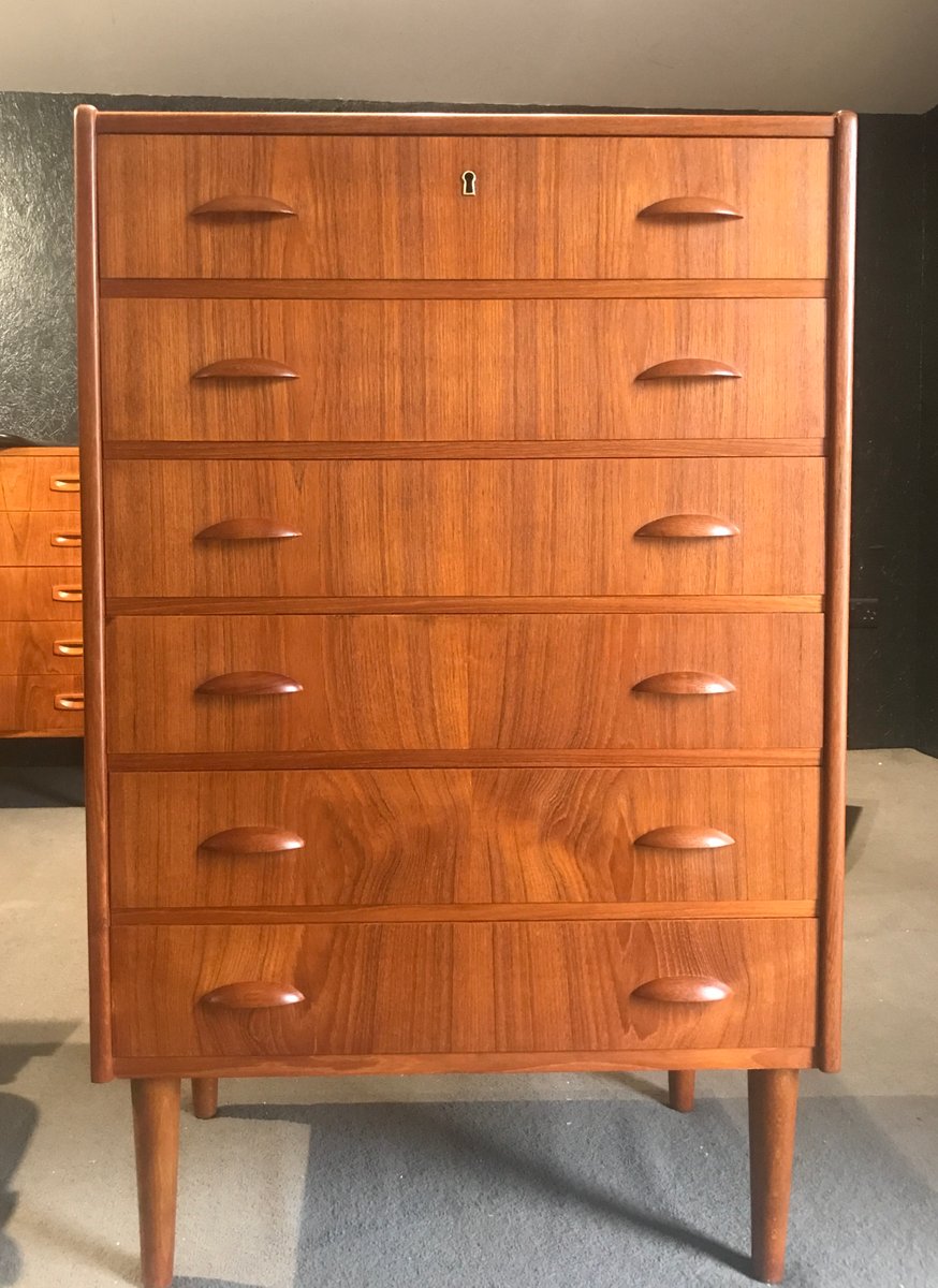 Tall Mid-Century Danish Teak Chest of Drawers with 6 Drawers