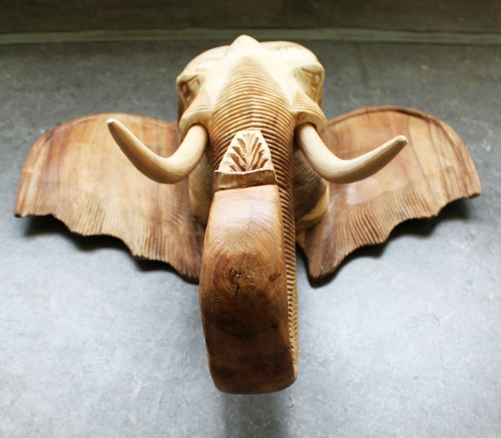 Teak Elephant Head, Thailand. , 1990s, Wood